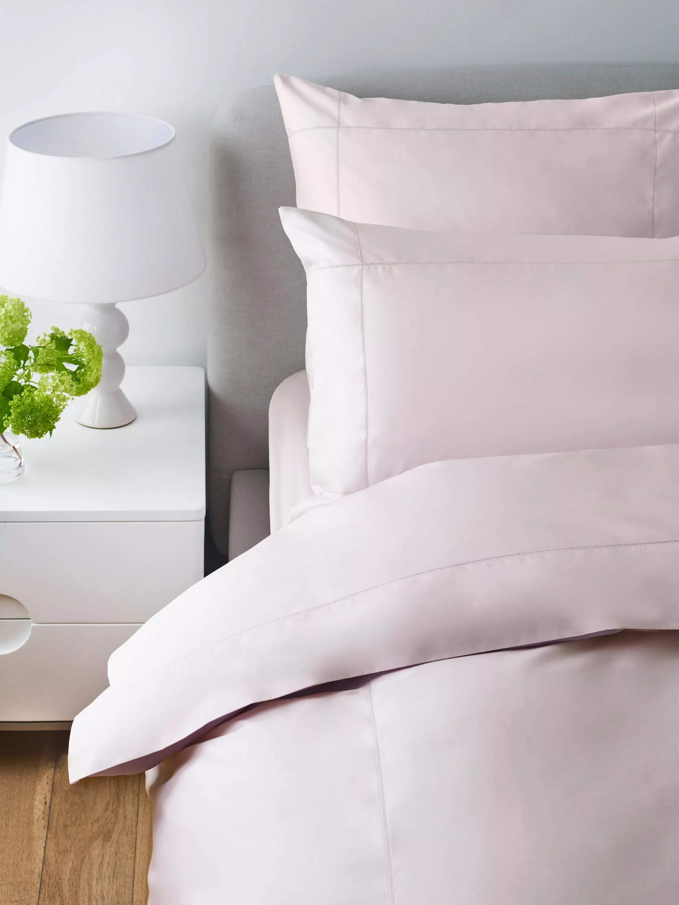 This unique 500 thread count satin weave uses a process of four over, one under to maximise the number of threads visible on the upper side of the fabric. The result is a medium-weight fabric with rich satin softness.