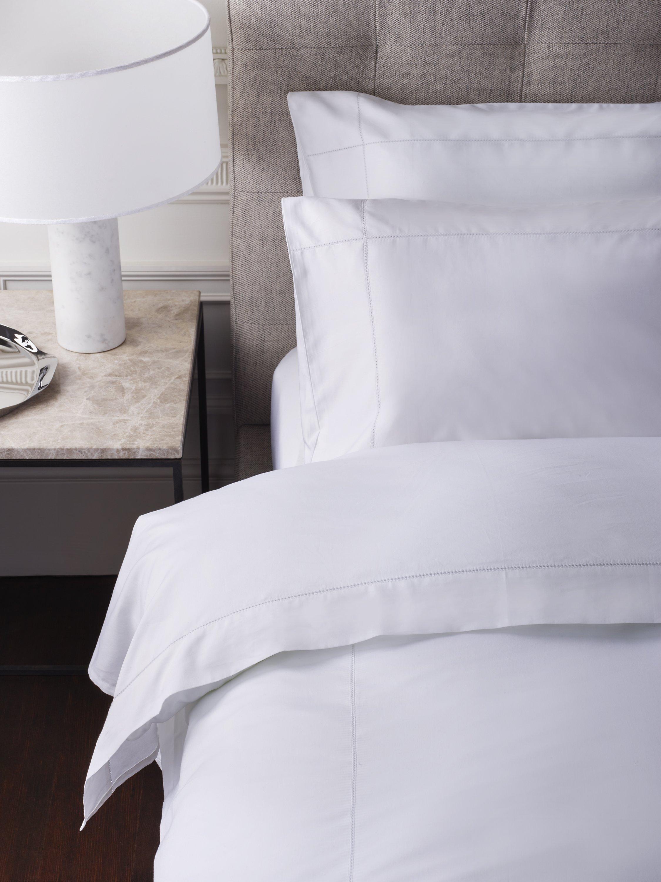 This unique 500 Thread Count satin weave uses a process of four over, one under to maximise the number of threads visible on the upper side of the fabric. The result is a medium-weight fabric with rich satin softness.