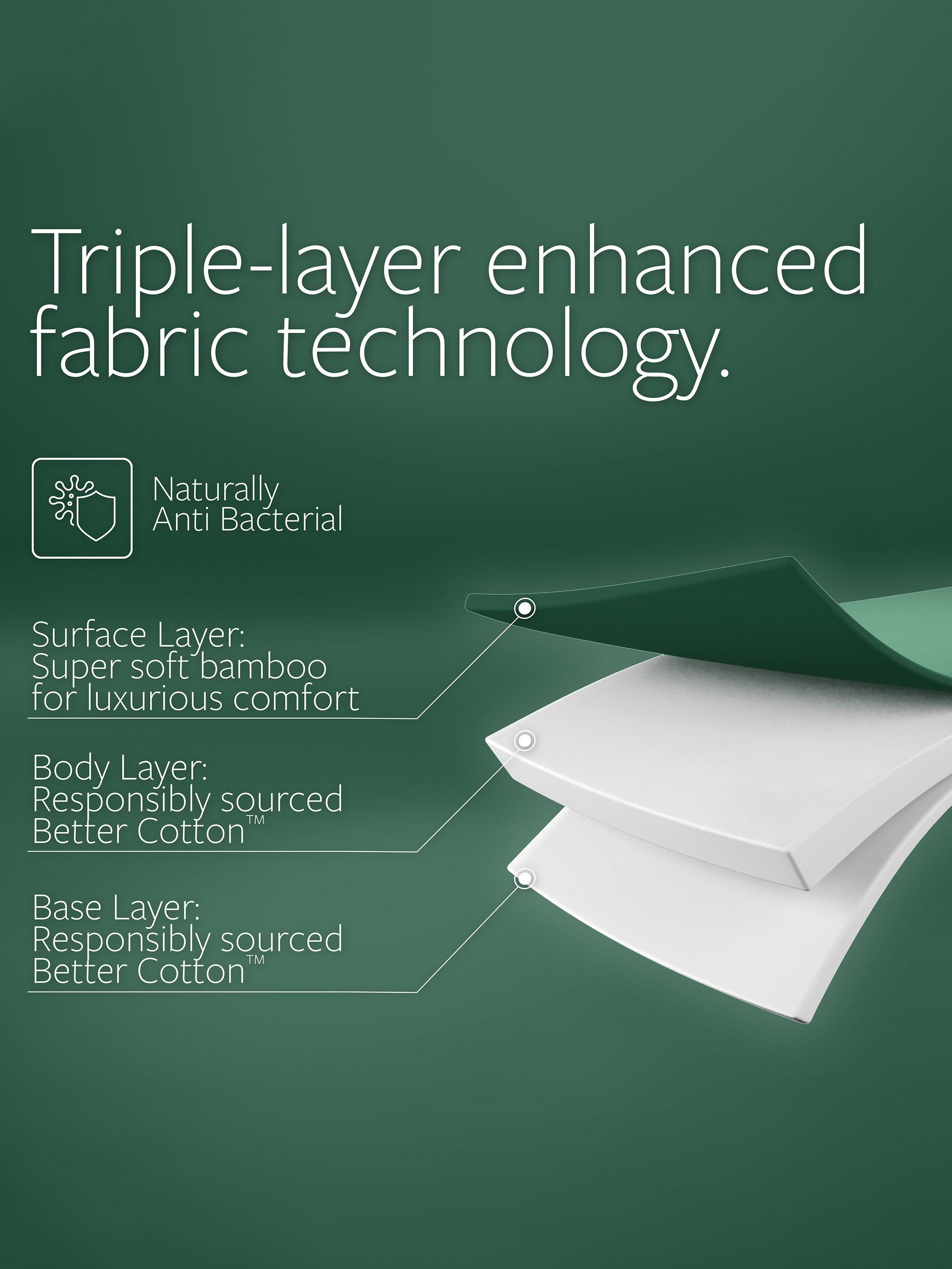 Beneath its ultra-soft 100% natural Bamboo - enhanced with cotton - surface lies a hidden blend of Bamboo and other amazing plant-based fibres. Each fibre possesses unique qualities, and together they naturally combat odours, wick away moisture, and ensure breathability, keeping kids fresh and comfortable all night.