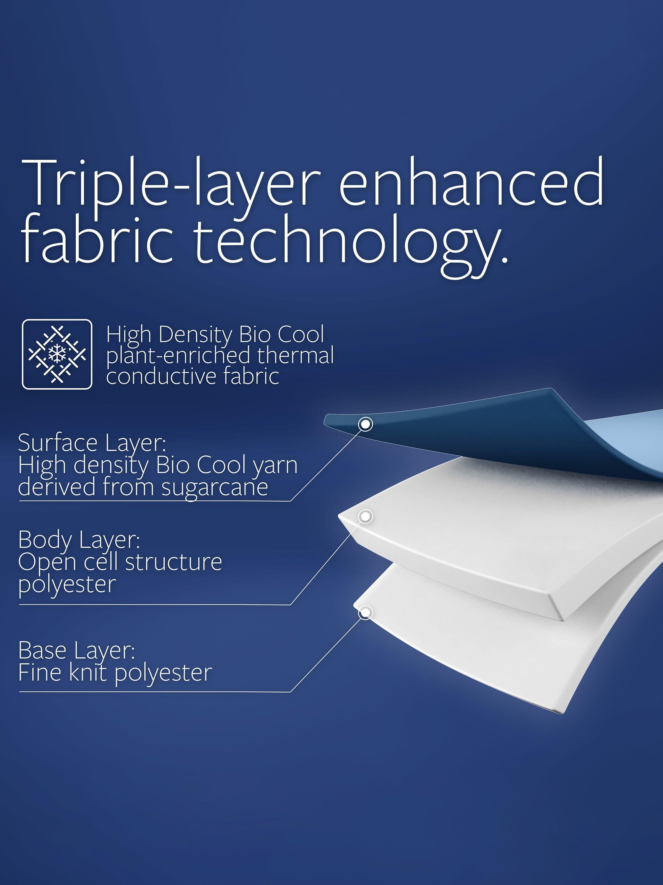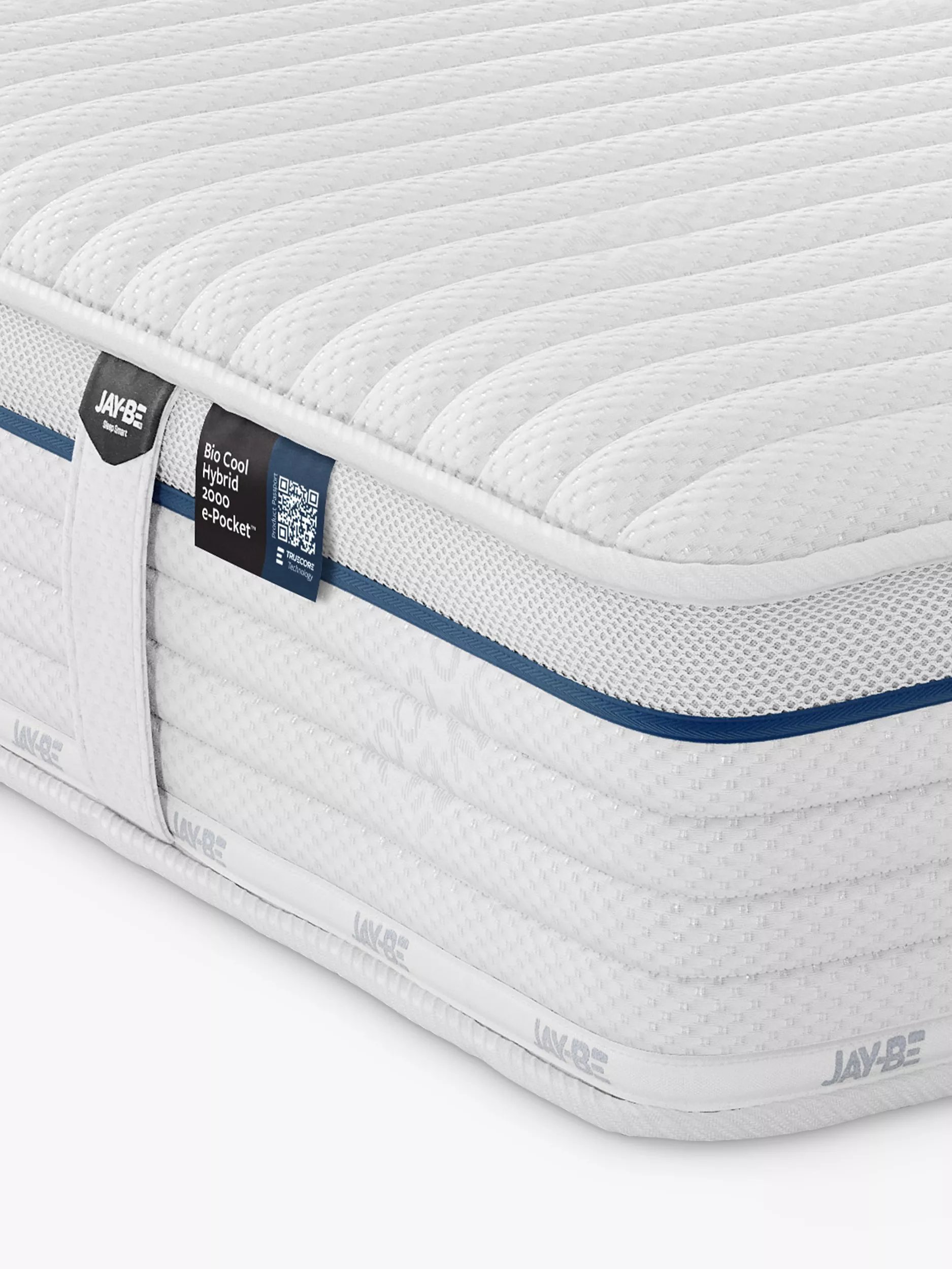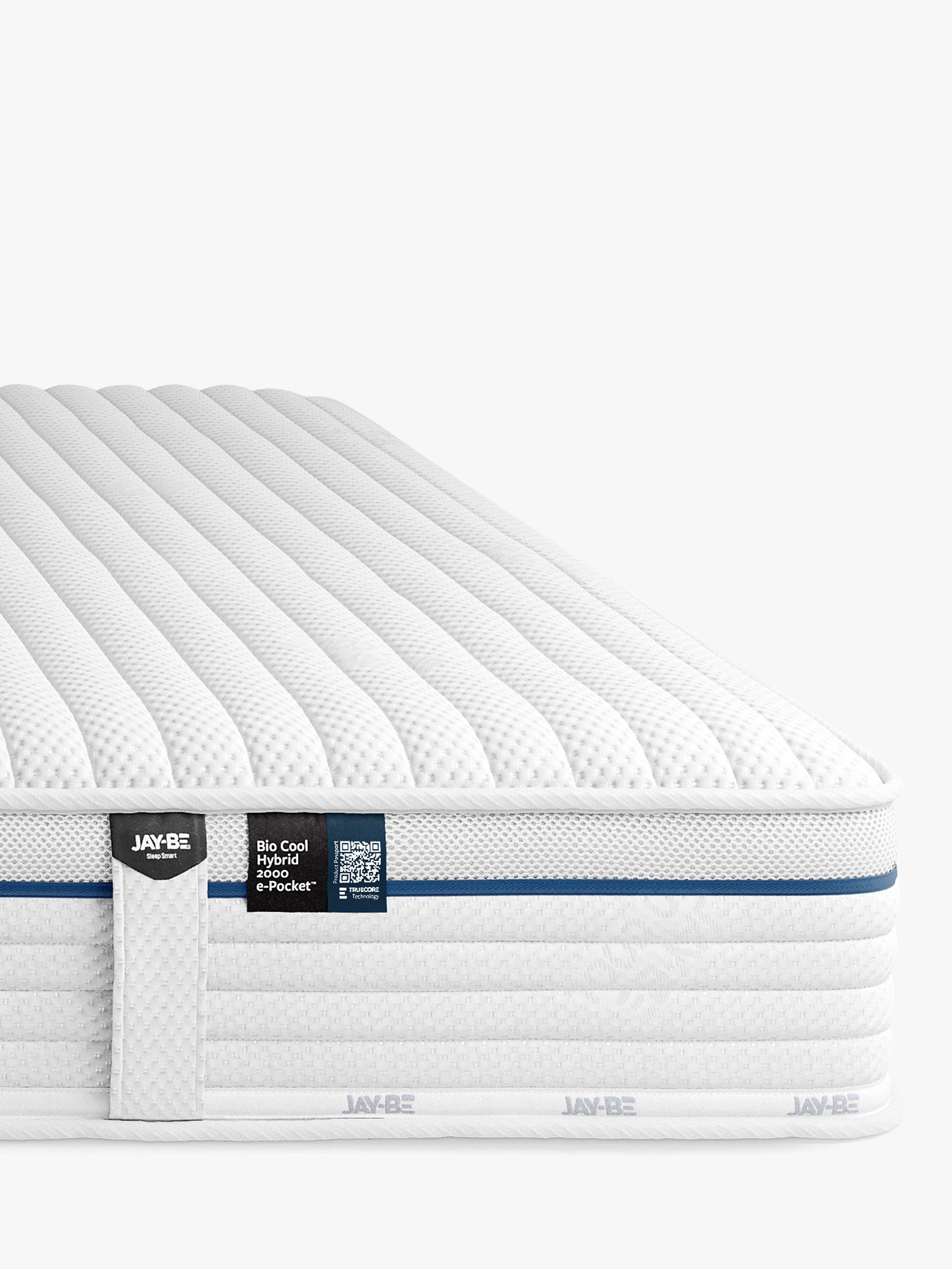 Stay cool, even when you sleep. Made in the UK, the Jay-Be® Bio Cool 2000 Mattress represents a breakthrough in comfort and thermo-responsive technology. Showcasing plant-based fibres, the Bio Cool fabric surface is made from high-density sugarcane yarn, which efficiently conducts excess heat away from your body, ensuring comfort and an ambient night's sleep. Highly breathable fillings, combined with a mint-enriched premium comfort layer, provide easy air flow, efficient moisture-wicking and a natural cooling sensation.