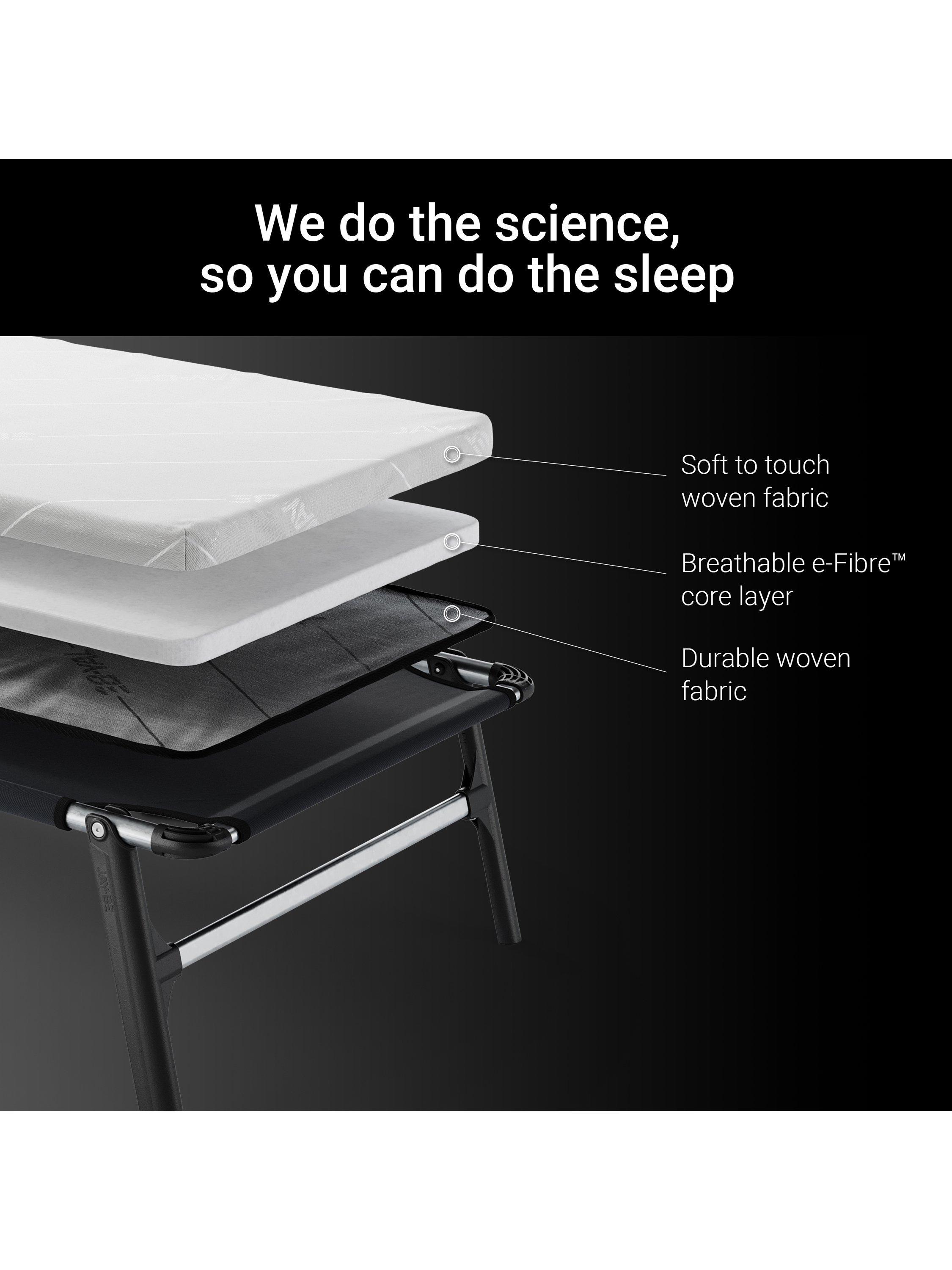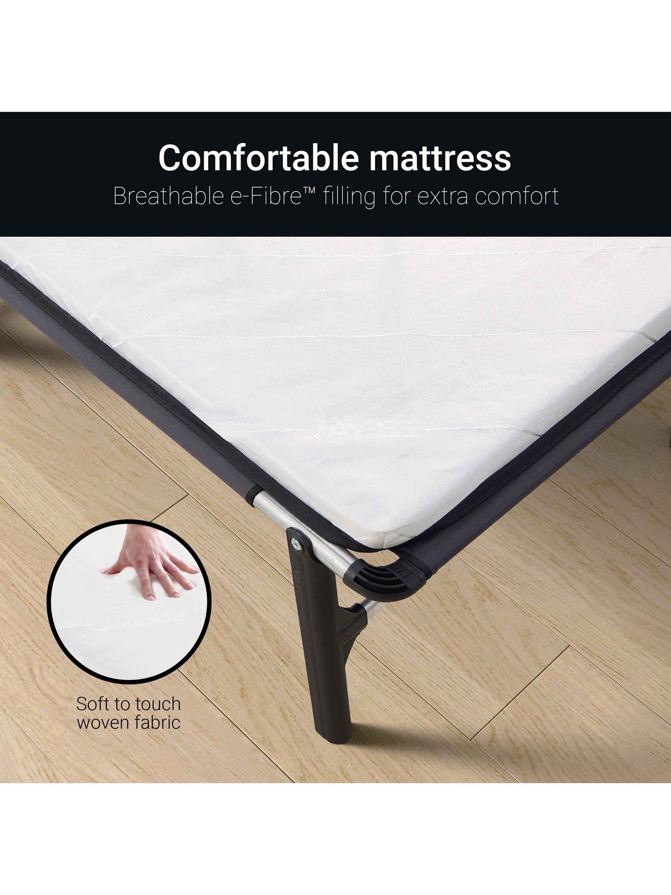 This CE70 folding bed features a foam free, dual density Smart Fibre mattress, which helps to manage a breathable temperature throughout the night and keep your sleeping environment drier and fresher for longer. Working in harmony with the J-Tex spring base system, experience full body support for a comfortable night's sleep. This base is stronger and more durable than a traditional slatted base and helps to make the bed even lighter and more compact when folded.