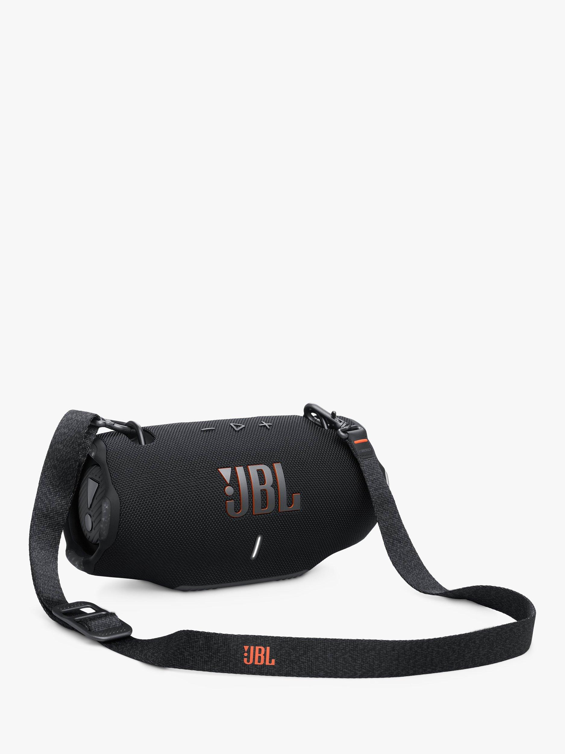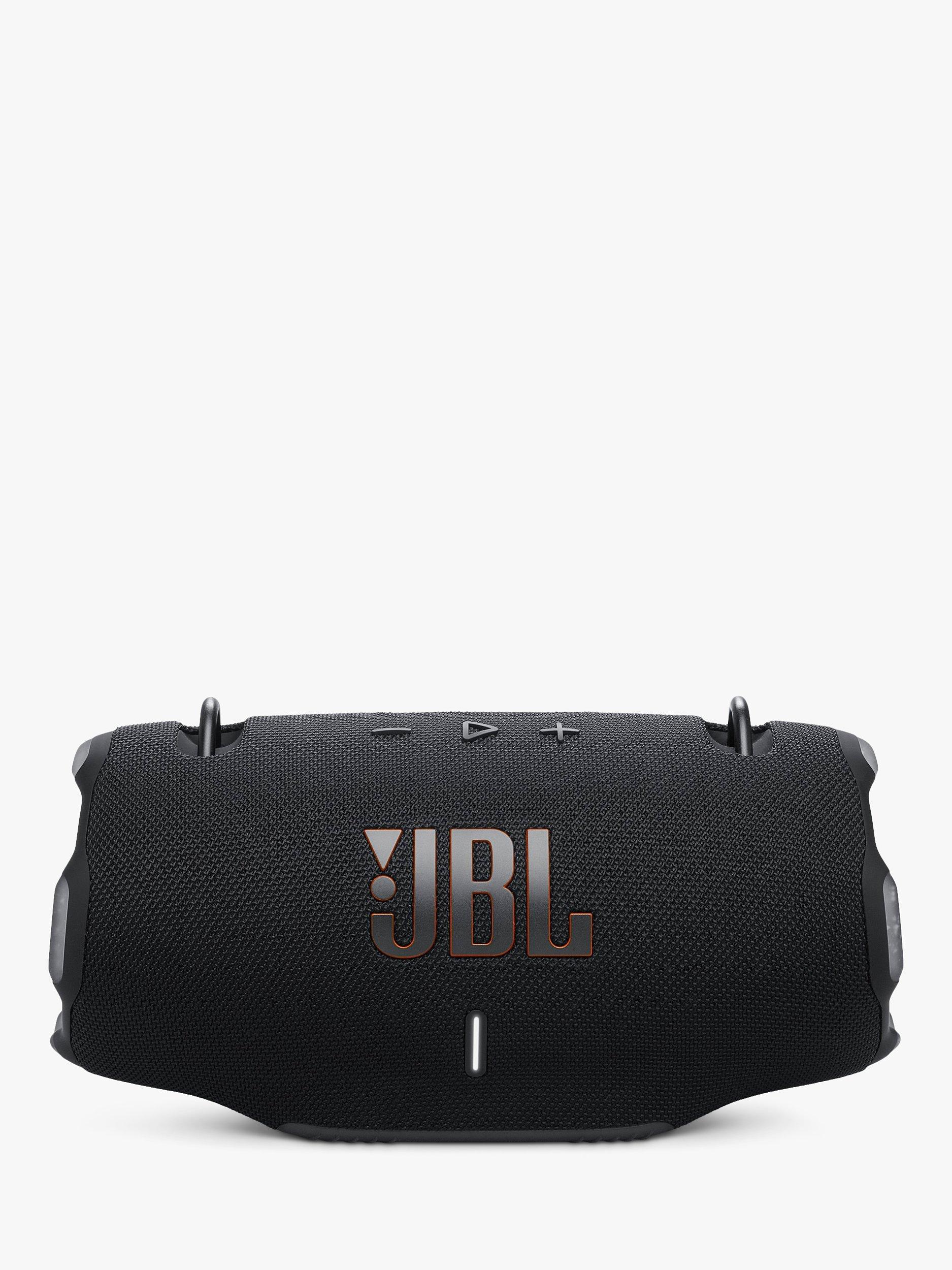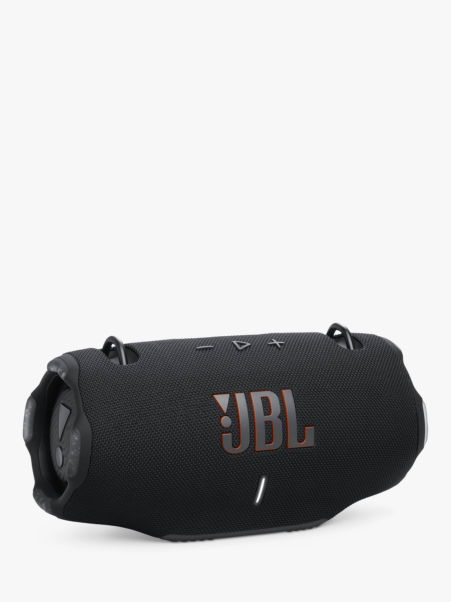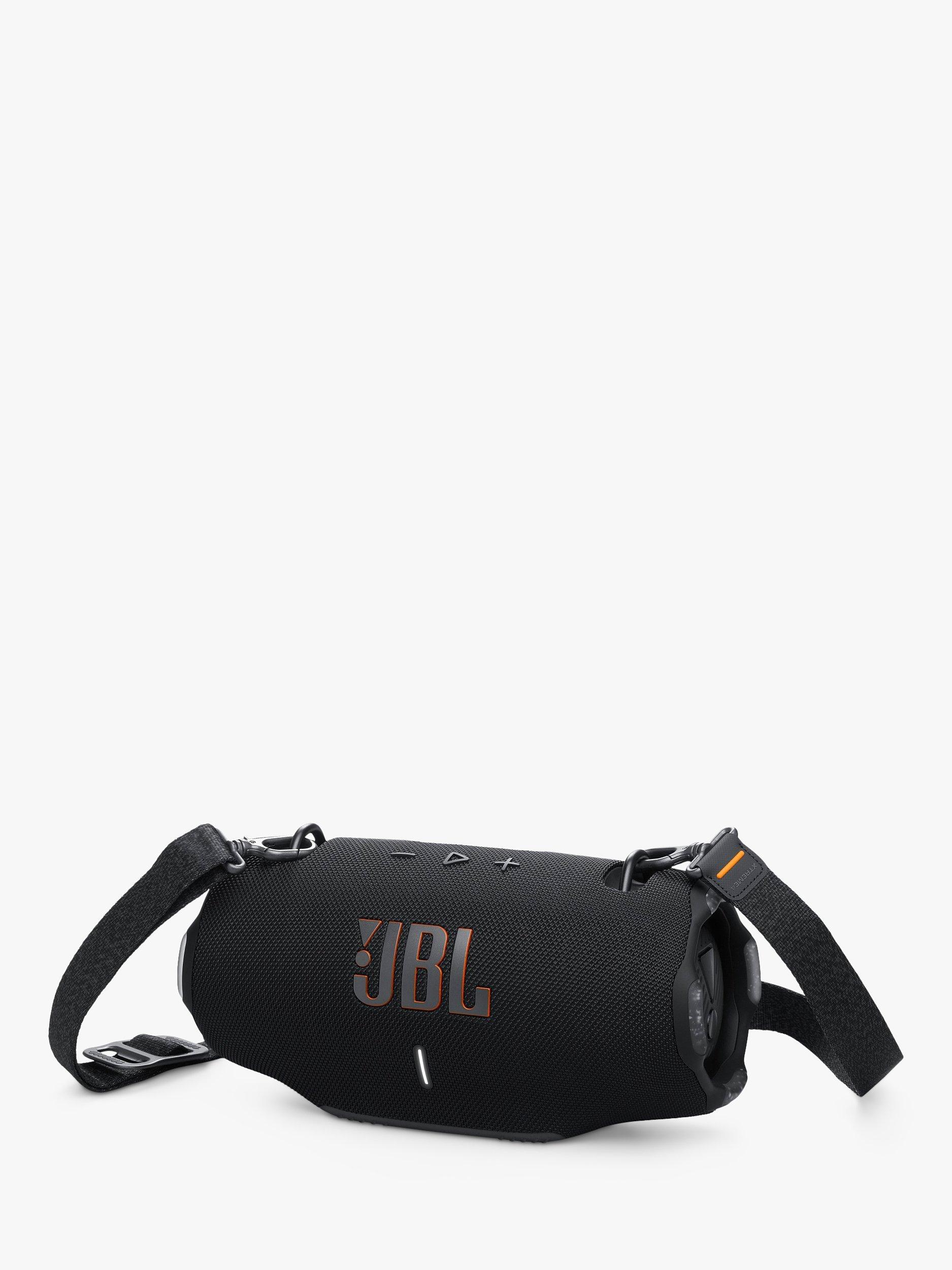 The JBL Xtreme 4 portable waterproof speaker delivers next-level massive JBL Pro Sound with amazing dynamics, even at top volume, thanks to two powerful woofers and two tweeters. Dual pumping JBL passive radiators give you deeper bass that moves you. Want to take your music outside? The handy shoulder strap makes it easy, while the rugged rubber bumpers and IP67 waterproof and dustproof rating mean that a sudden downpour or a dunk in the lake won't stop the fun. 24 hours of playtime and a convenient power bank for your device mean you won't have to recharge until morning. All this, plus it's made with recycled plastic and recycled fabric. The JBL Xtreme 4 brings thrilling sound with you …everywhere.