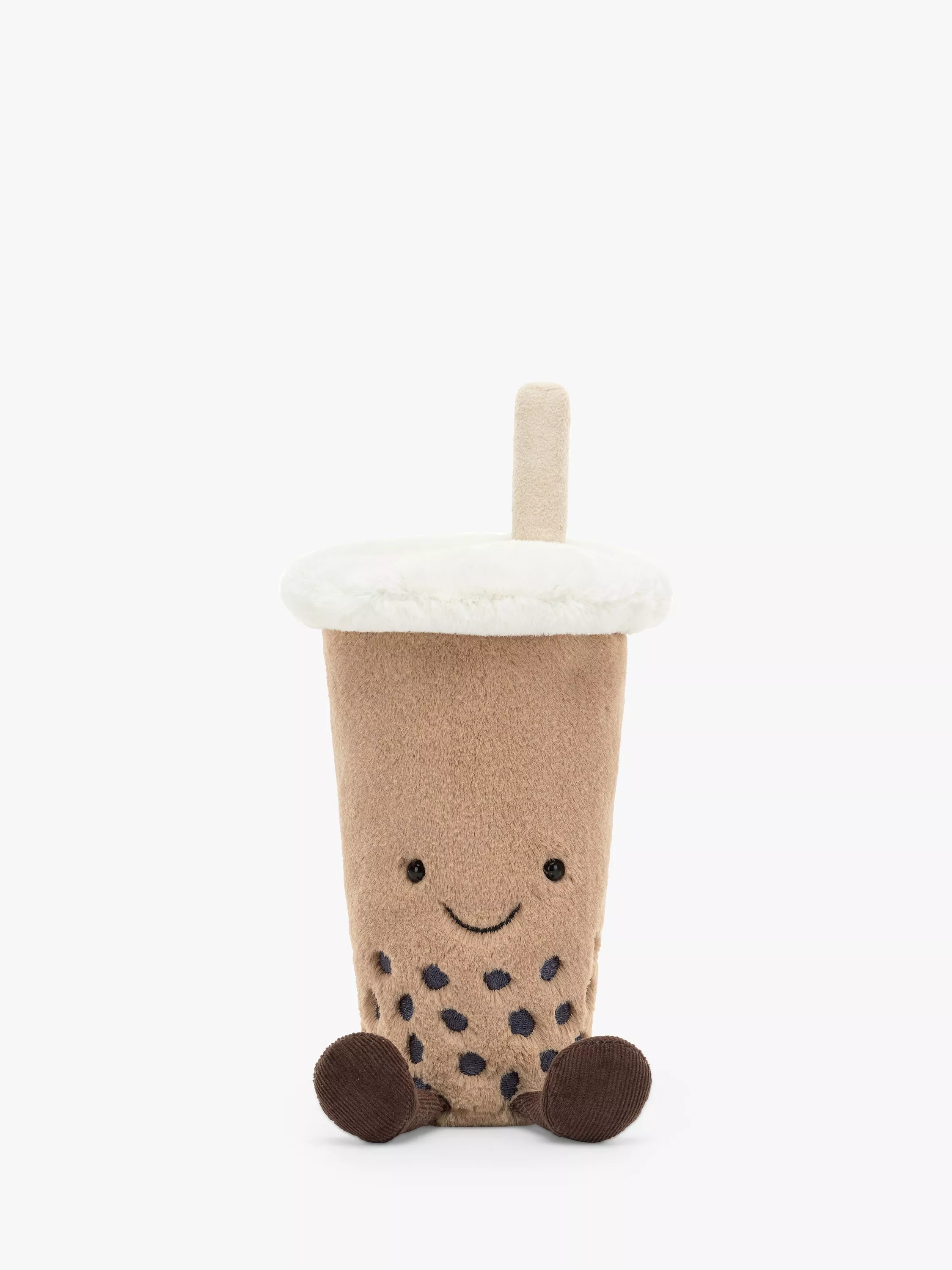 The Amuseable Bubble Tea is a super refreshing cuddle in soft beige fur! With stitched tapioca pearls and a suedette straw, this cream-capped cutie has cocoa fine cord boots, making it the perfect travel companion!