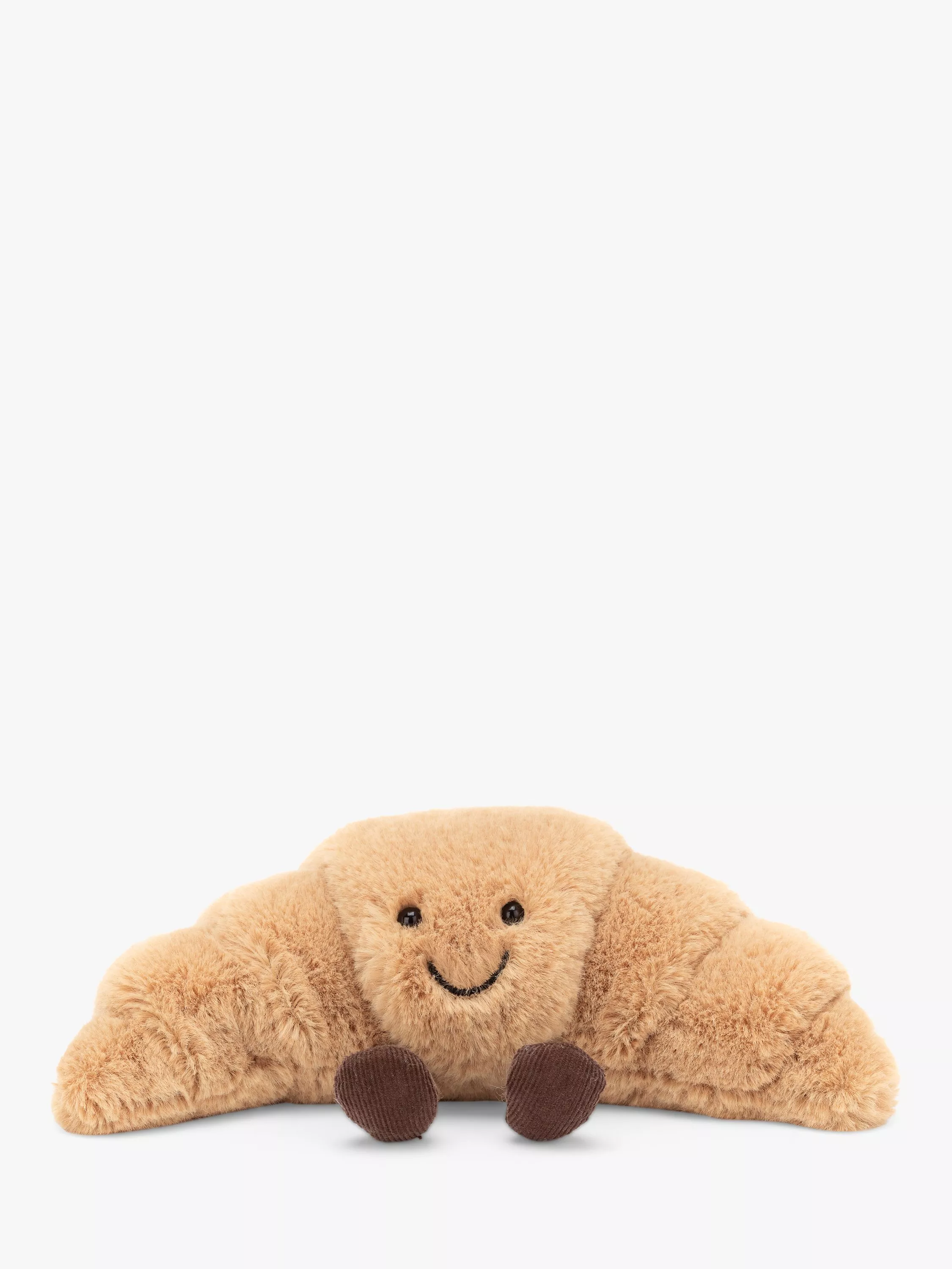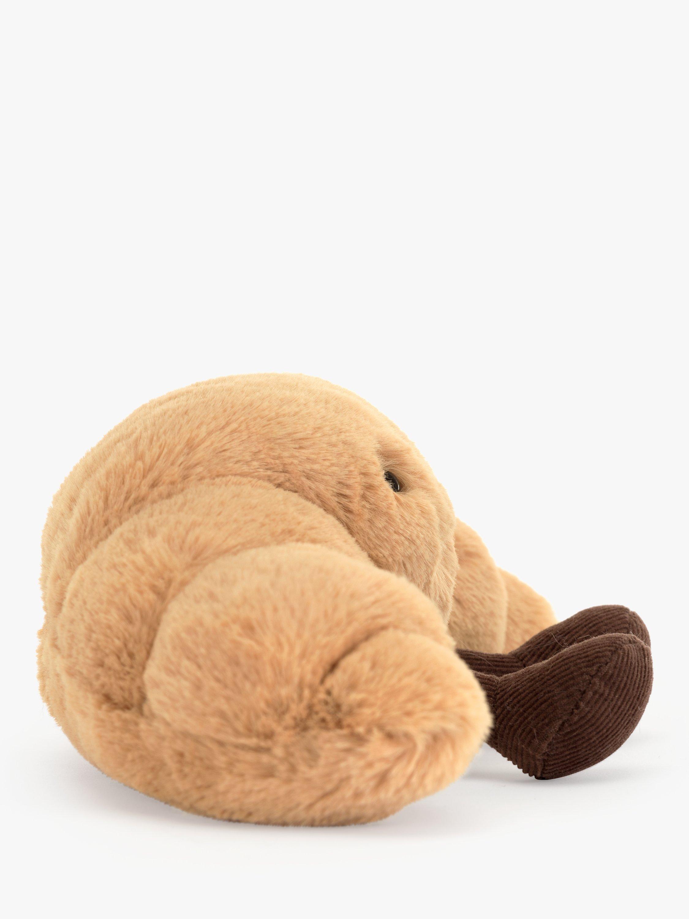 Amuseable Croissant is crumbly soft in golden fur, neatly twisted and baked to cuddly perfection. A sweet stitched smile and cordy chocolate boots make this buddy perfect for breakfast on the go!