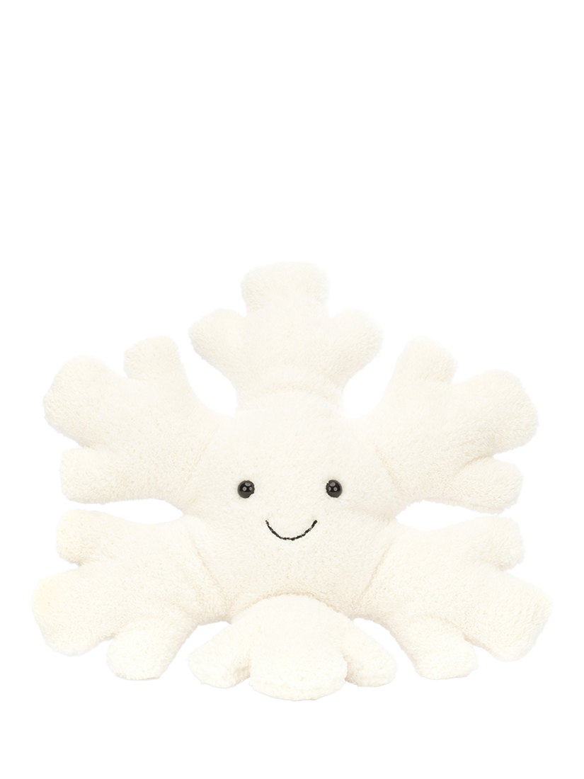 With super soft edges and a sweet stitched smile, it's Amuseable Snowflake. This winter wonder loves to give warm snuggles and sits on a beany bottom to keep the best company on cold nights.