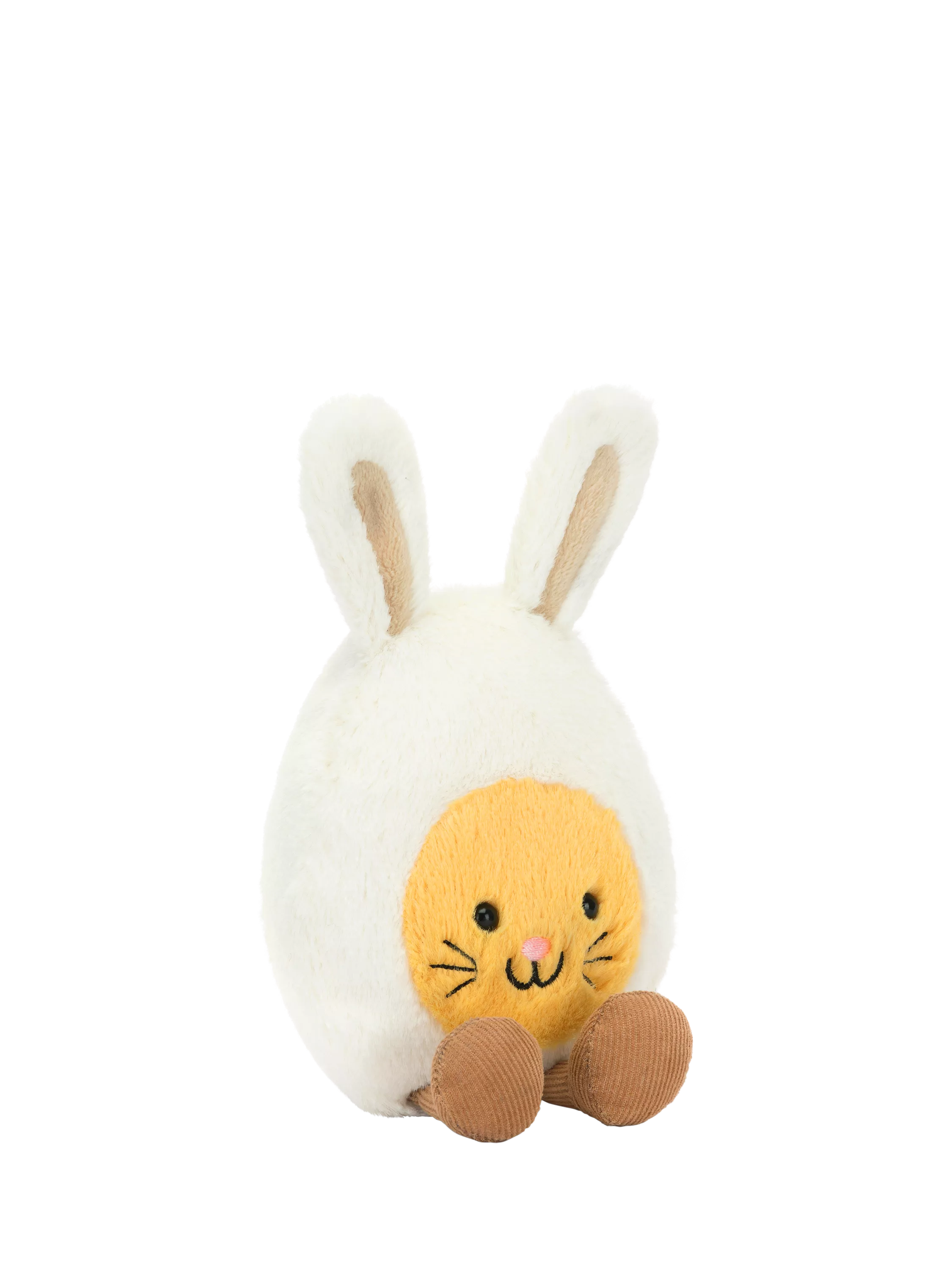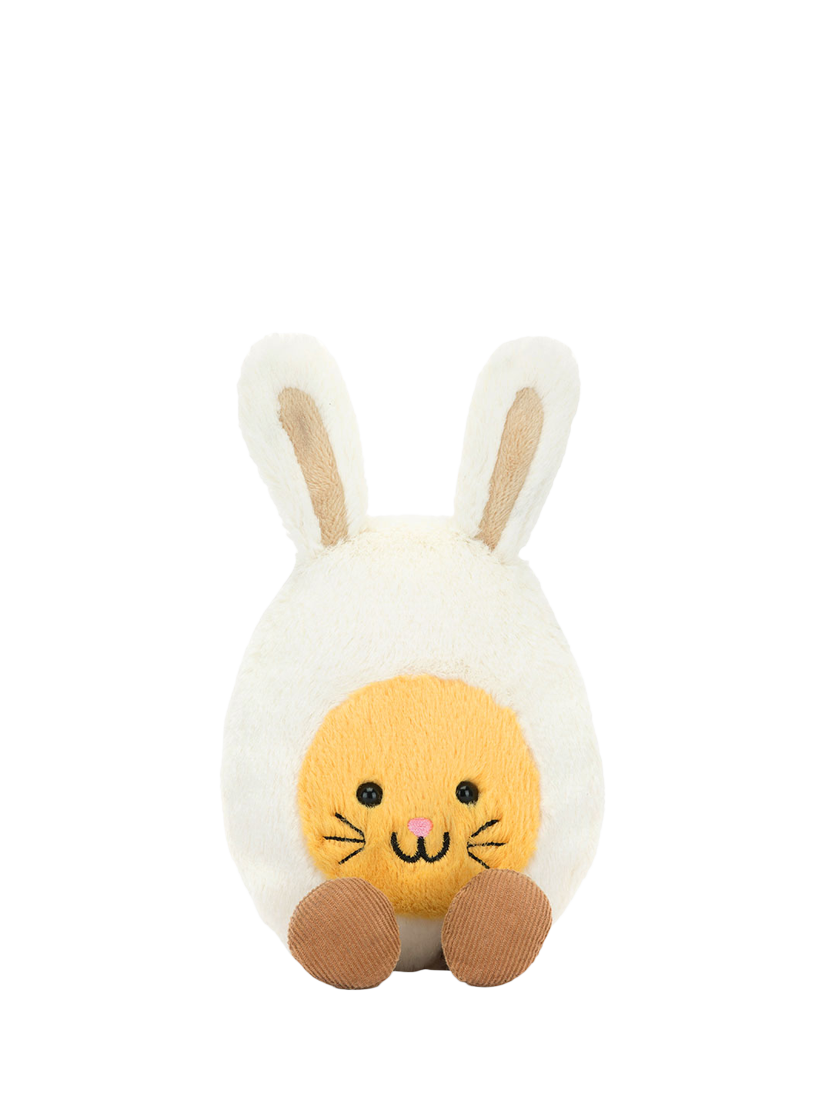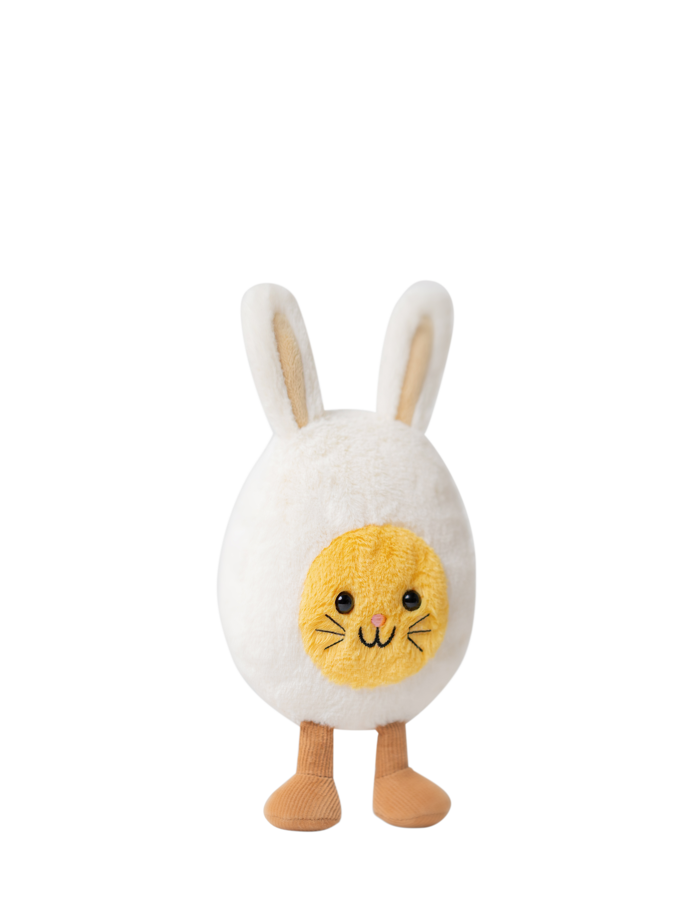 Amuseables Bunny Egg is all dressed up for the Easter hunt! Soft and sweet in cream and yellow fur, this boiled egg bunny has long cream ears with beige insides, and embroidered whiskers and nose. This perfect pal also has fine cord legs.