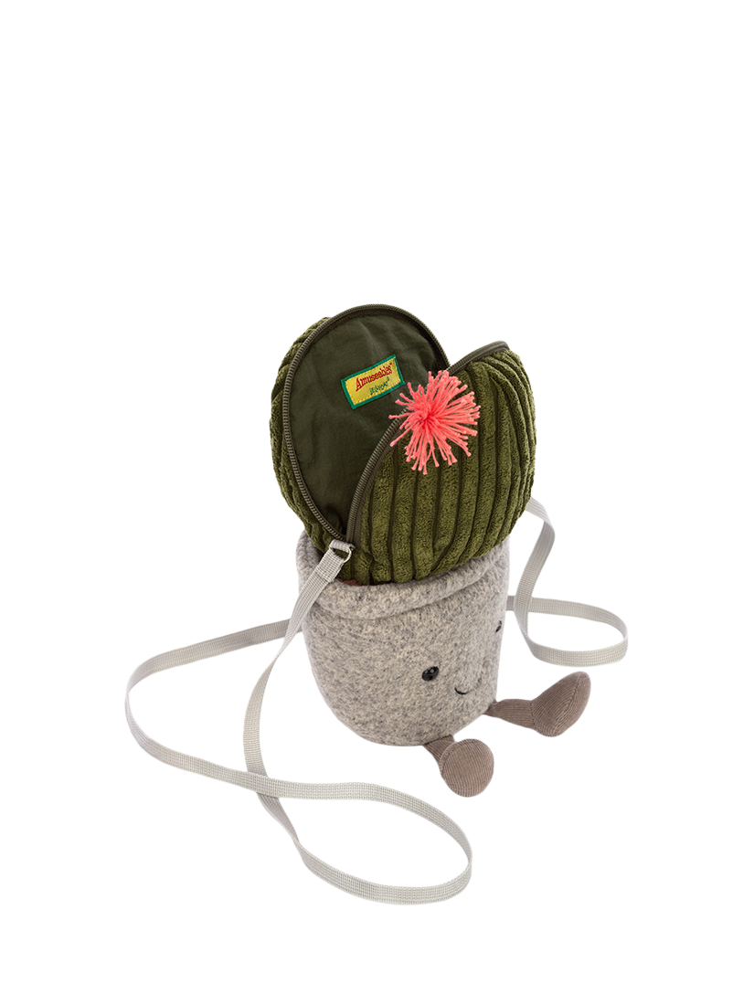 Amuseables Cactus Bag is the perfect plant on the go! A cordy cactus nestled in a grey cotton pot, this cuddly succulent can keep essentials safe, with a grey shoulder strap to keep hands free!