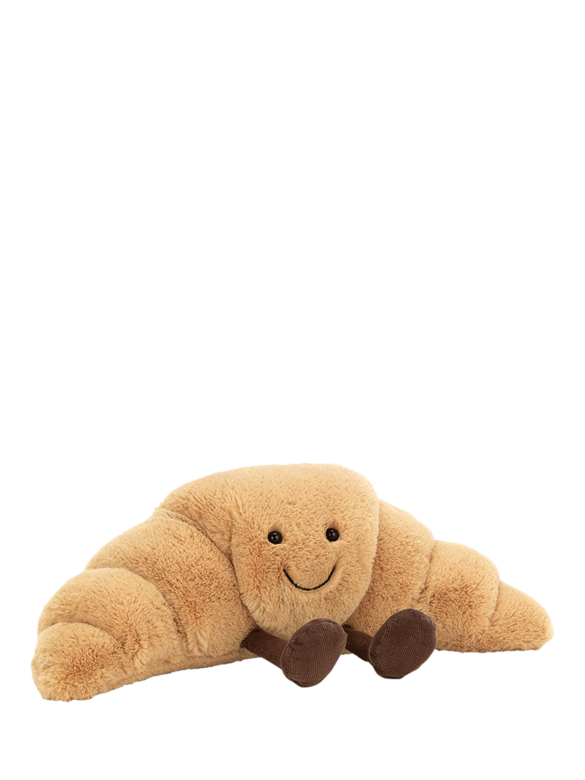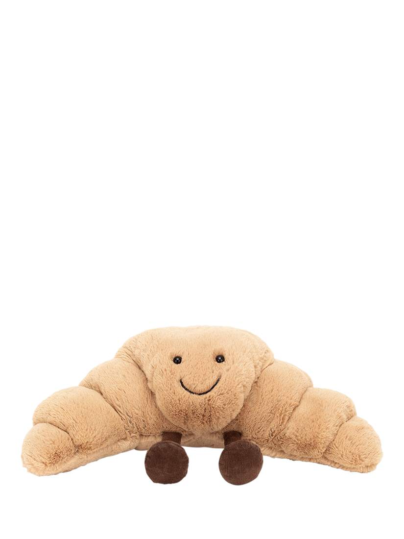 As front of house at the Jellycat Patisserie, Amuseables Croissant greets every guest with a bow, a beaming smile and – if you're lucky – a chocolate sample from the tray.