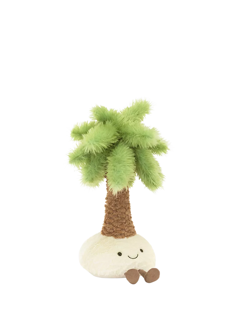 Amuseables Pammie Palm Tree has her own tropical oasis. A textured trunk topped with fluffy fronds nestled on a patch of pale yellow sand. With a stitched smile and fine cord legs, let Pammie take you to paradise wherever you are.