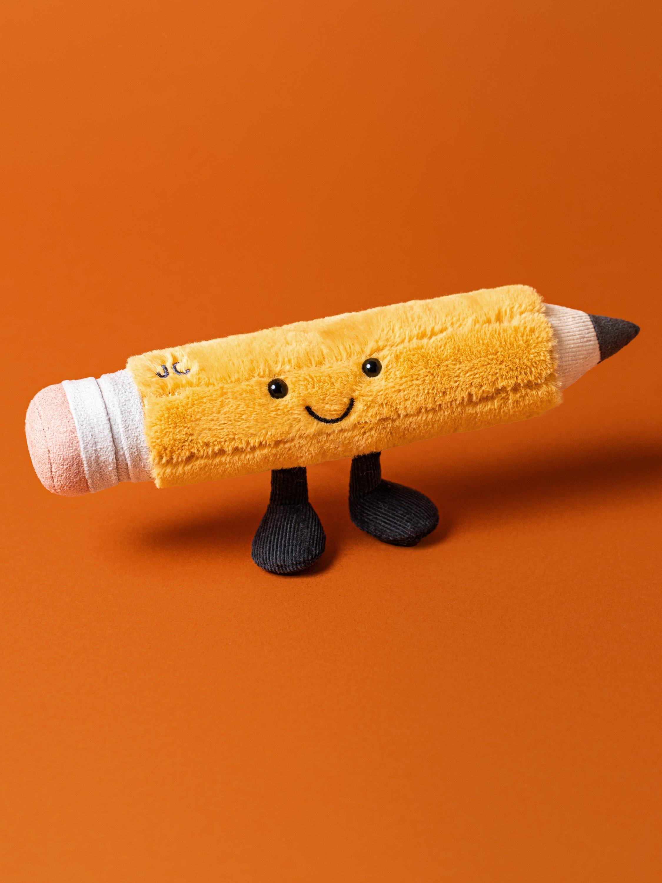 Let the creativity flow with Amuseables Pencil. Soft in bright yellow fur with textured nib and suedette eraser, Amuseables Pencil has a big, stitched smile and fine cord legs, the perfect source of inspiration for any project.