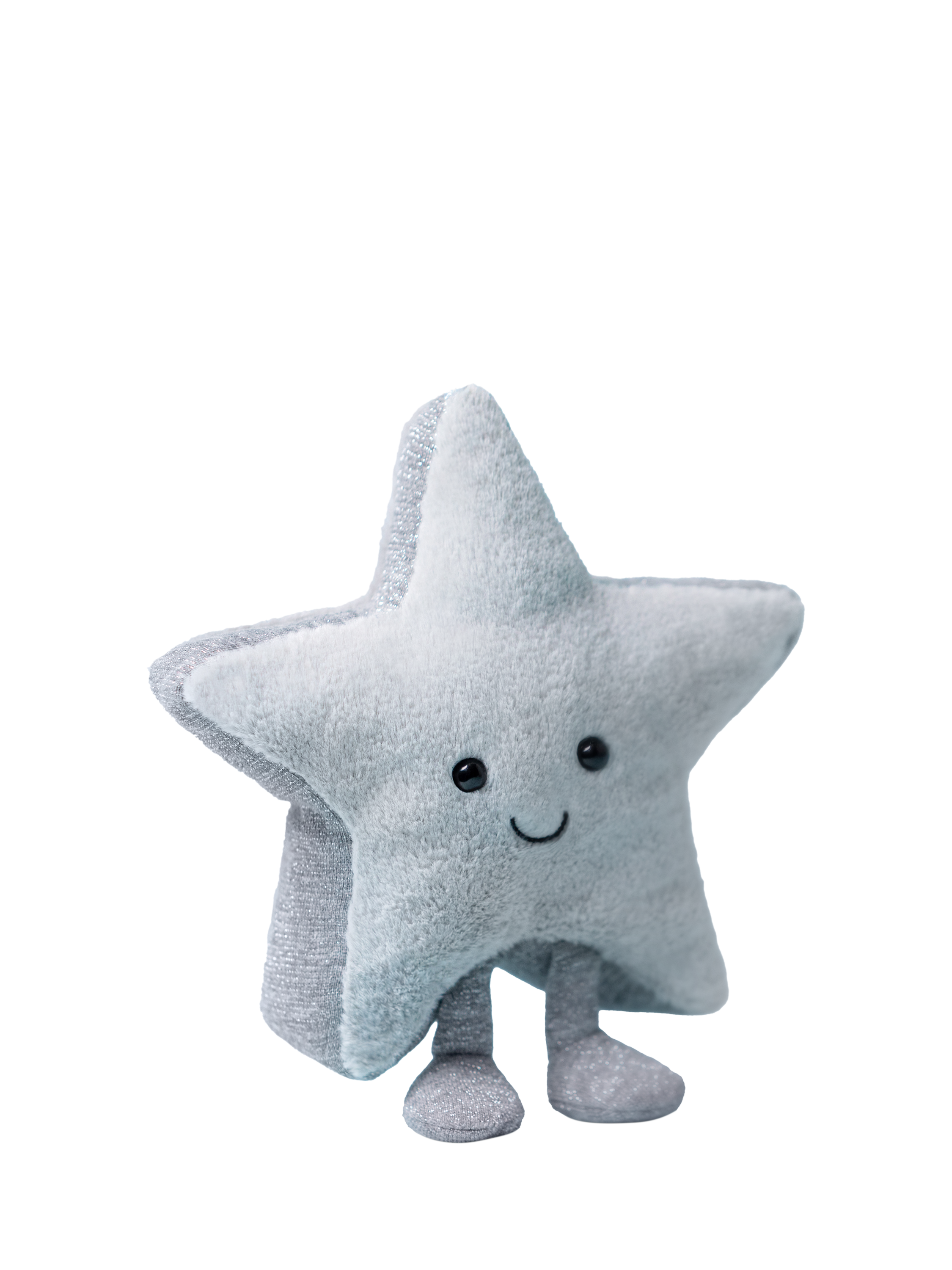 Guiding the way to Christmas cuddles. Soft in light grey fur with glittery sides and matching boots, this star has a big smile that lights up any room!