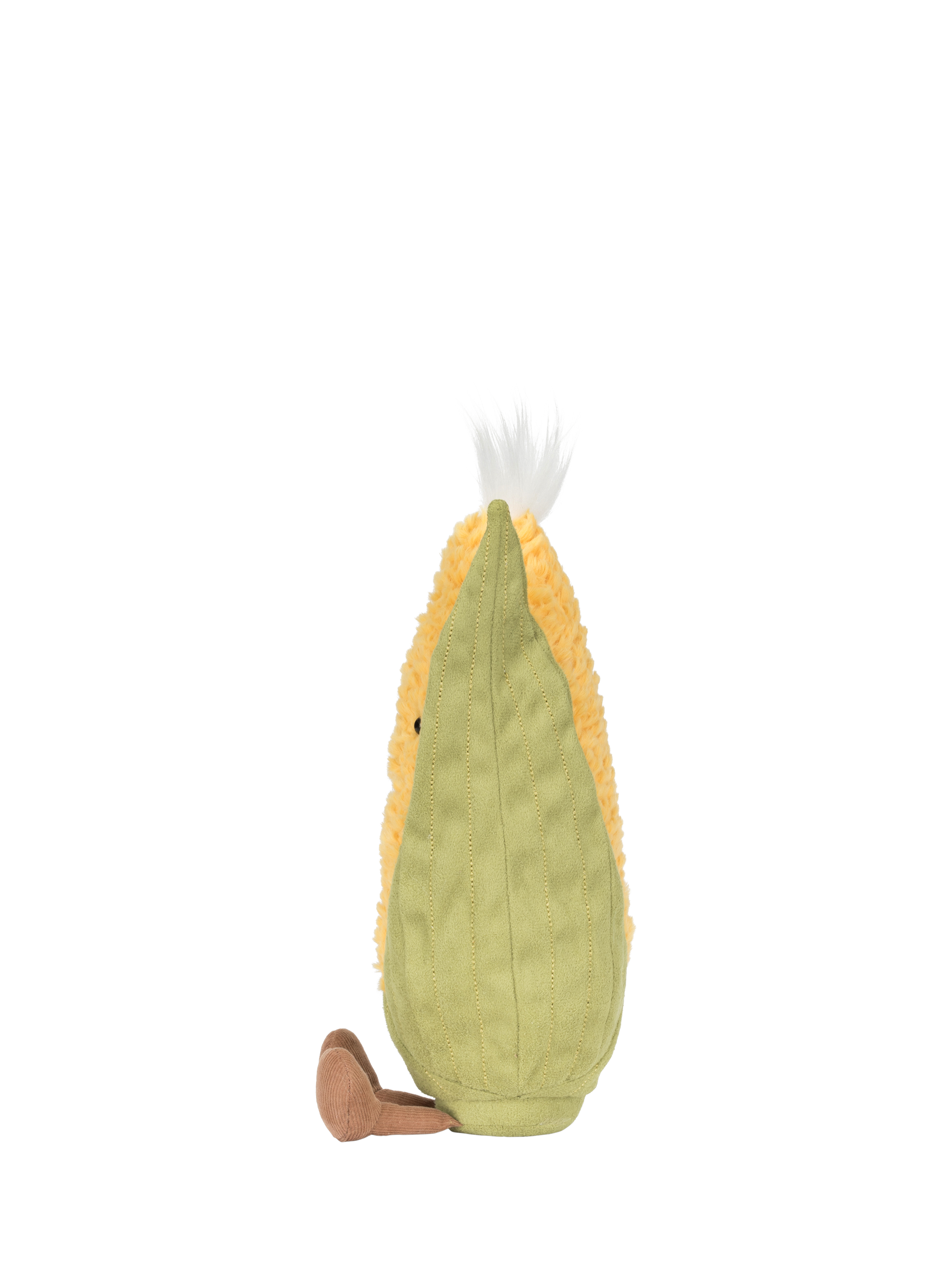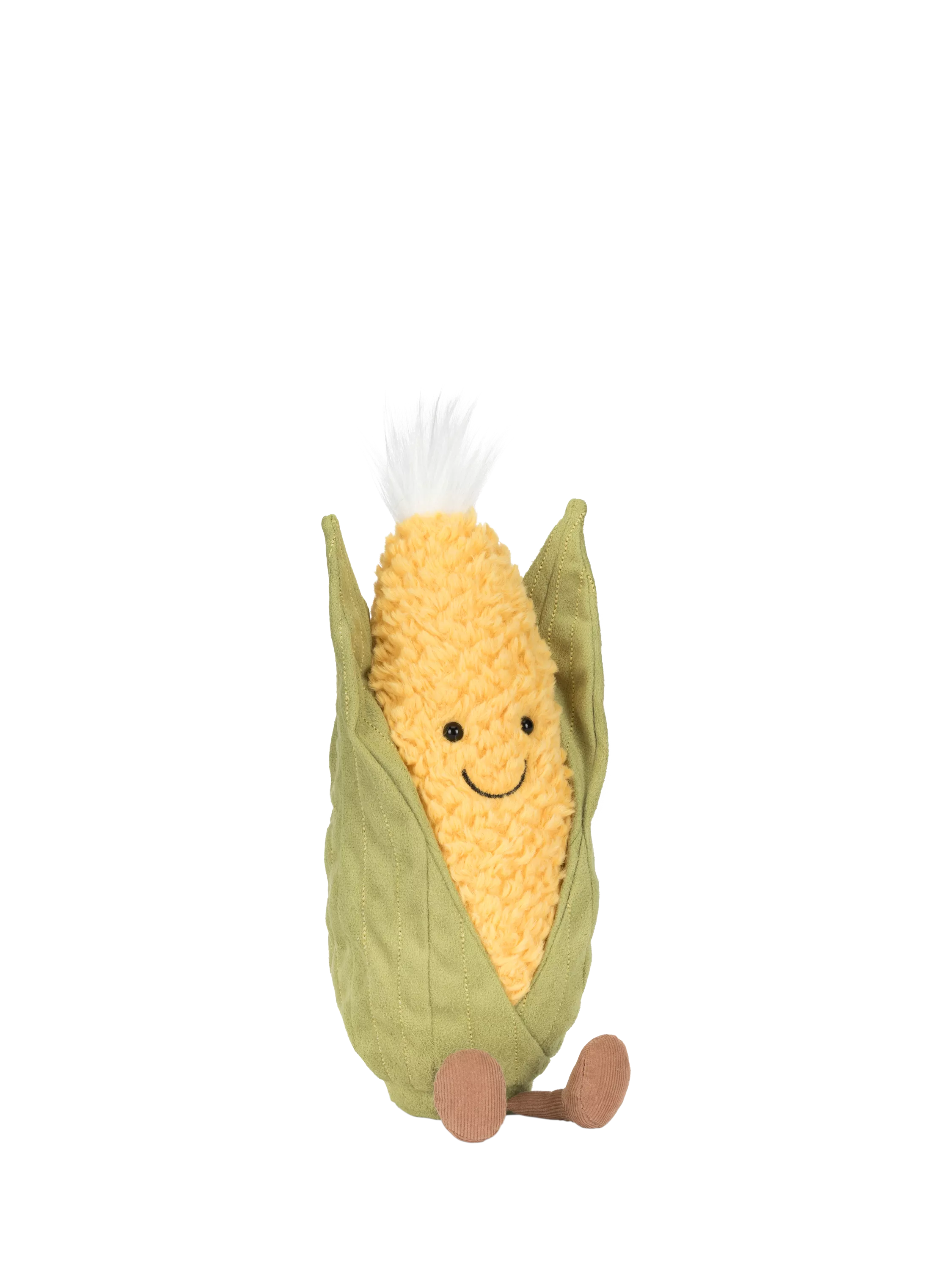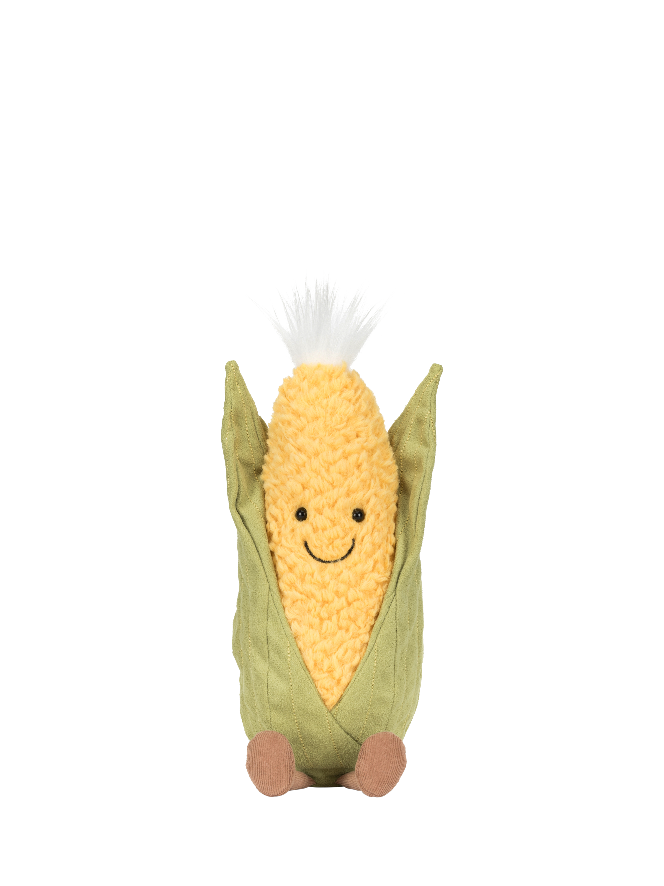 Amuseables Sweetcorn is simple a-maize-ing! Wrapped in a suedette green husk with stitched detail and fine cord boots, this textured yellow corn has a big, stitched smile and a cream fluffy top – the perfect veggie pal for your foodie friend.