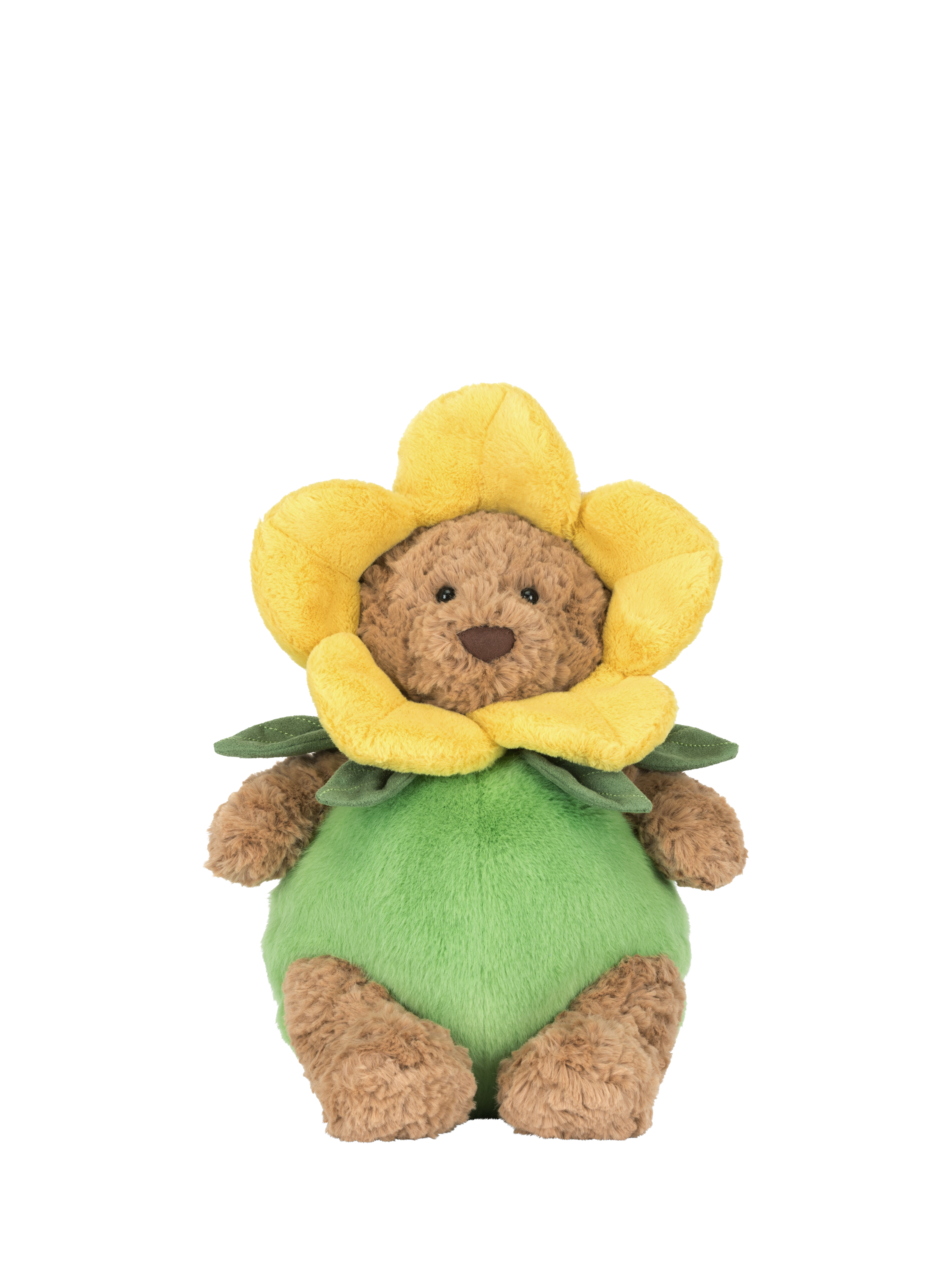 Our favourite textured toffee bear has a removable green costume with a bonnet of daffodil yellow petals – the perfect companion for spring adventures great or small.
