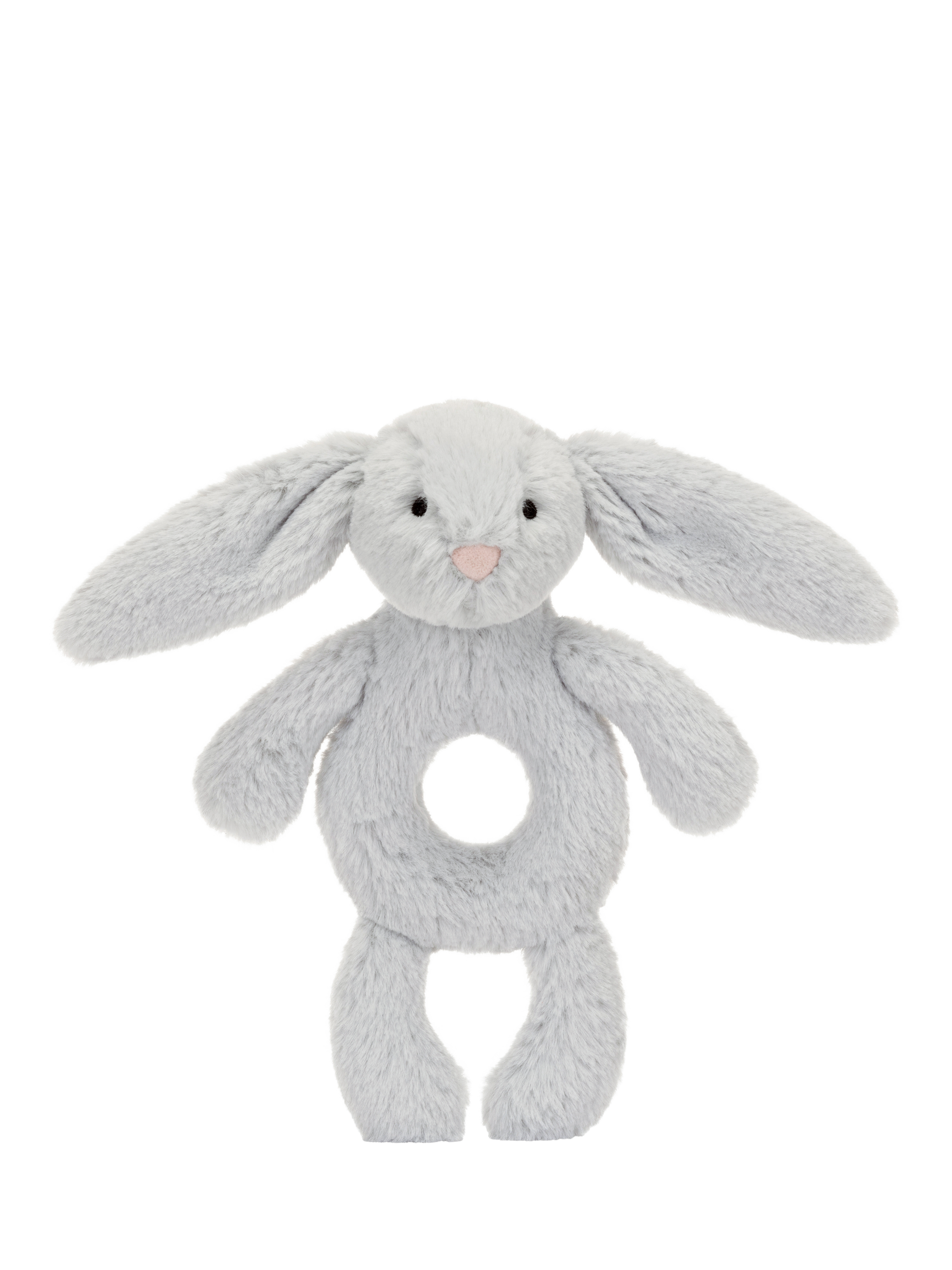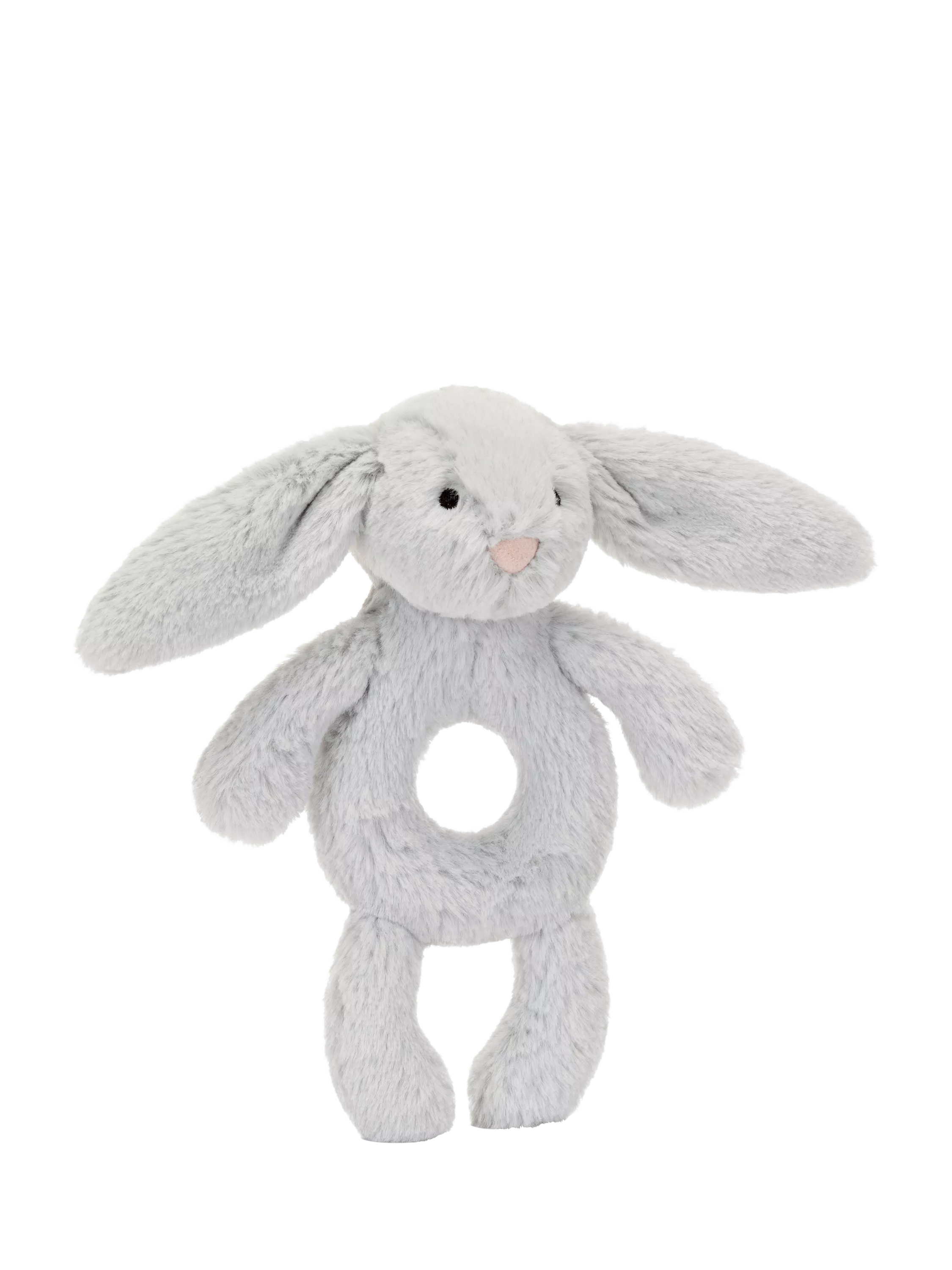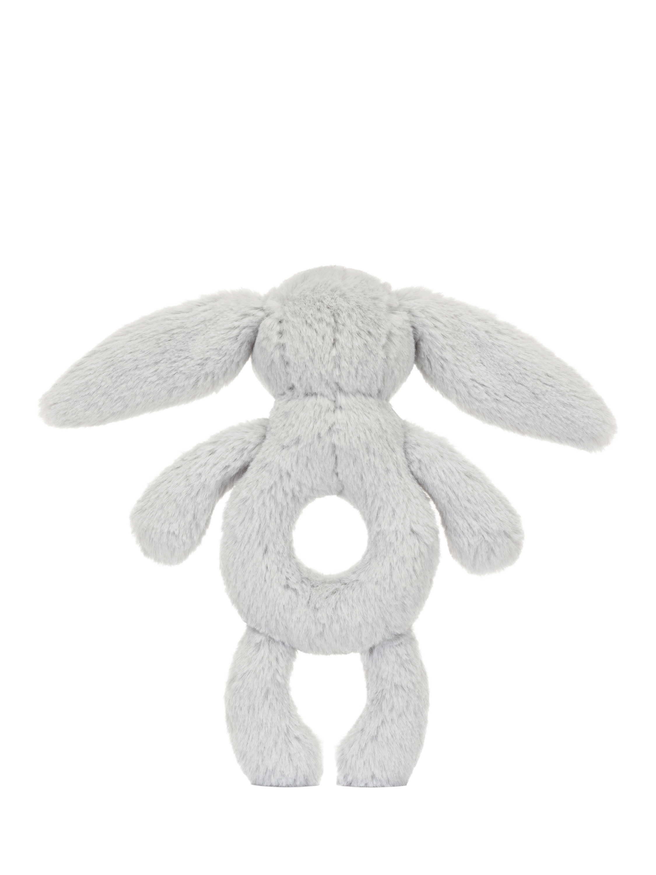 Bashful Silver Bunny Ring Rattle is perfect for jingling playtime. In silver-grey fur created from recycled fibres, this bunny has a doughnut-shaped tummy perfect for little hands to hold and shake for instant joy.