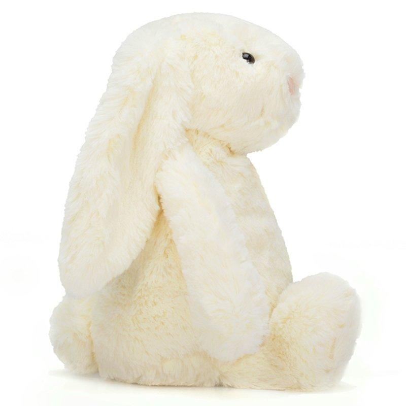 Give Bashful bunny a big hug and feel his luxurious soft cream fur. He has huge floppy ears and a little pink nose.