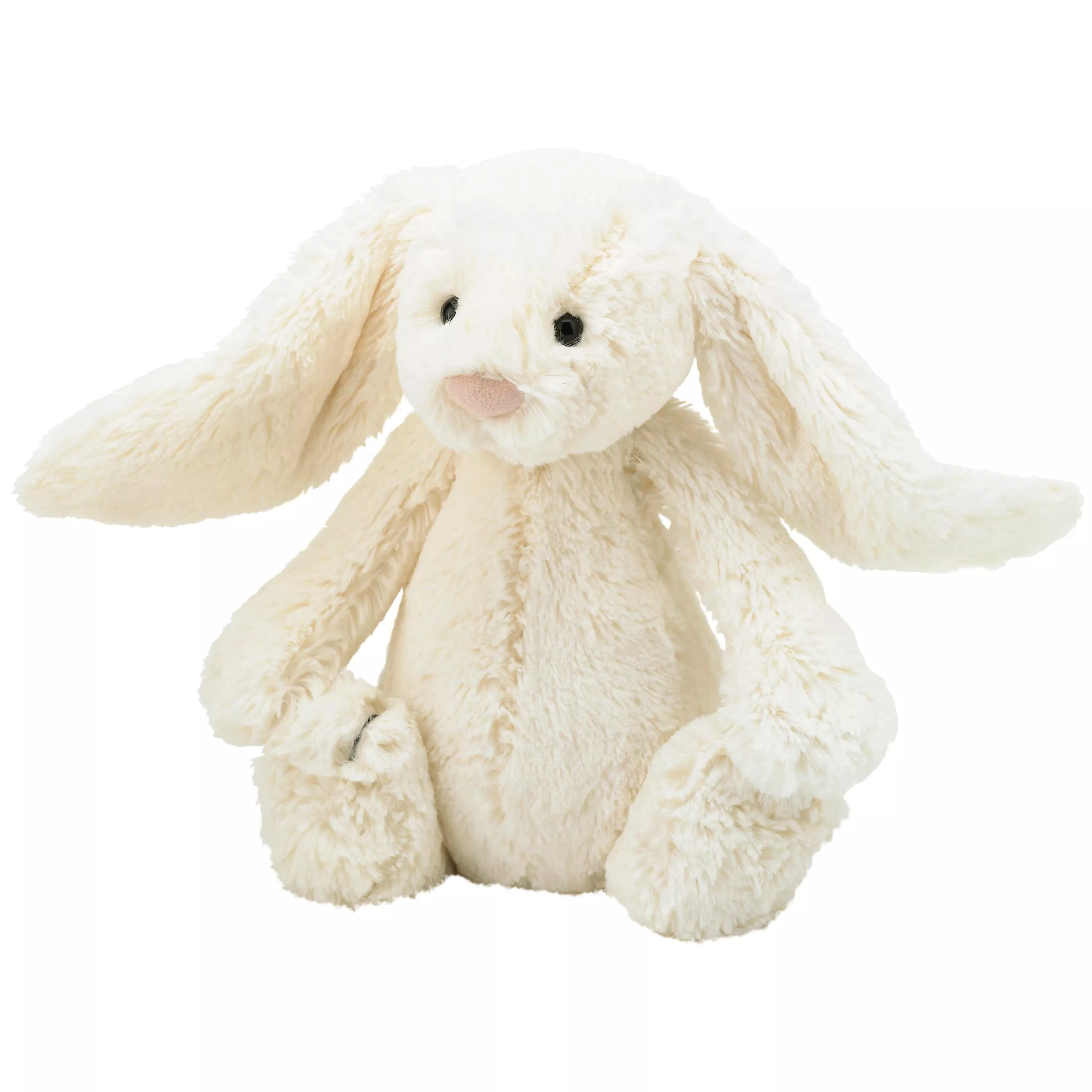 Give Bashful bunny a big hug and feel his luxurious soft cream fur. He has huge floppy ears and a little pink nose.
