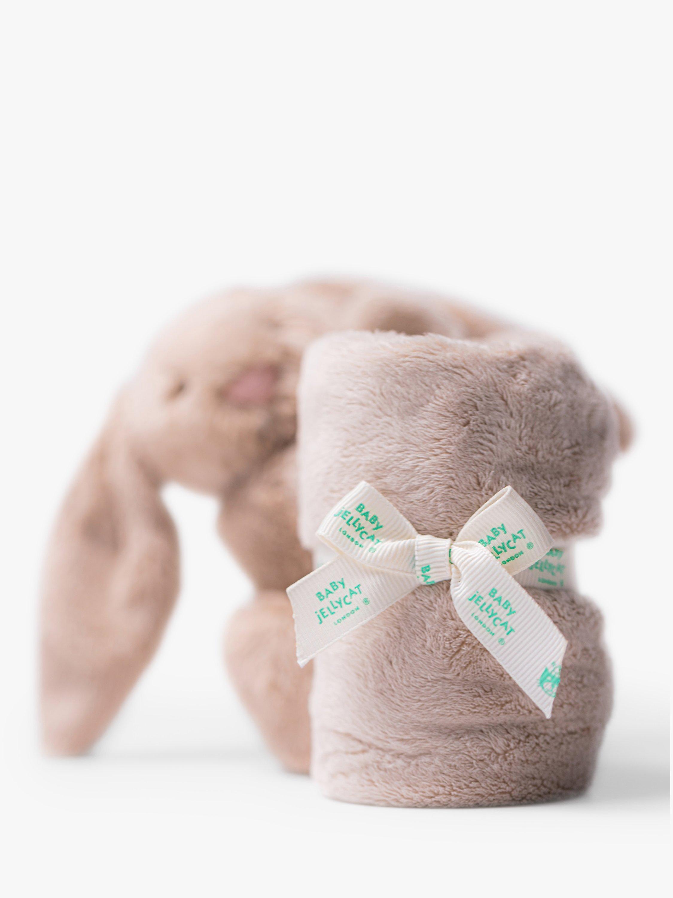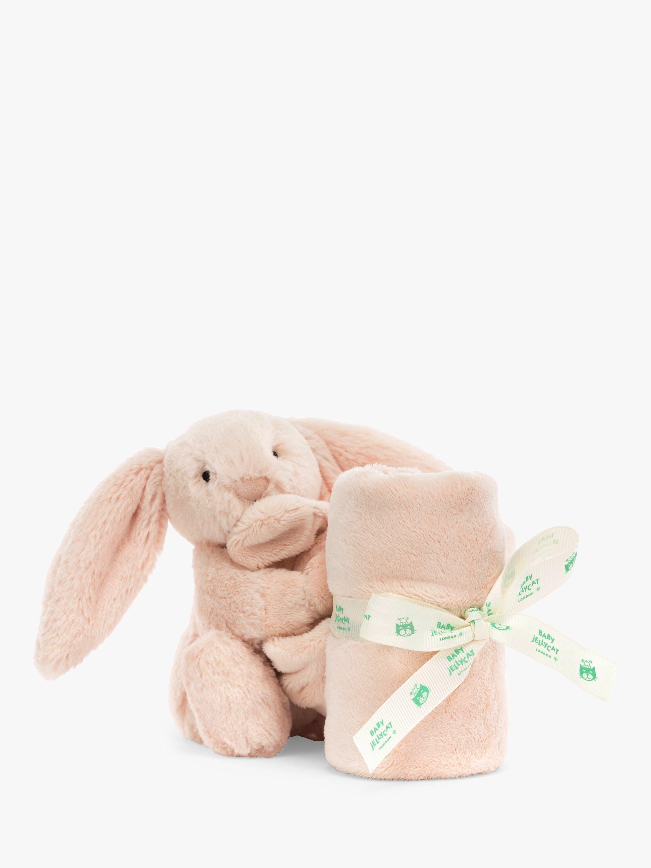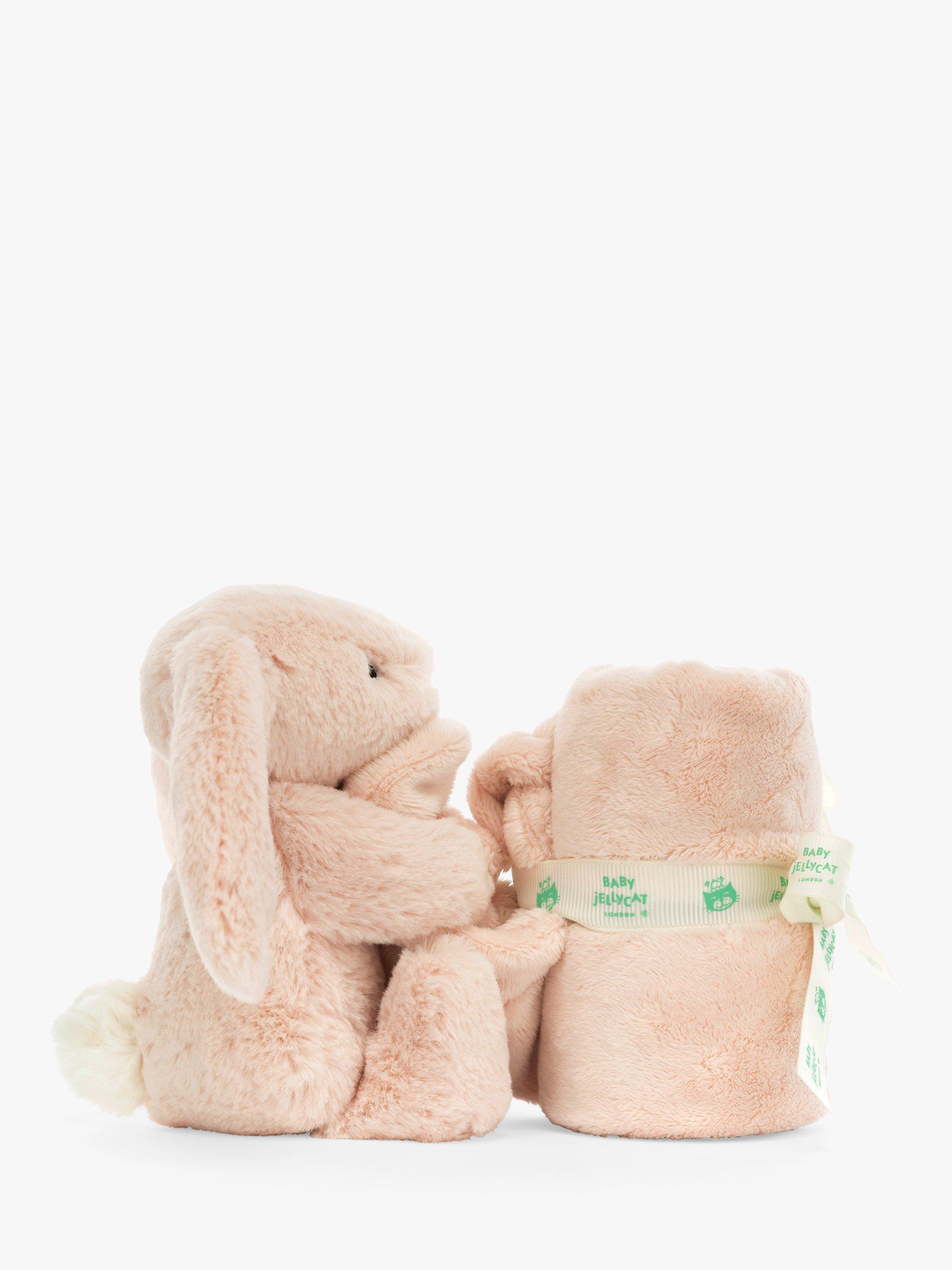 Bashful Bunny Soother from Jellycat brings comfort at sleep times. The soother and matching bunny in soft Bashful faux fur are created from recycled fibres. Little ones can cuddle up with the blanket or with the tiny Bashful Bunny holding on to the corner, for sweet dreams.