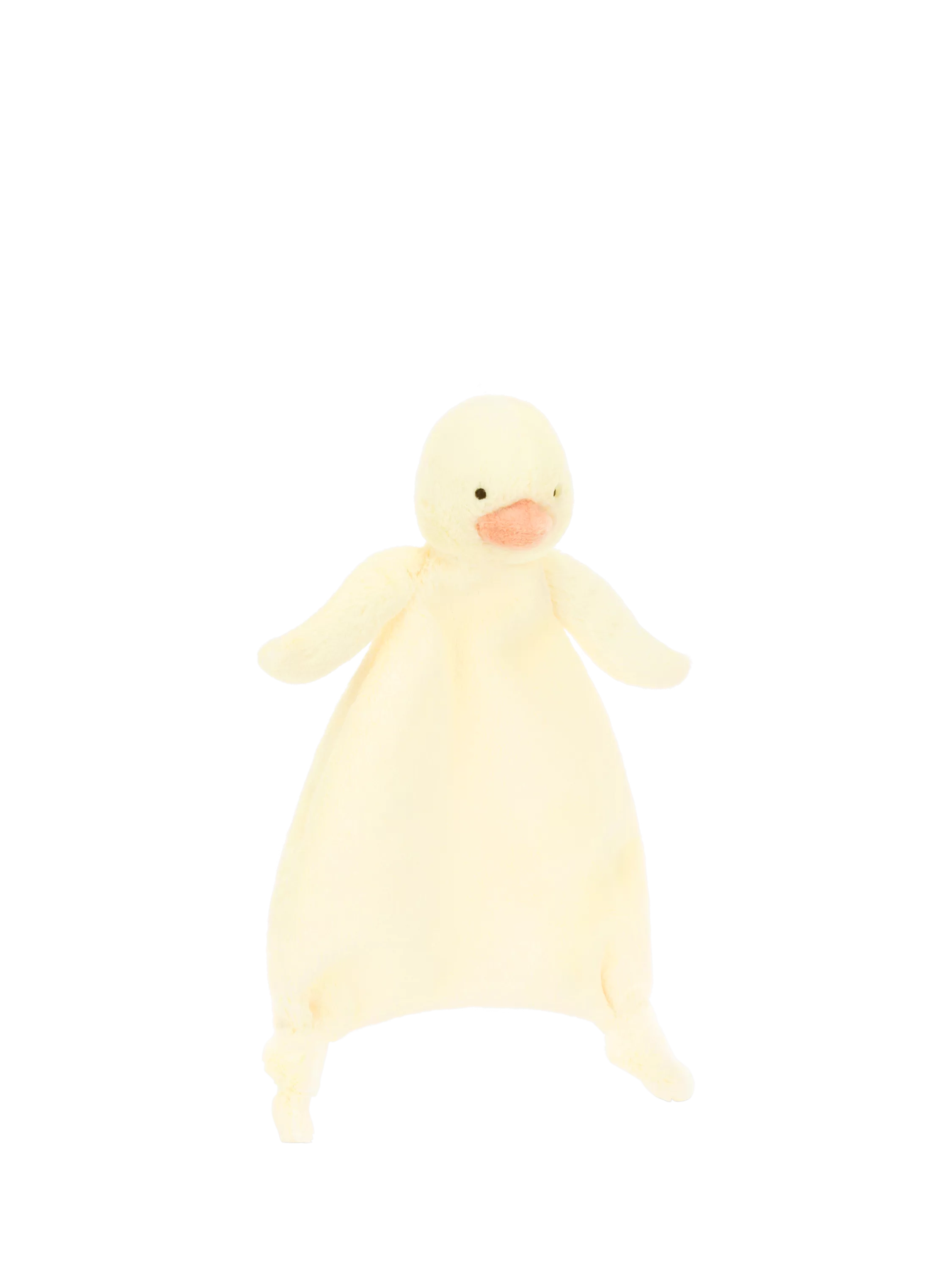 Bashful Duckling Comforter is the perfect cuddling companion. Shaped like Bashful Duckling in iconic pale yellow, the fur and light orange beak are created from recycled fibres. Little ones can hold on to a duckling s wing, or cuddle into an unstuffed tummy for joyful journeys and soothing sleeps.