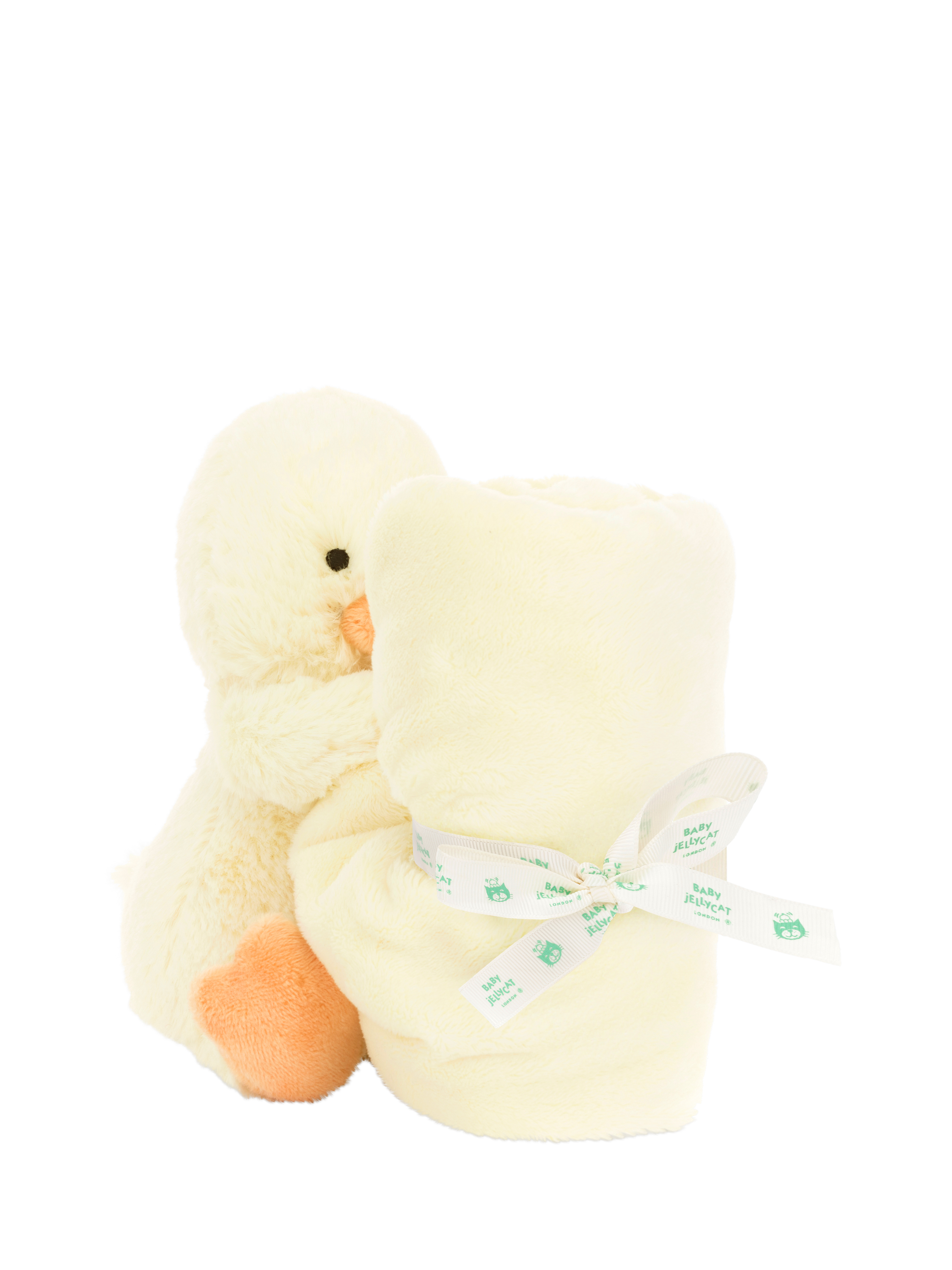 Bashful Duckling Soother offers the perfect comfort at sleep times. With a soother and matching duckling in iconic pale yellow Bashful fur created from recycled fibres, little ones can cuddle up with the blanket or the tiny Bashful Duckling holding on to the corner for the most joyful of dreams.