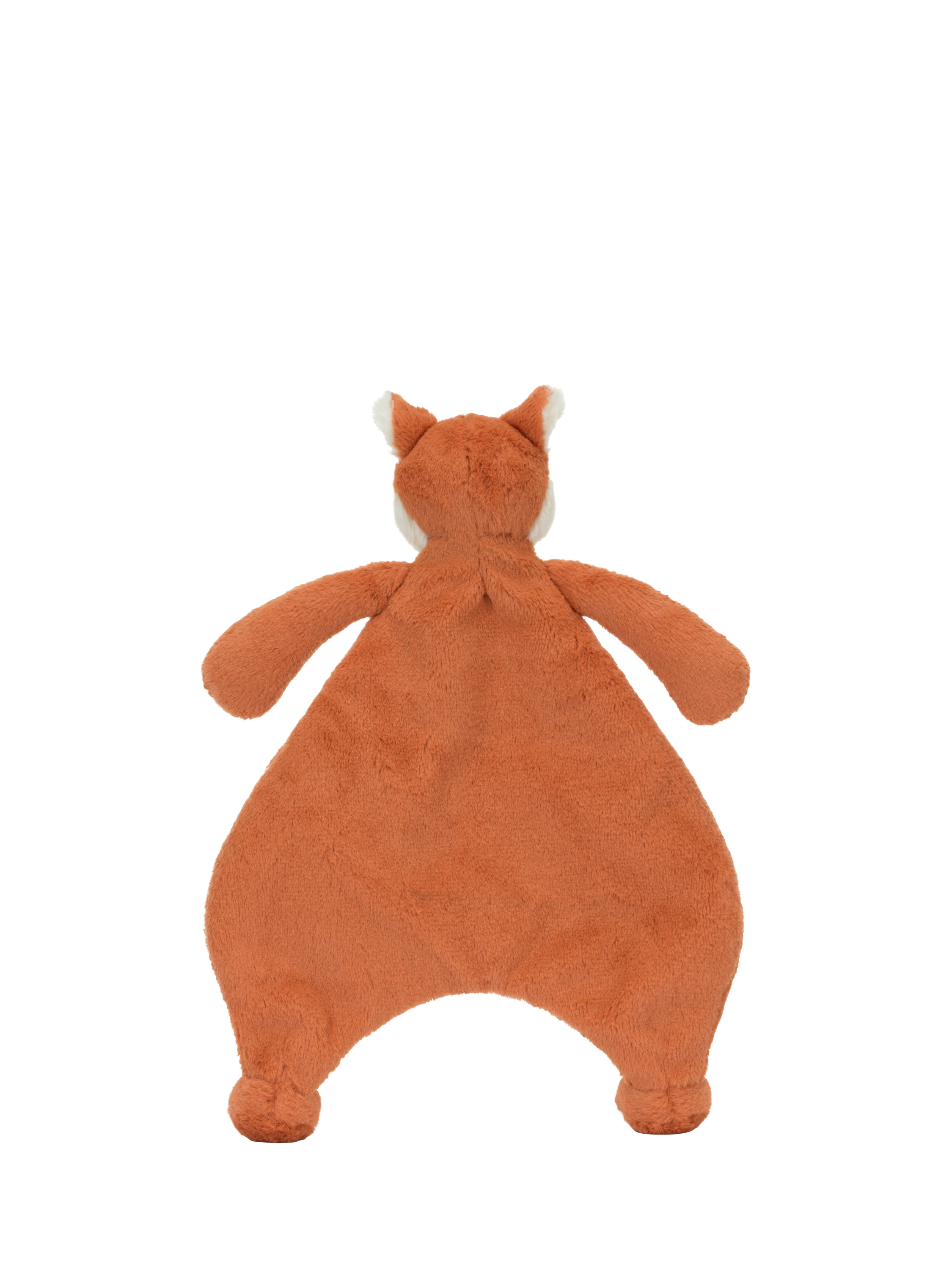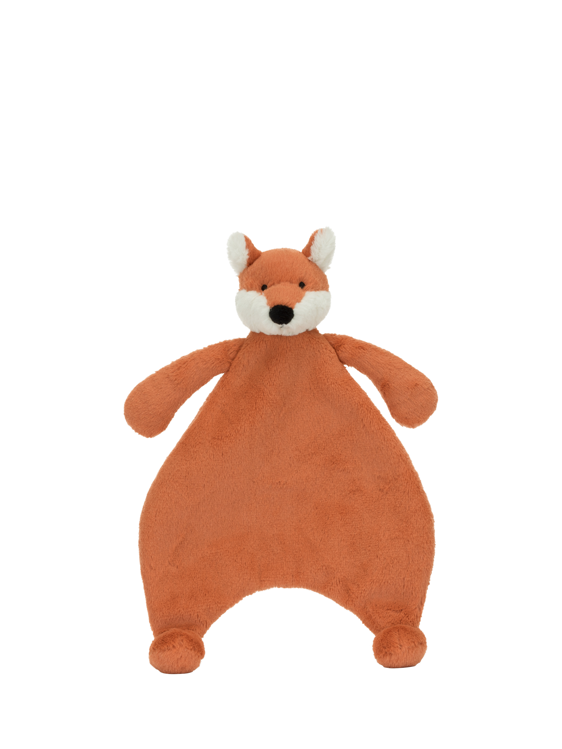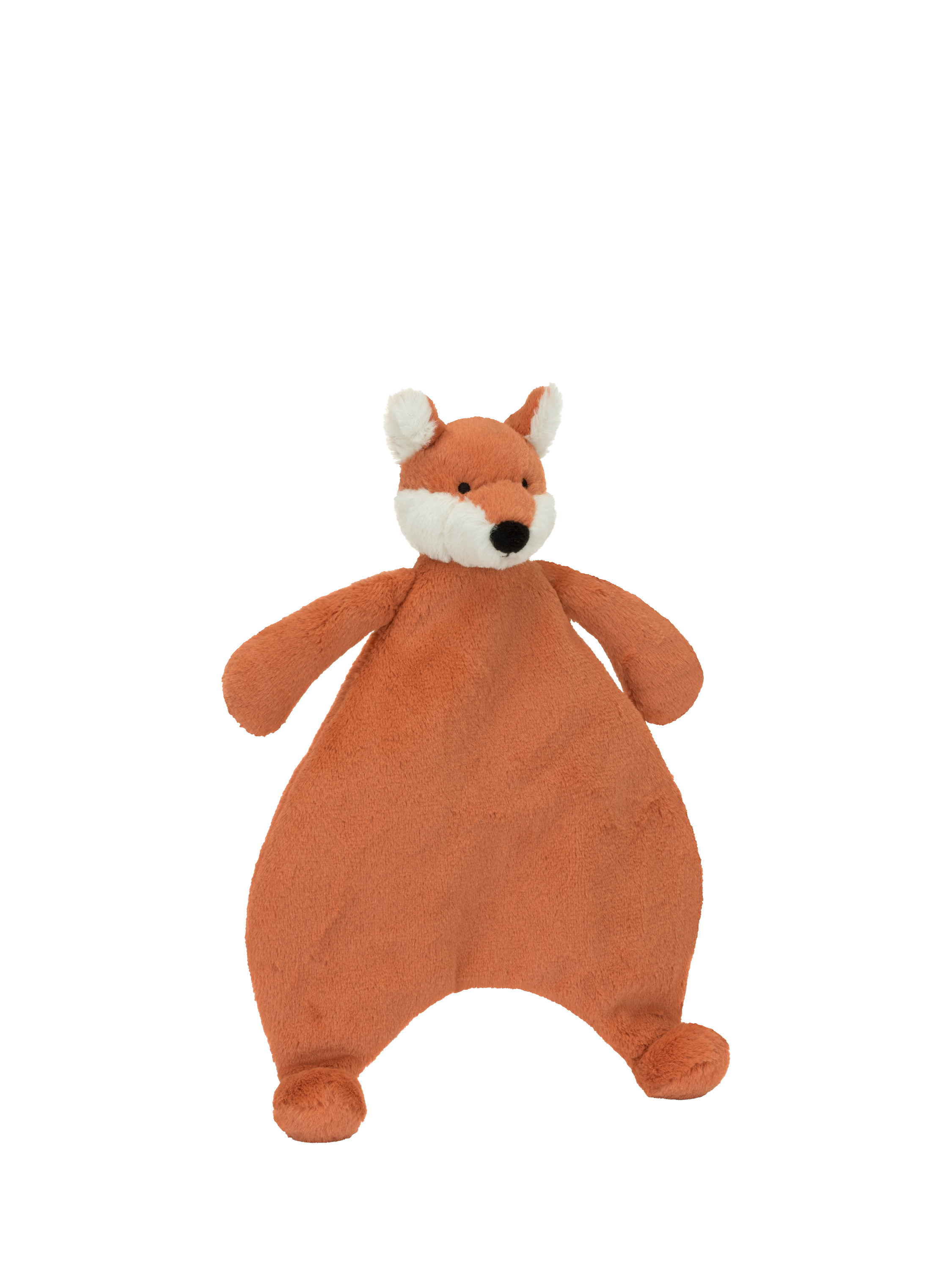 Bashful Fox Cub Comforter is the perfect cuddling companion. Shaped like Bashful Fox Cub in orange fur created from recycled fibres, little ones can hold on to fox’s hand, or cuddle into an unstuffed tummy for joyful journeys and soothing sleeps.