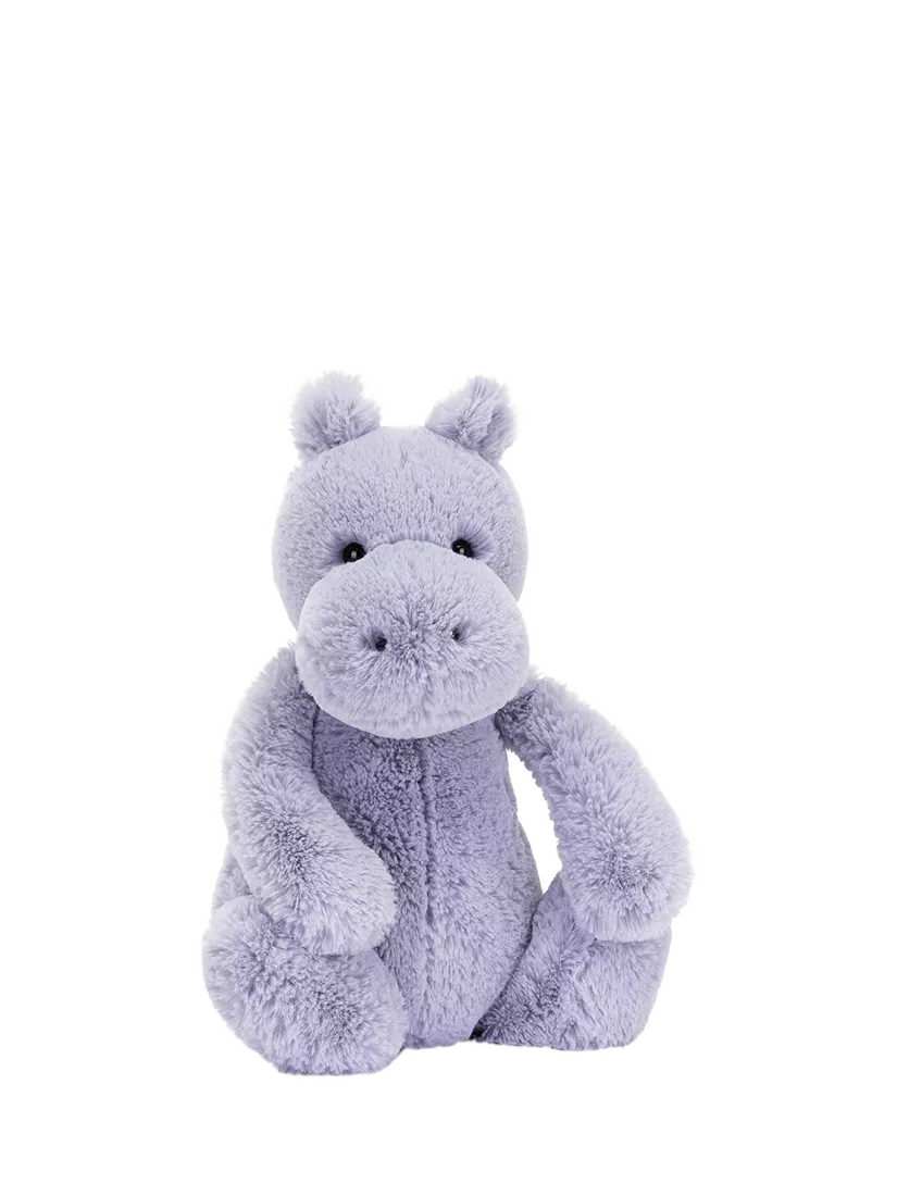With dusty lilac fur and big paws, it's Bashful Hippo. This happy hippo loves to waggle those diddy ears and sniff out cuddles with that big nose with embroidered detail!