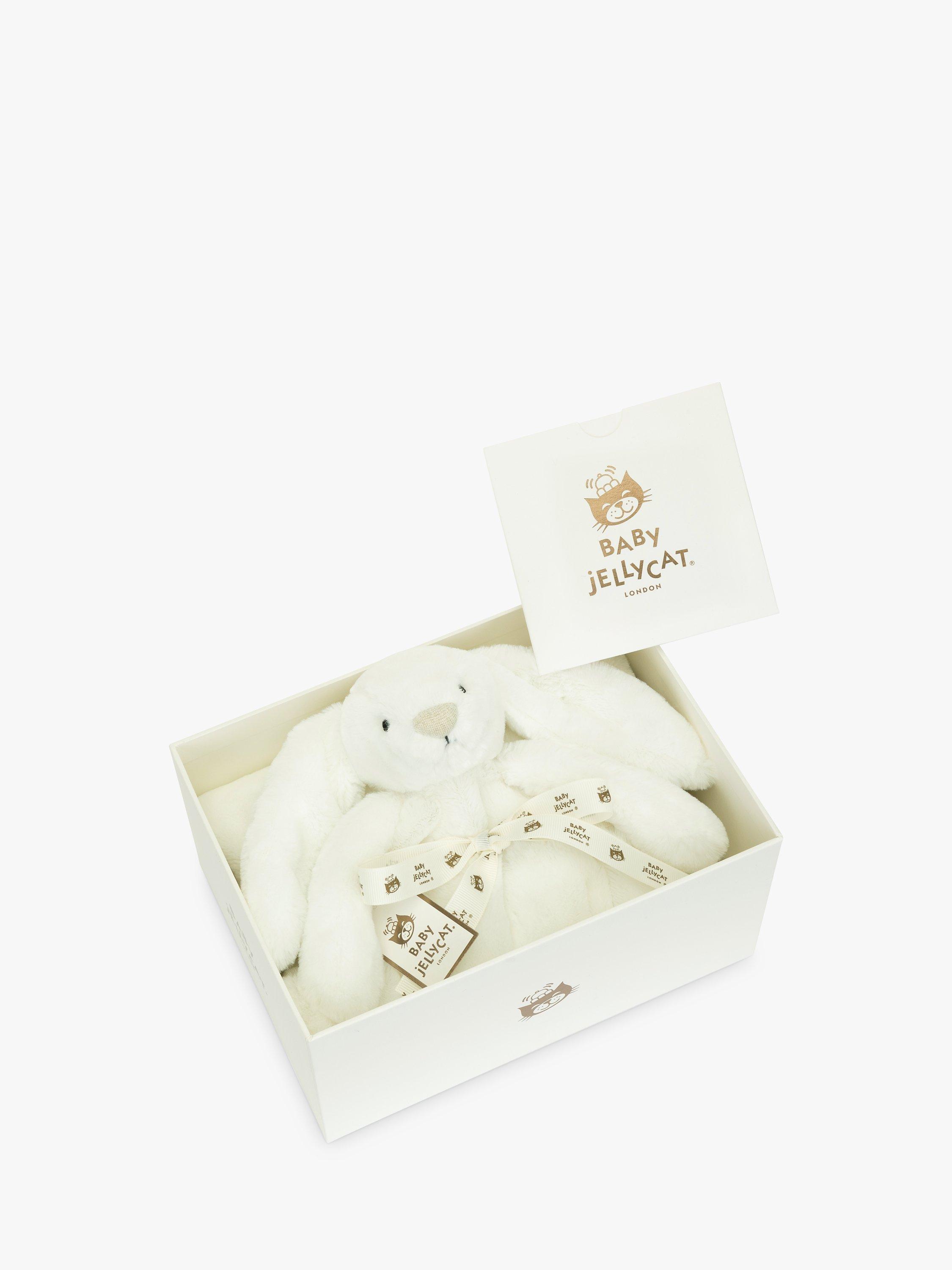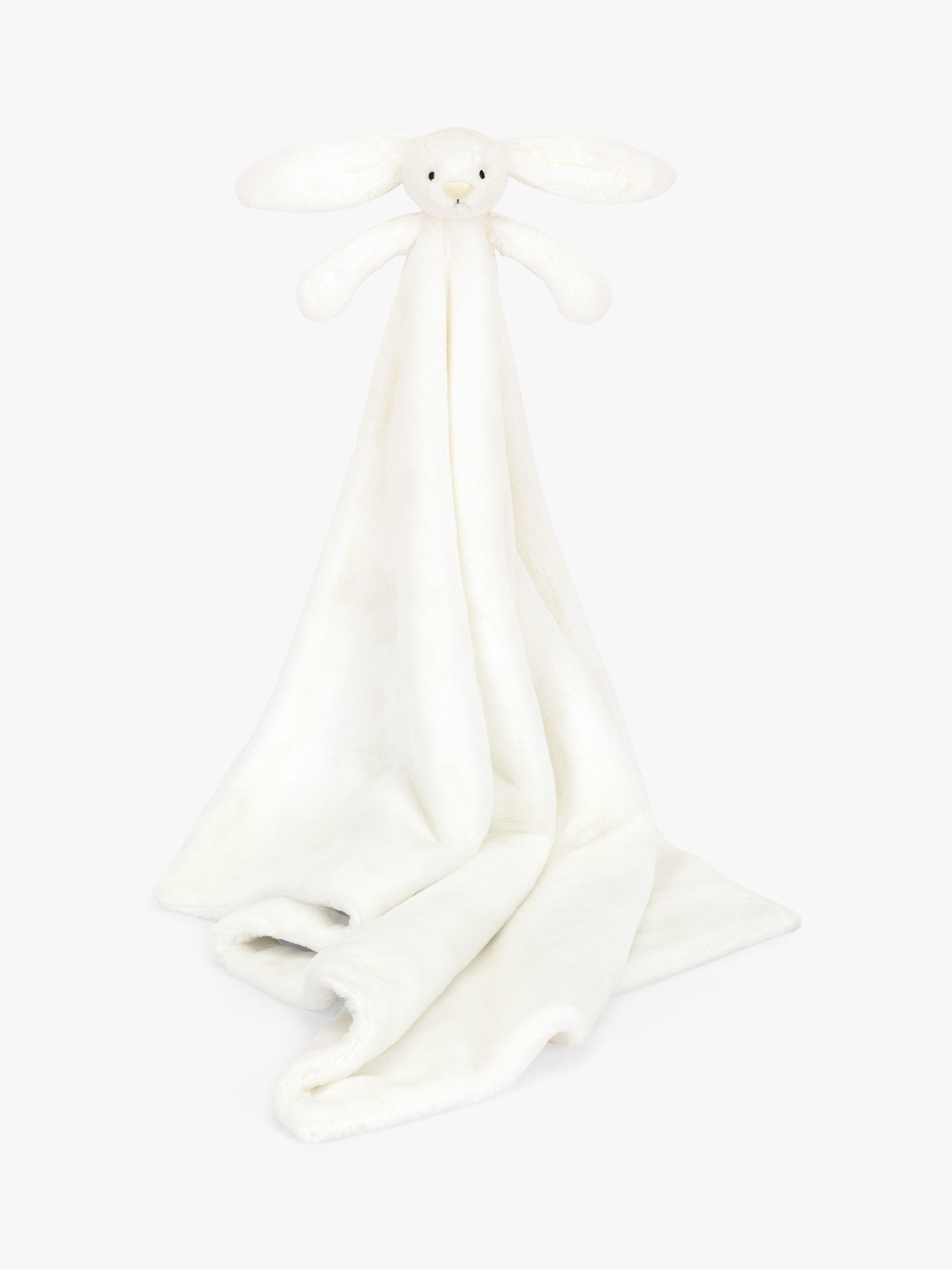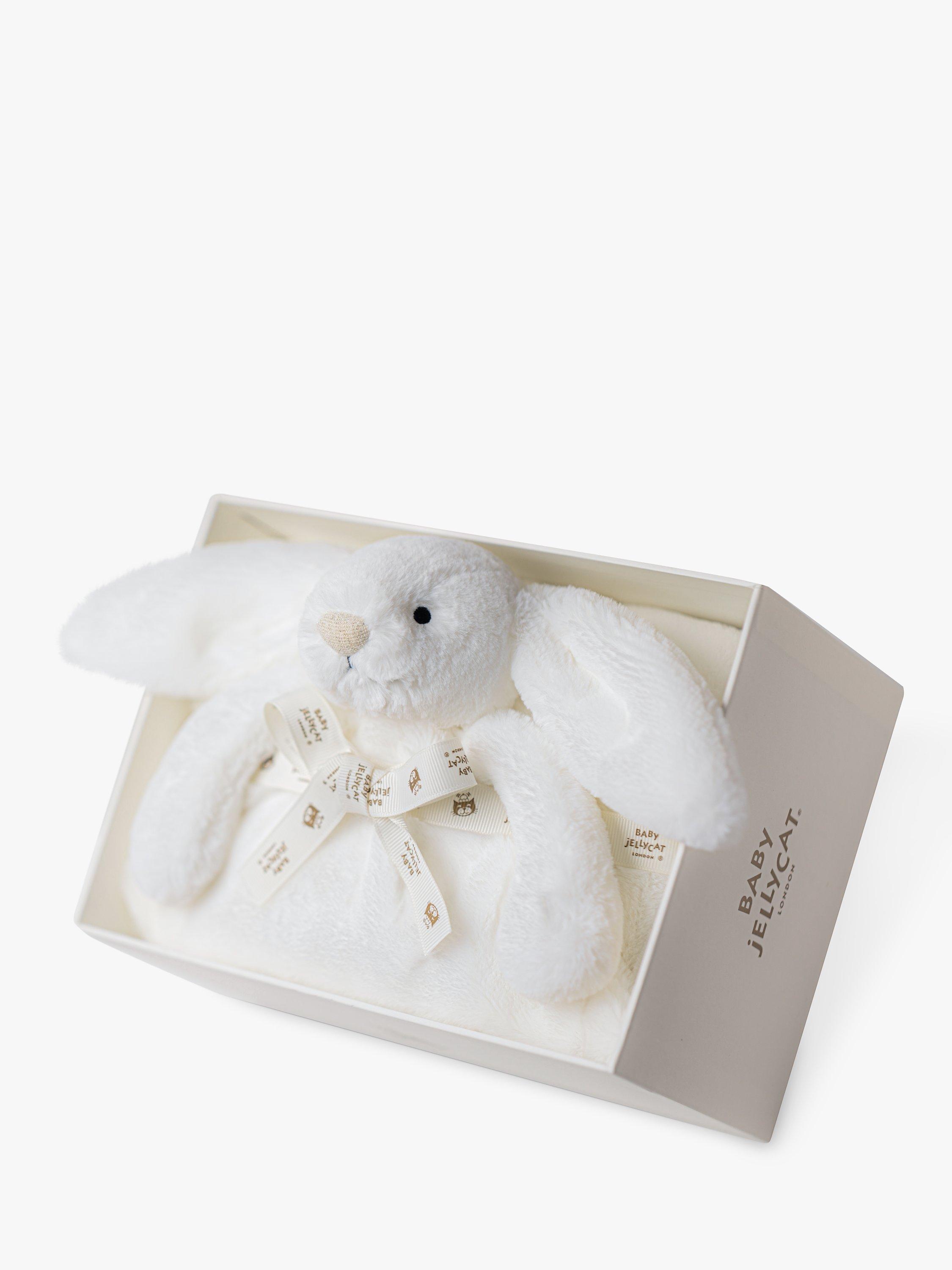 Bashful Luxe Bunny Luna Blankie is a gorgeous large blanket with a bunny head and arms in luxuriously soft white fur. A soft spot for baby's resting or for tummy time, this blankie is tied with a grosgrain printed ribbon and presented in an elegant Jellycat gift box with a gift card and envelope. A gorgeous gift for a new arrival. Machine washable for easy cleaning.
