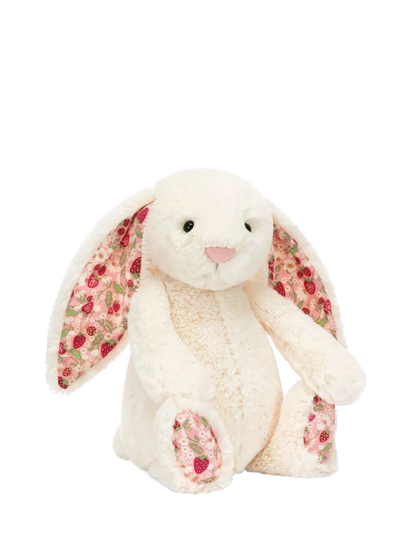Blossom Bunny Berry is all berries and cream in iconic Bashful fur. With a pink suedette nose, this bunny has soft cotton floral ears and feet printed with an original Jellycat design.