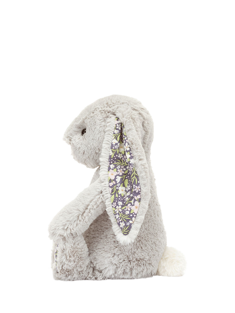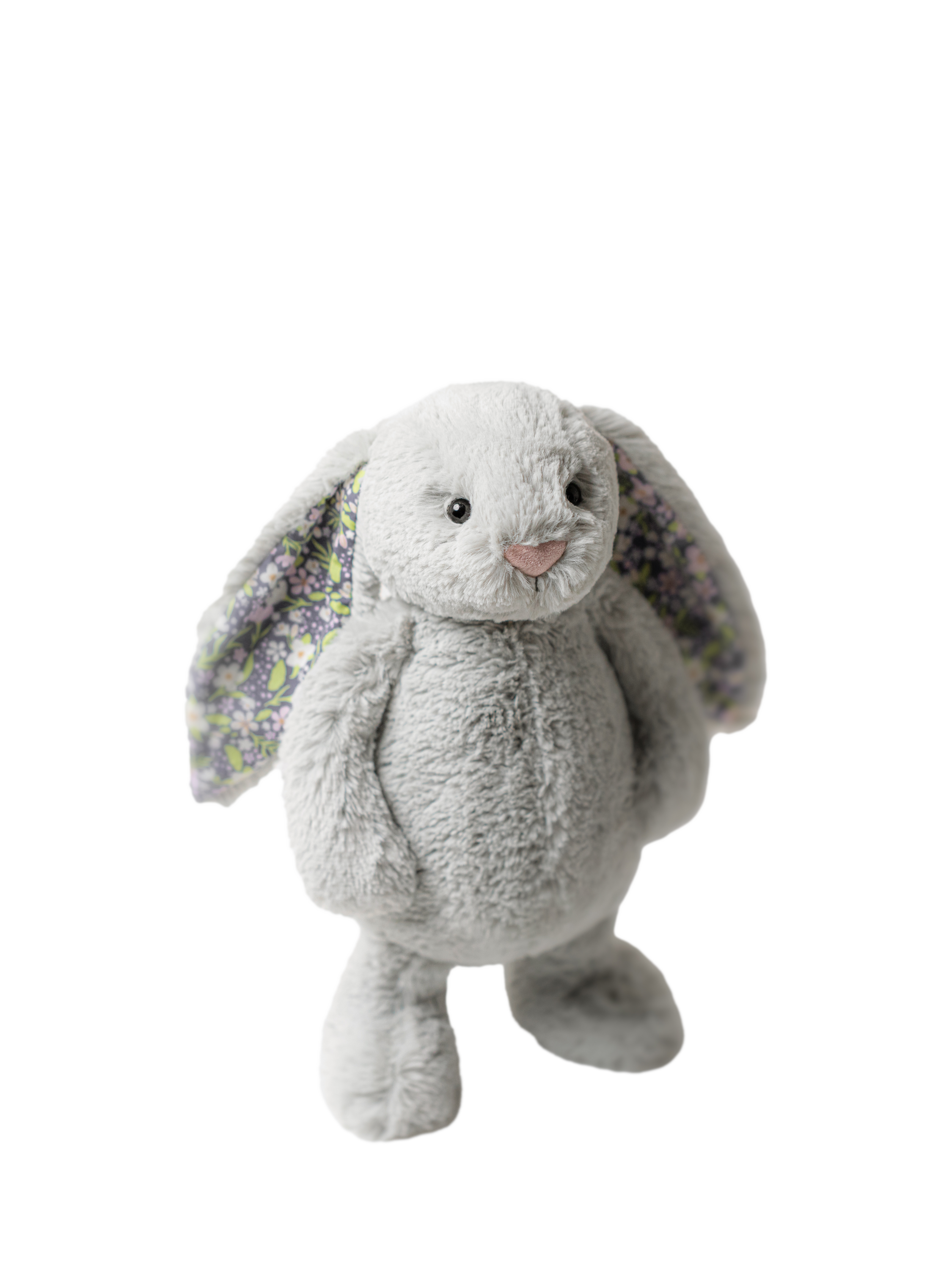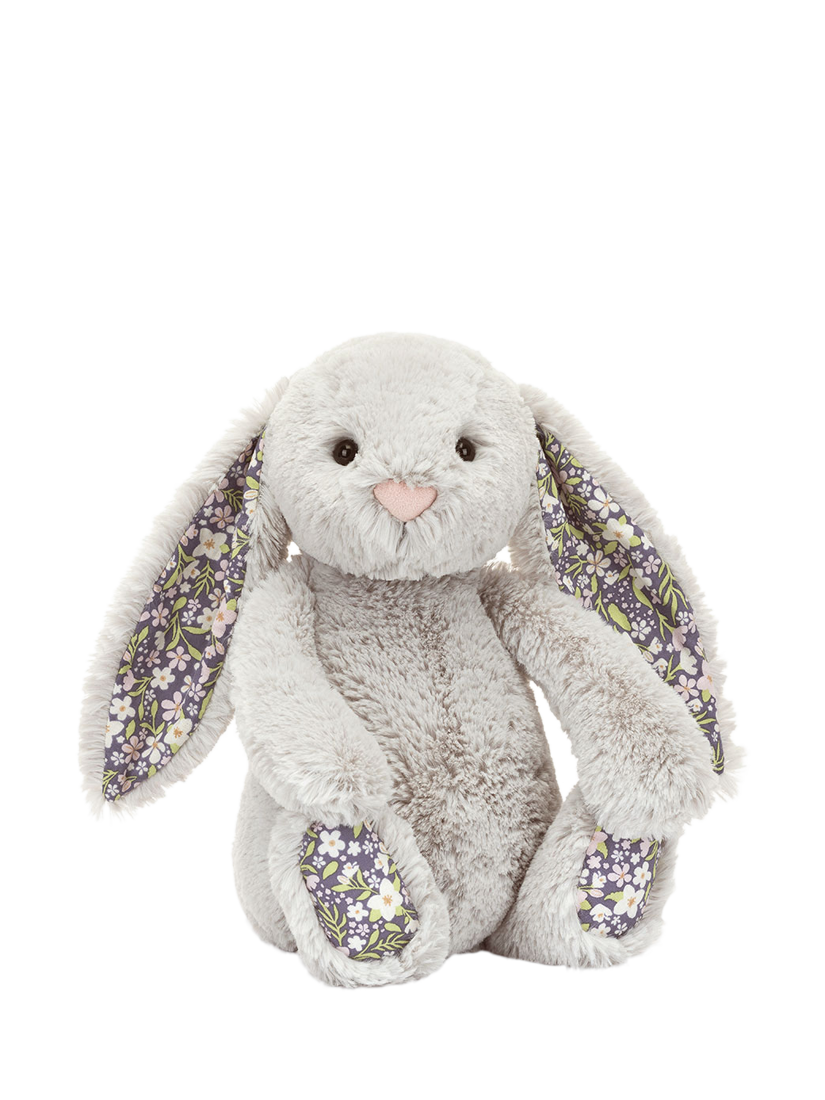 Blossom Bunny Bloom is a floral favourite! The iconic Bashful Bunny has soft fur with a cream bobtail. With a pink suedette nose, this bunny has soft cotton floral ears and feet printed with an original Jellycat design.
