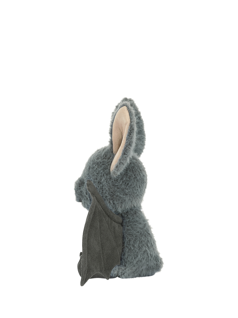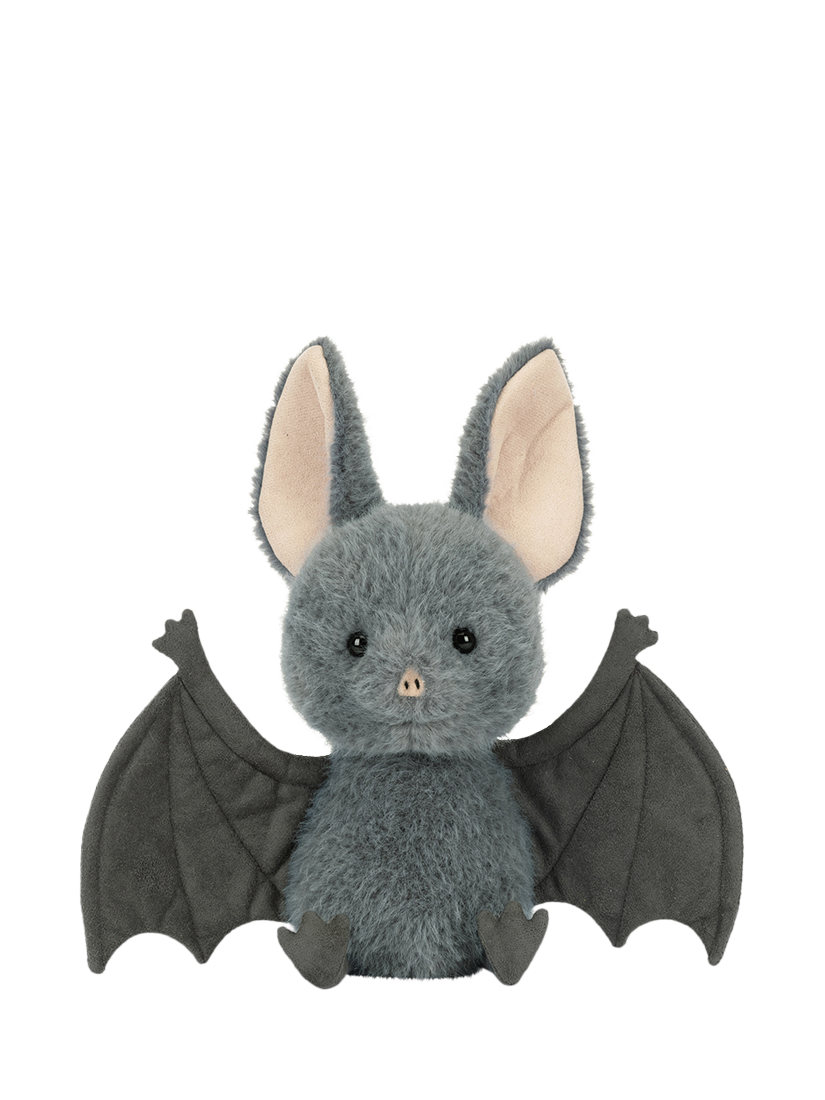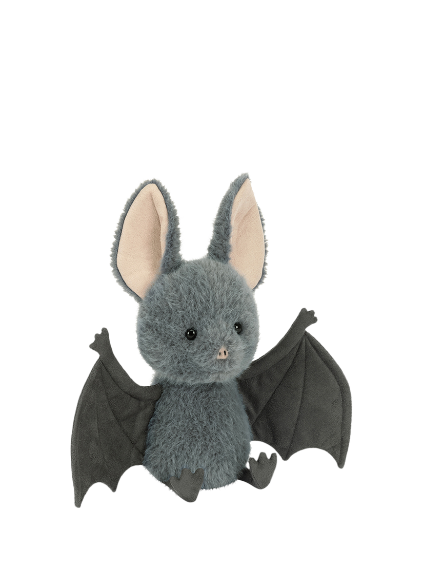 Broox Bat is swooping in for cuddles this spooky season. Super soft in blue-grey fur with charcoal suedette wings with stitched detail, Broox has a tiny suedette snout and matching big ears - all the better to hear incoming trick or treaters!