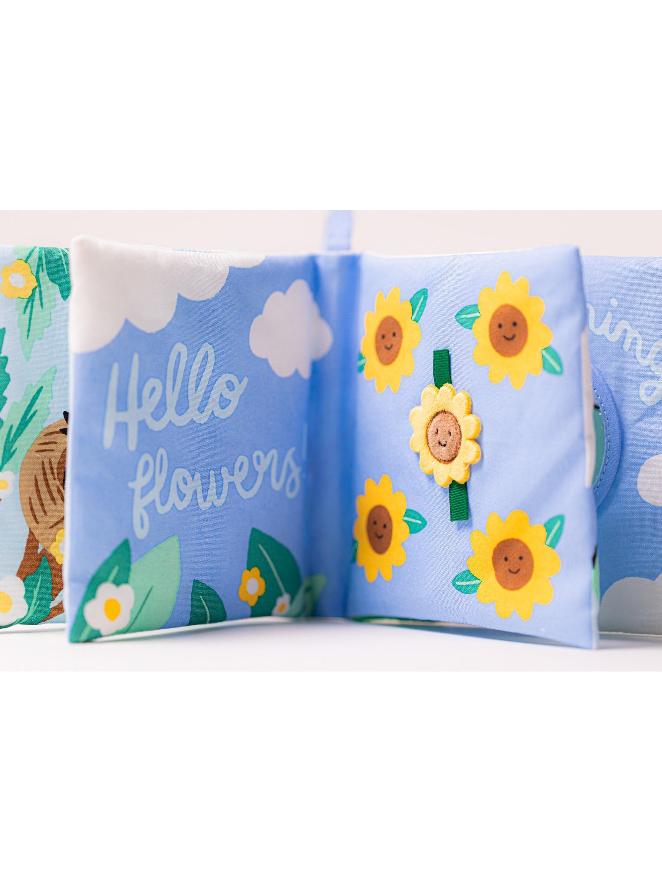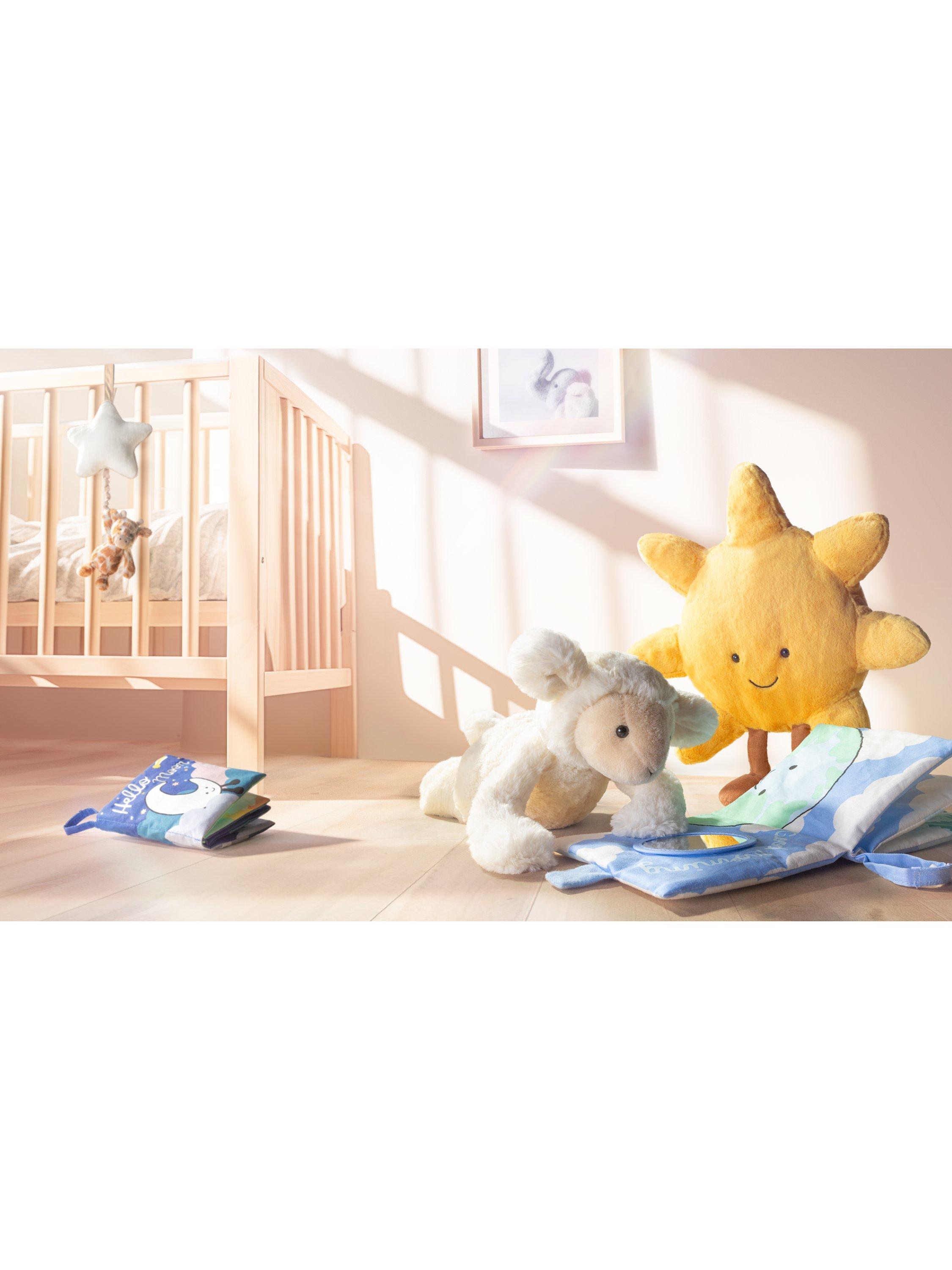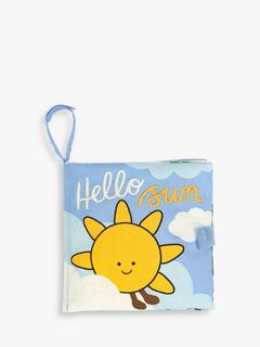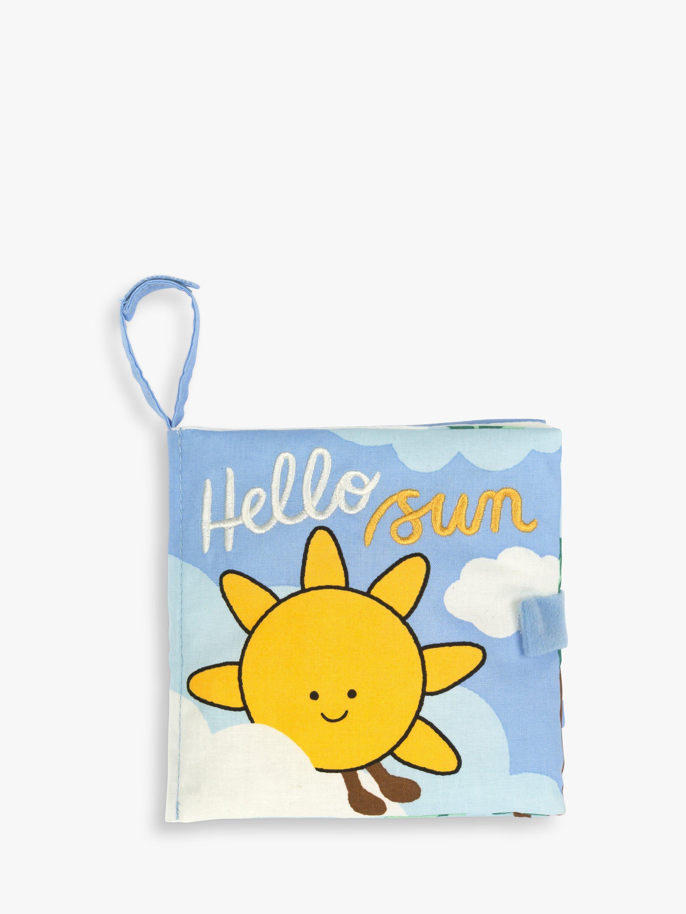 Hello Sun, it's morning time! Wake up your little one with this bright and bold cloth book from Jellycat, perfect for little hands. Babies will love exploring the sky with sensory crinkle sounds and a mirror at the end to say good morning.