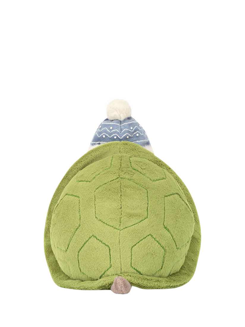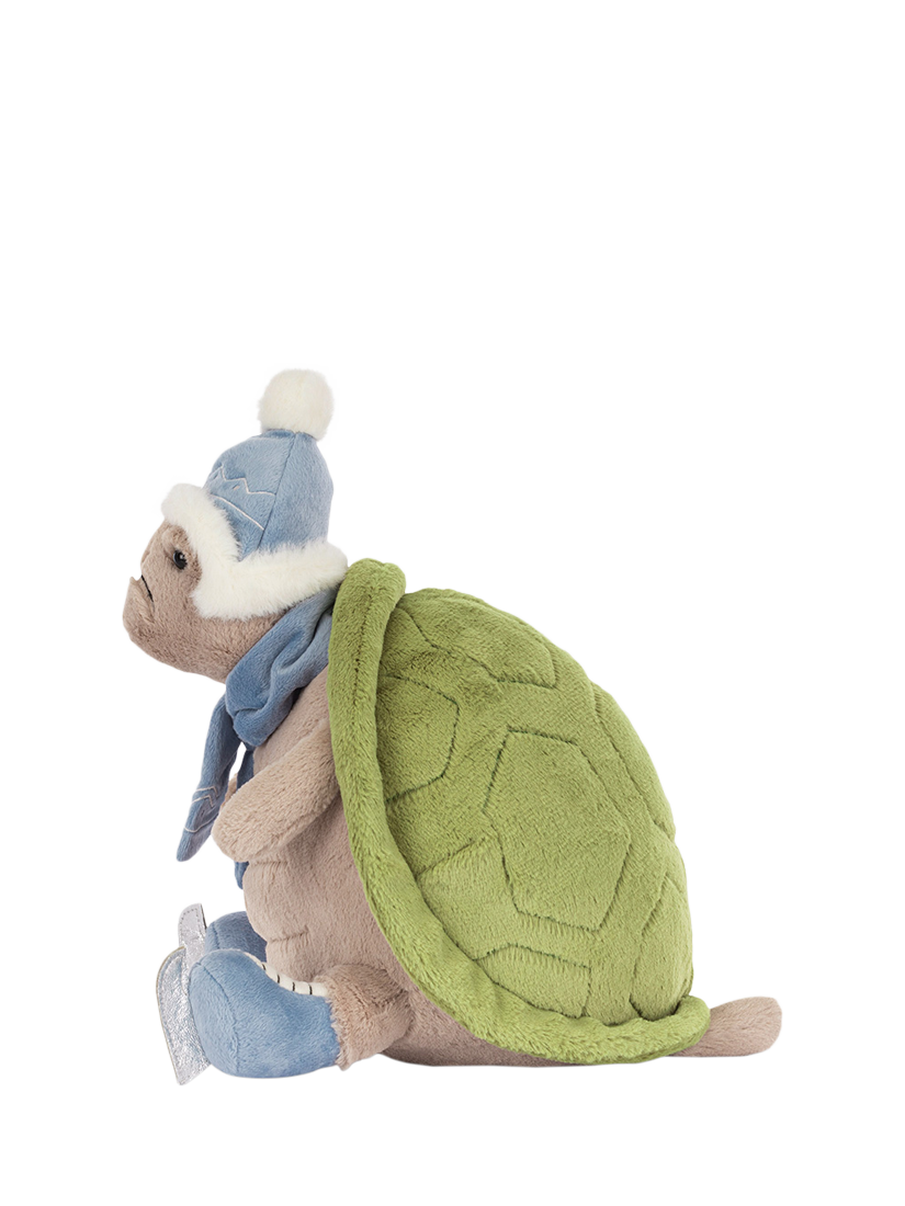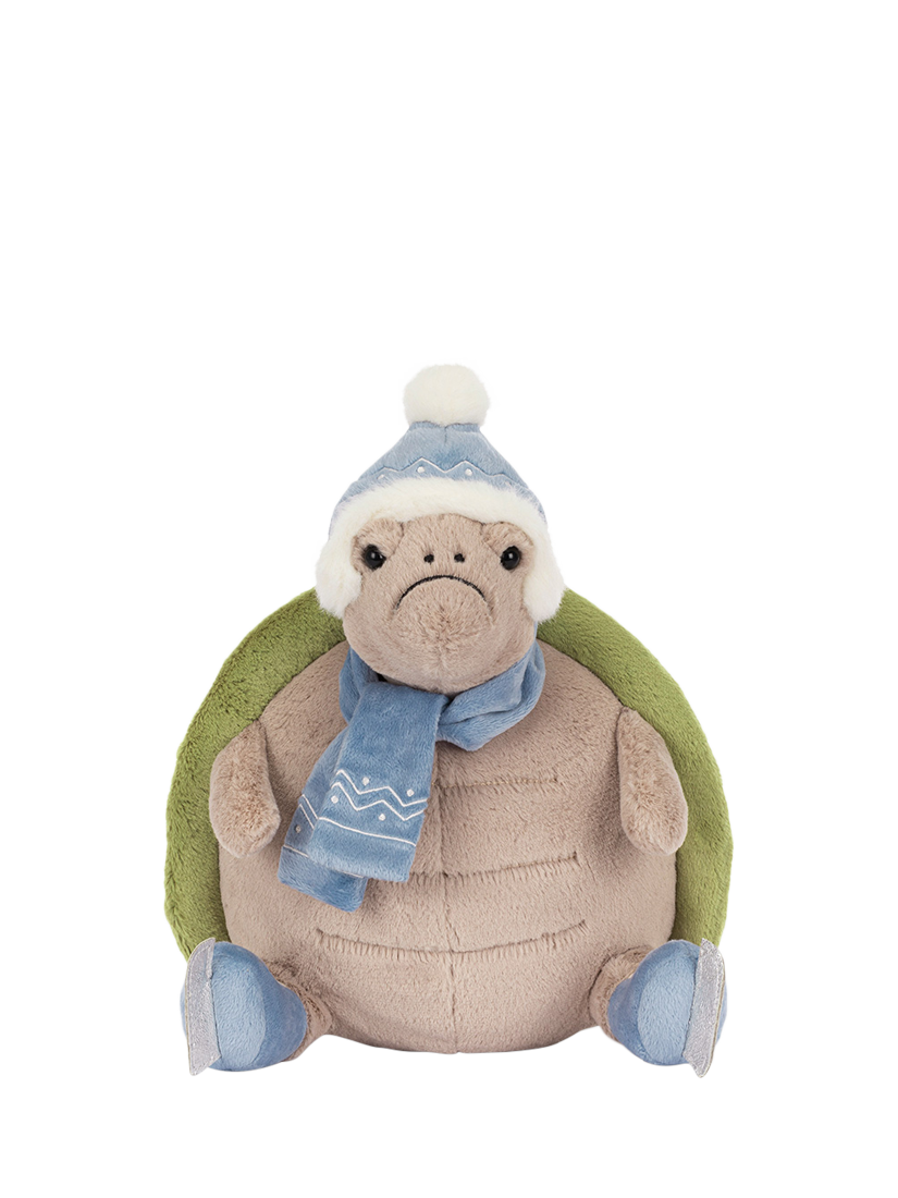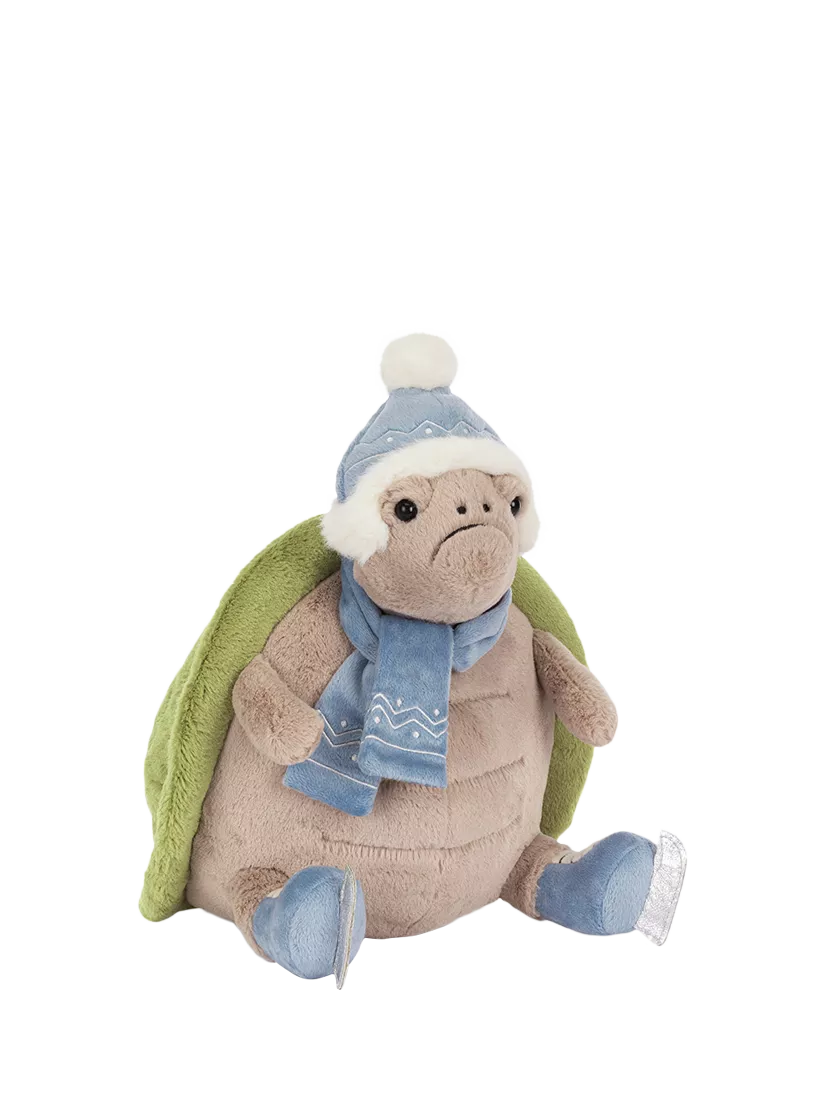 Jellycat's favourite grumpy turtle is winter ready in a winter blue scarf and matching fluffy lined bobble hat with cream embroidery. Donning a pair of matching blue skates with silvery-grey blades, Timmy is ready to try something new this winter.