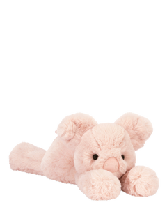 Smudge Pig is the superstar of the stye in super soft pink fur. With folded ears and a suedette curly tail and snout with embroidered detail, this little piggy has long limbs and a soft tum to flop in your arms.