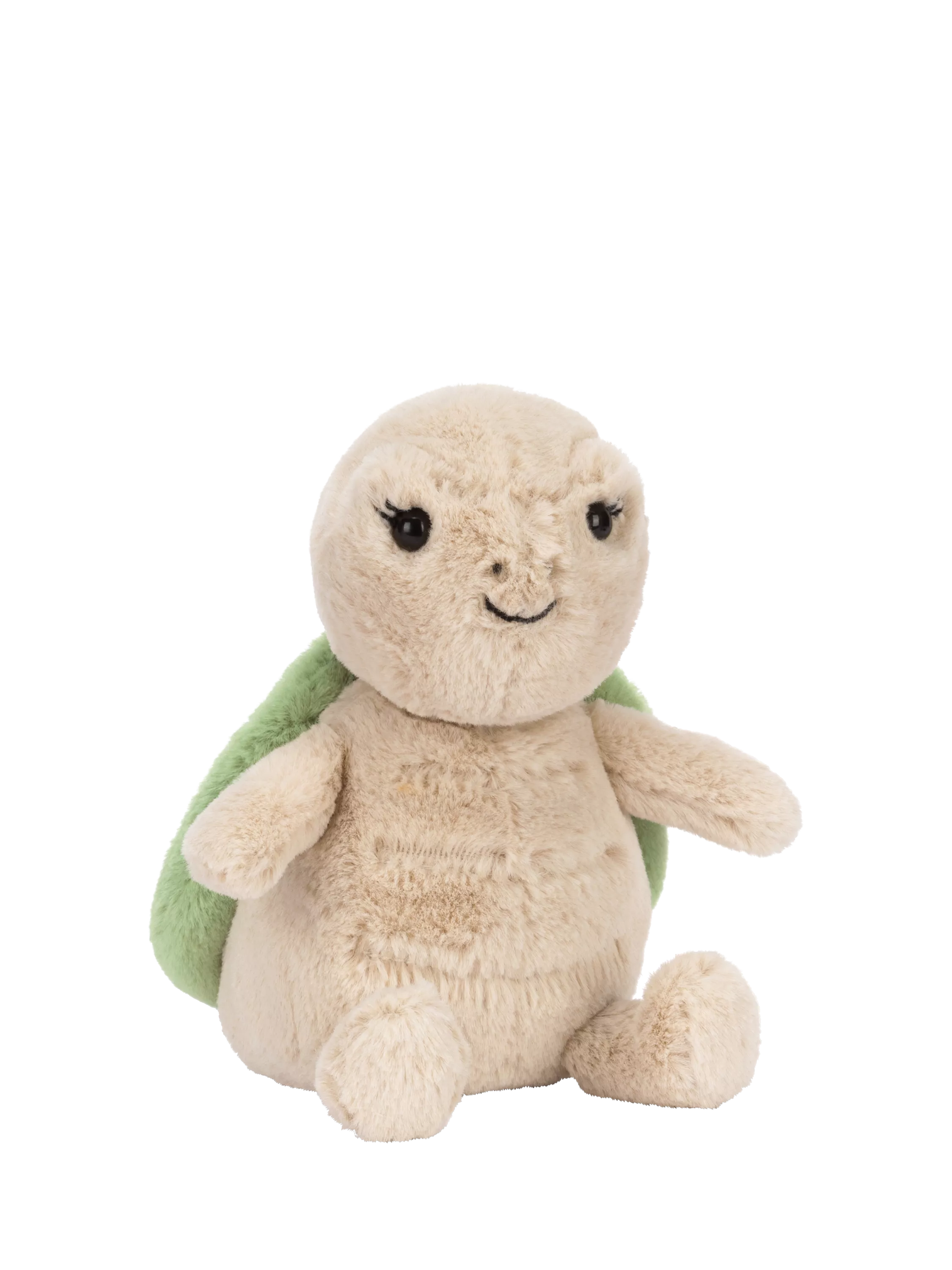 Timmy Turtle’s little sister is short and sweet in soft beige fur with the sage green shell with stitched segments that runs in the family. With embroidered eyelashes and an impish stitched smile, Thimble is the adventurous one of the family.