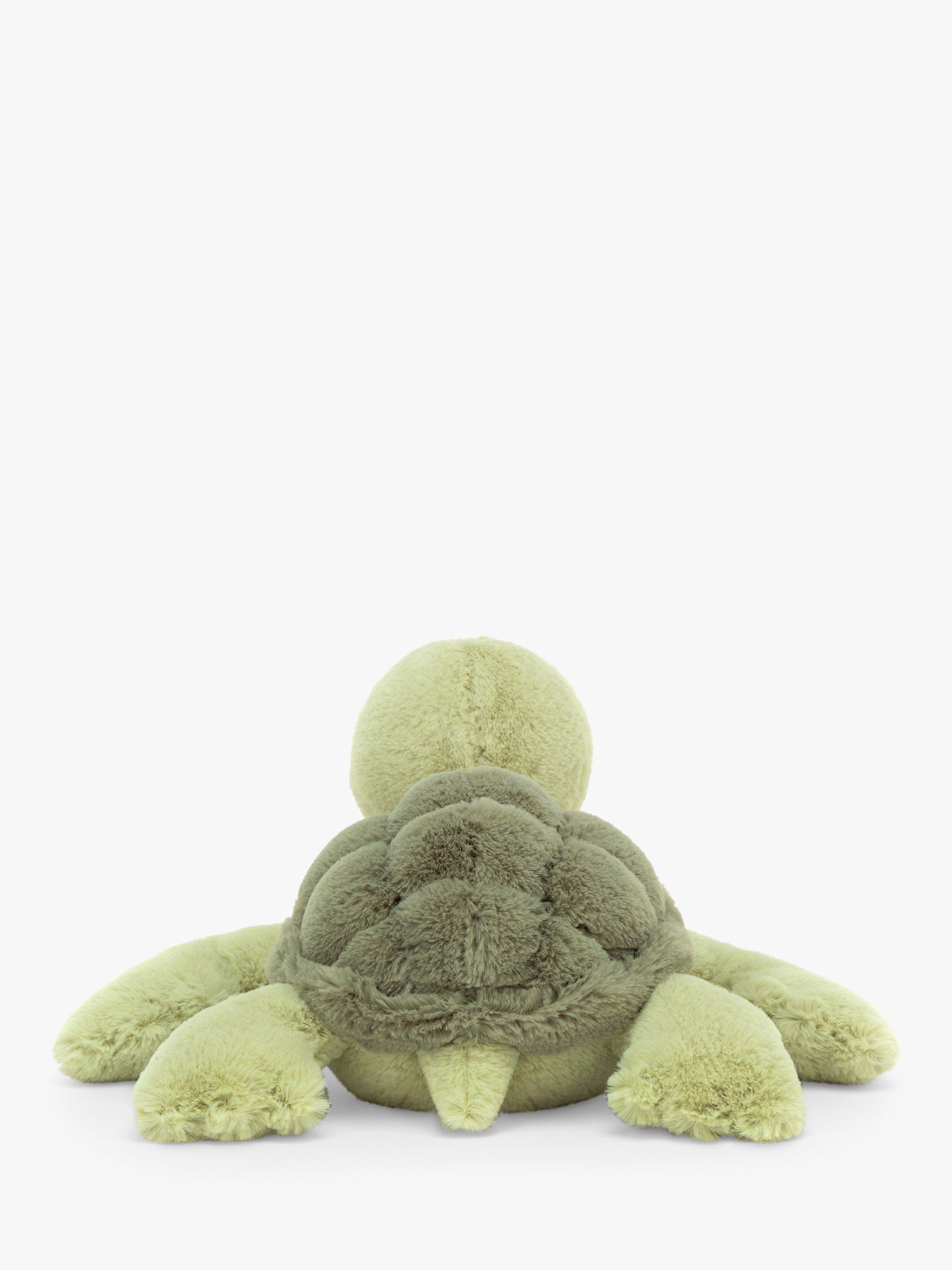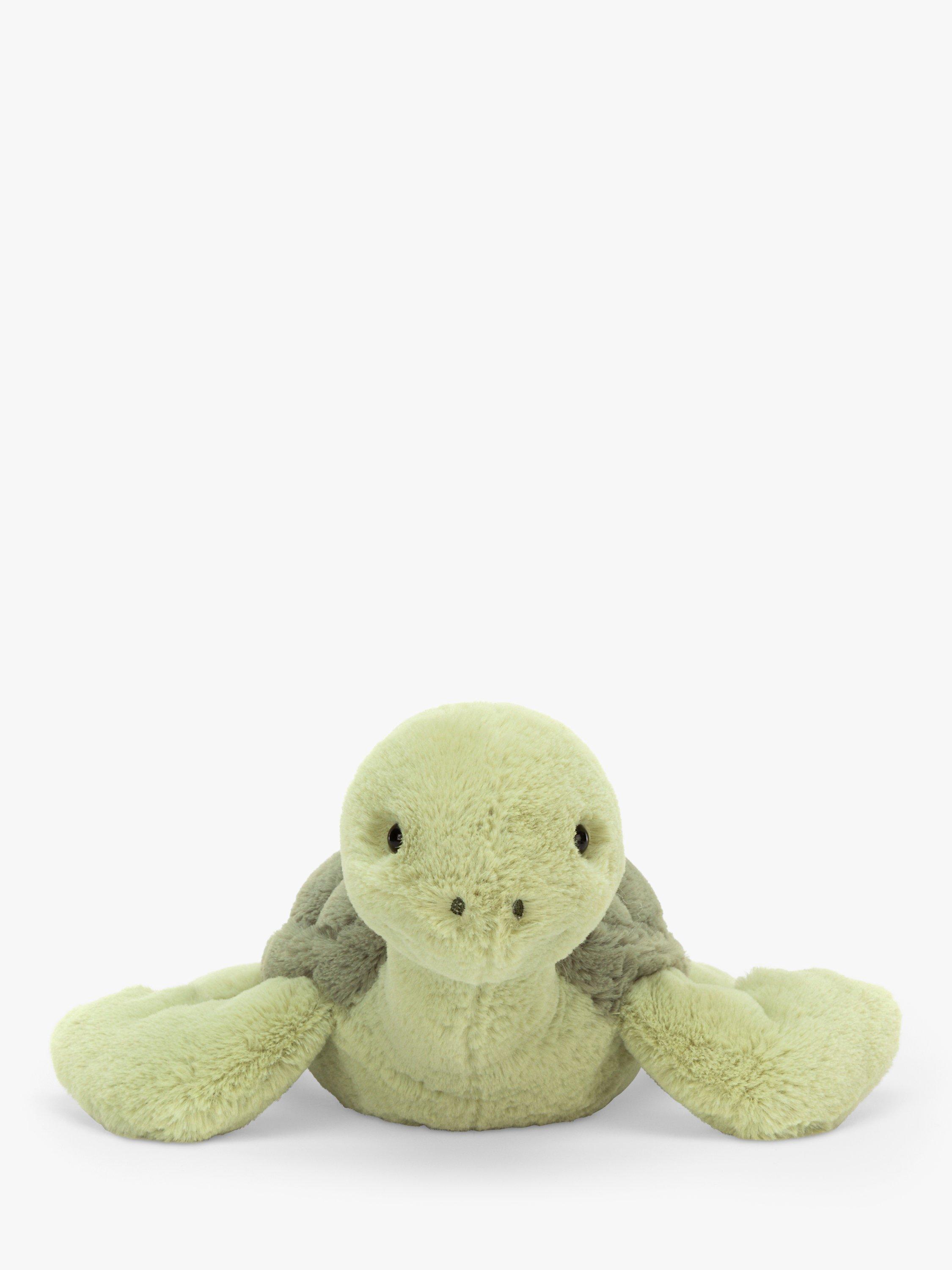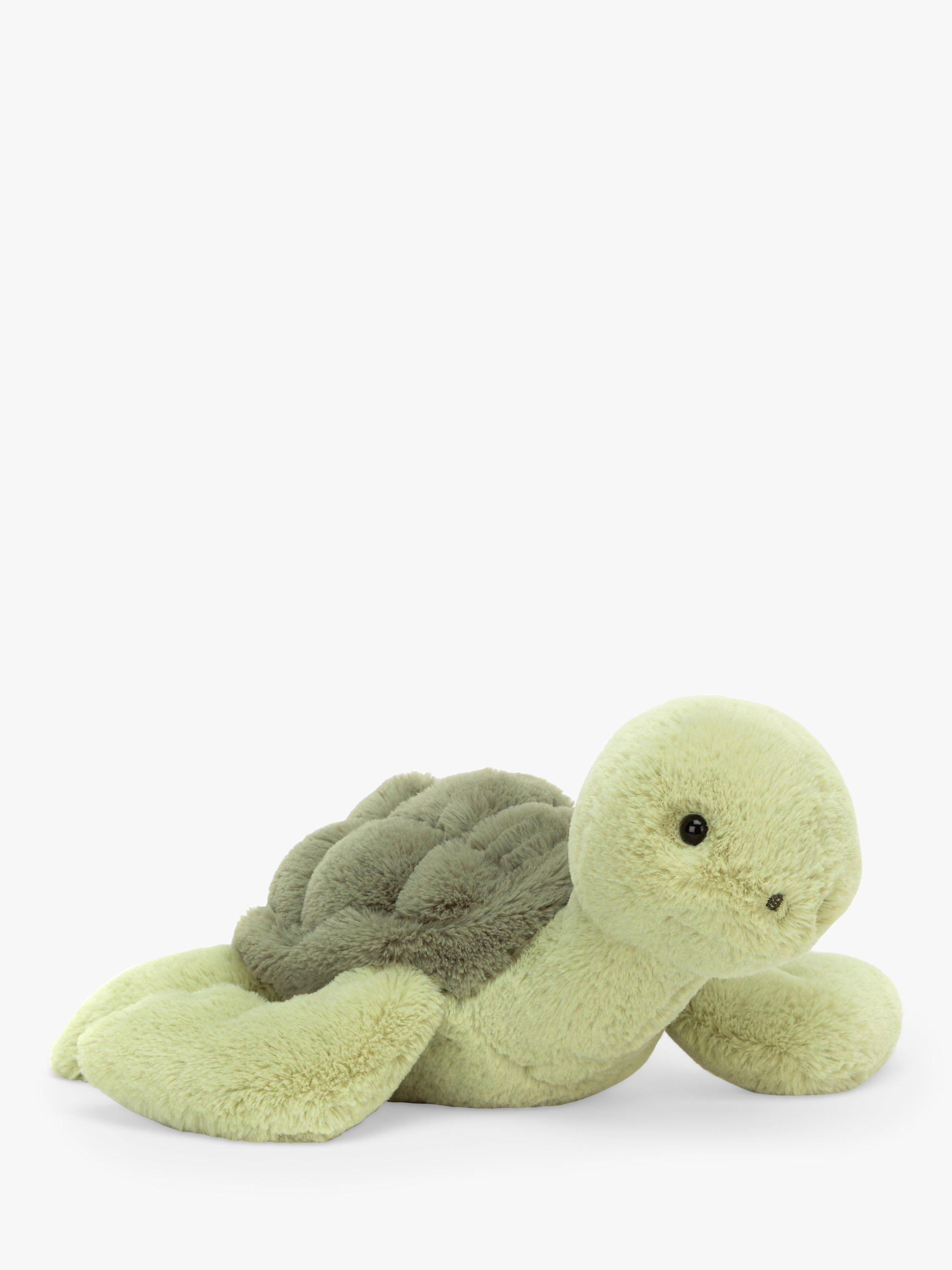 Take a dive into the ocean with Tully Turtle! This squishy hatchling has long flippers for swimming and hugging and a soft dark green shell with stitchy detail. Surfs up!