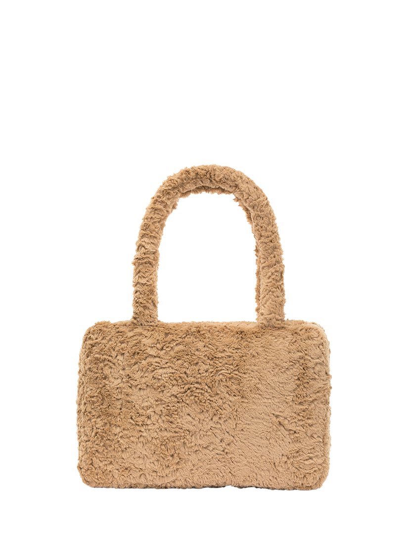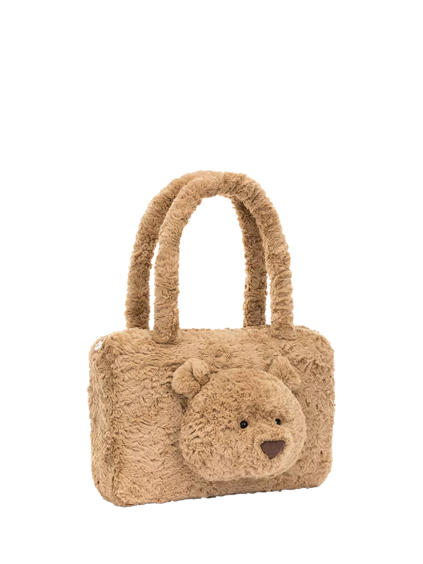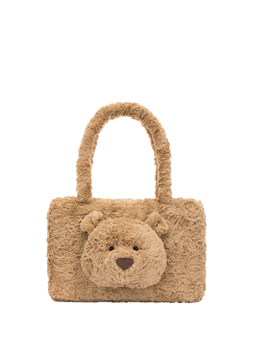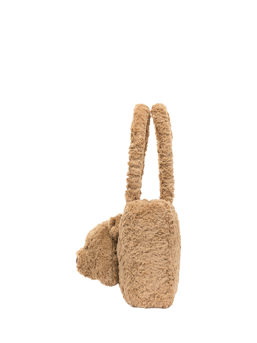 Bring a bear to work with the Bartholomew Bear tote. In super soft textured toffee fur, this bag features Bartholomew Bear's adorable face and long handles in matching fur.