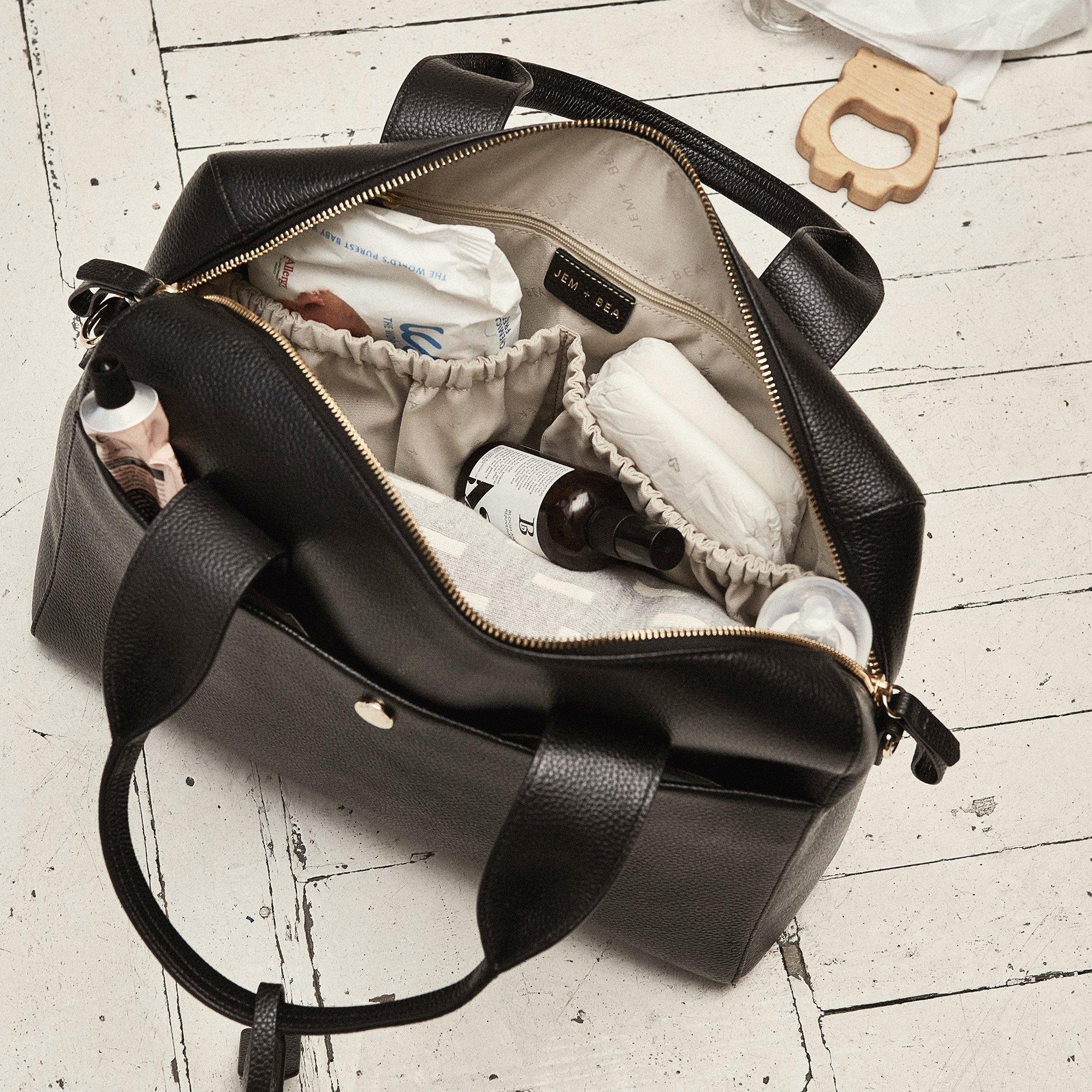 This stylish cross body bowling changing bag from Jem + Bea features five interior pockets and two exterior slip pockets, including hidden phone pocket.