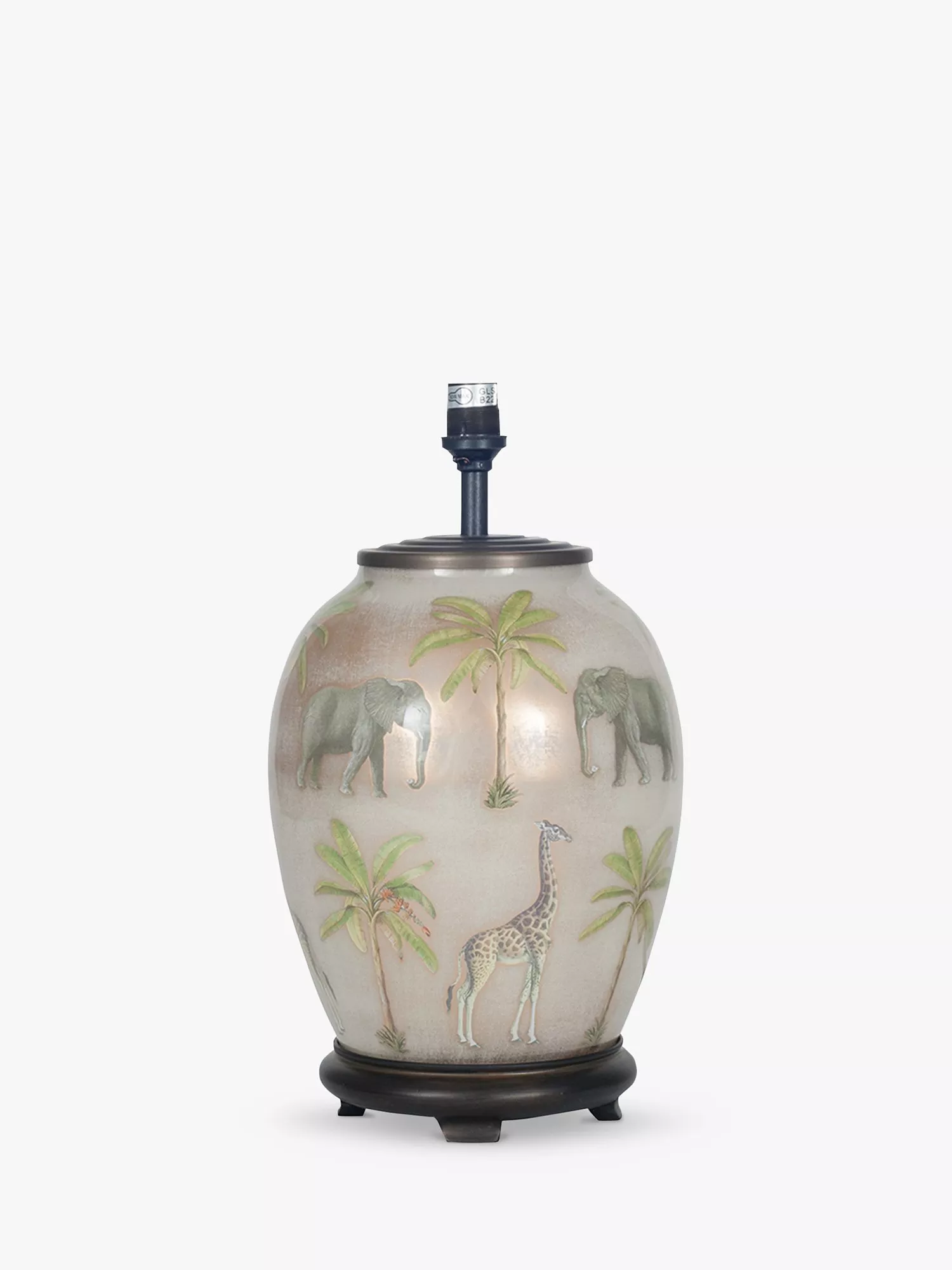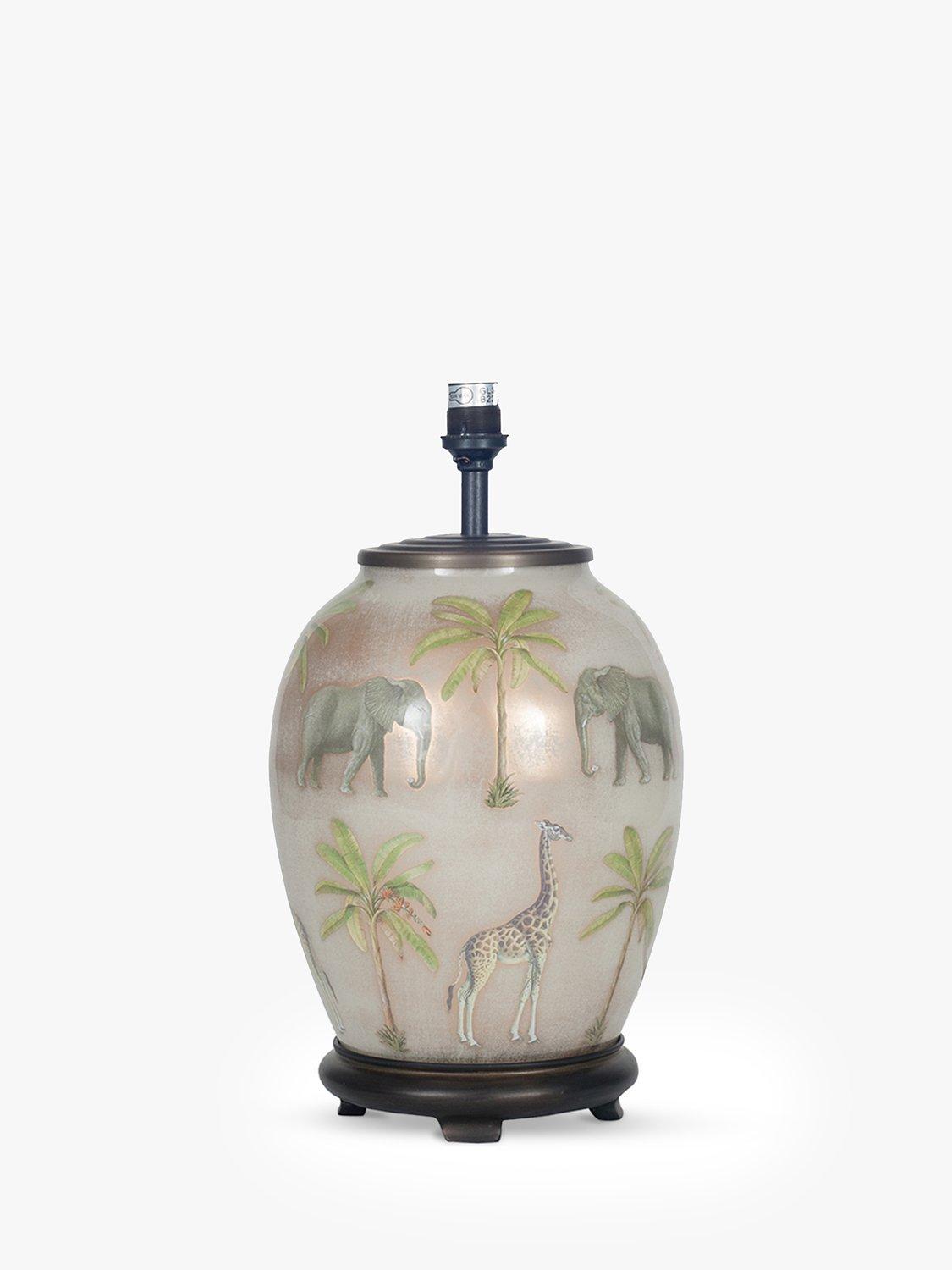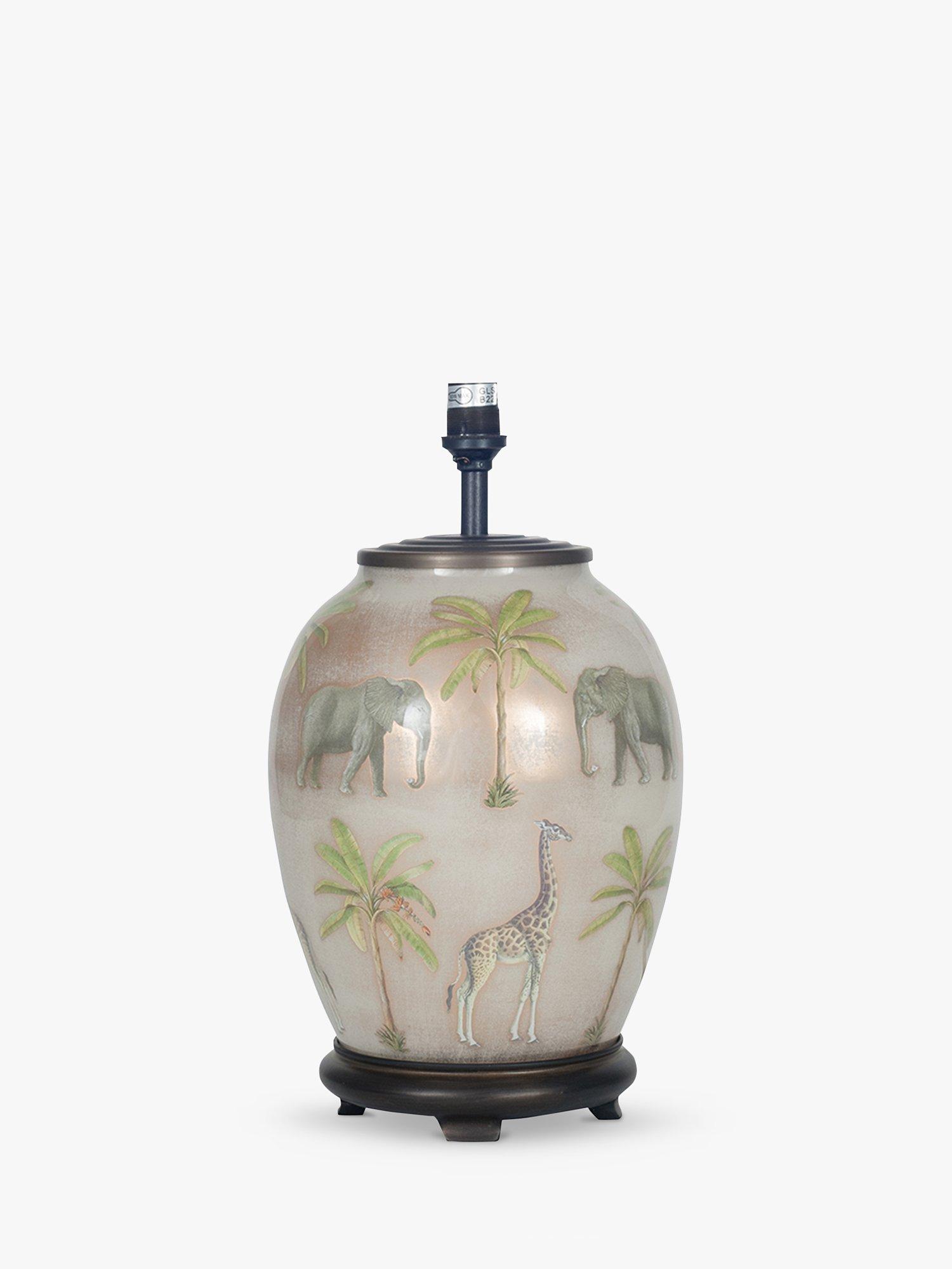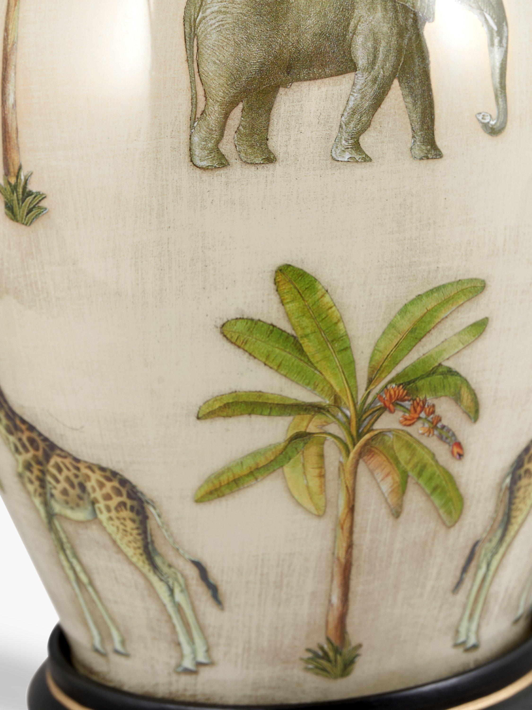 Skillfully made from hand-blown glass and decorated like a piece of art with animals you'll find on safari, this lamp base will catch the eye in your space. It's accented with resin and metal detail and we recommend a lampshade that's diameter: 35cm and above.
