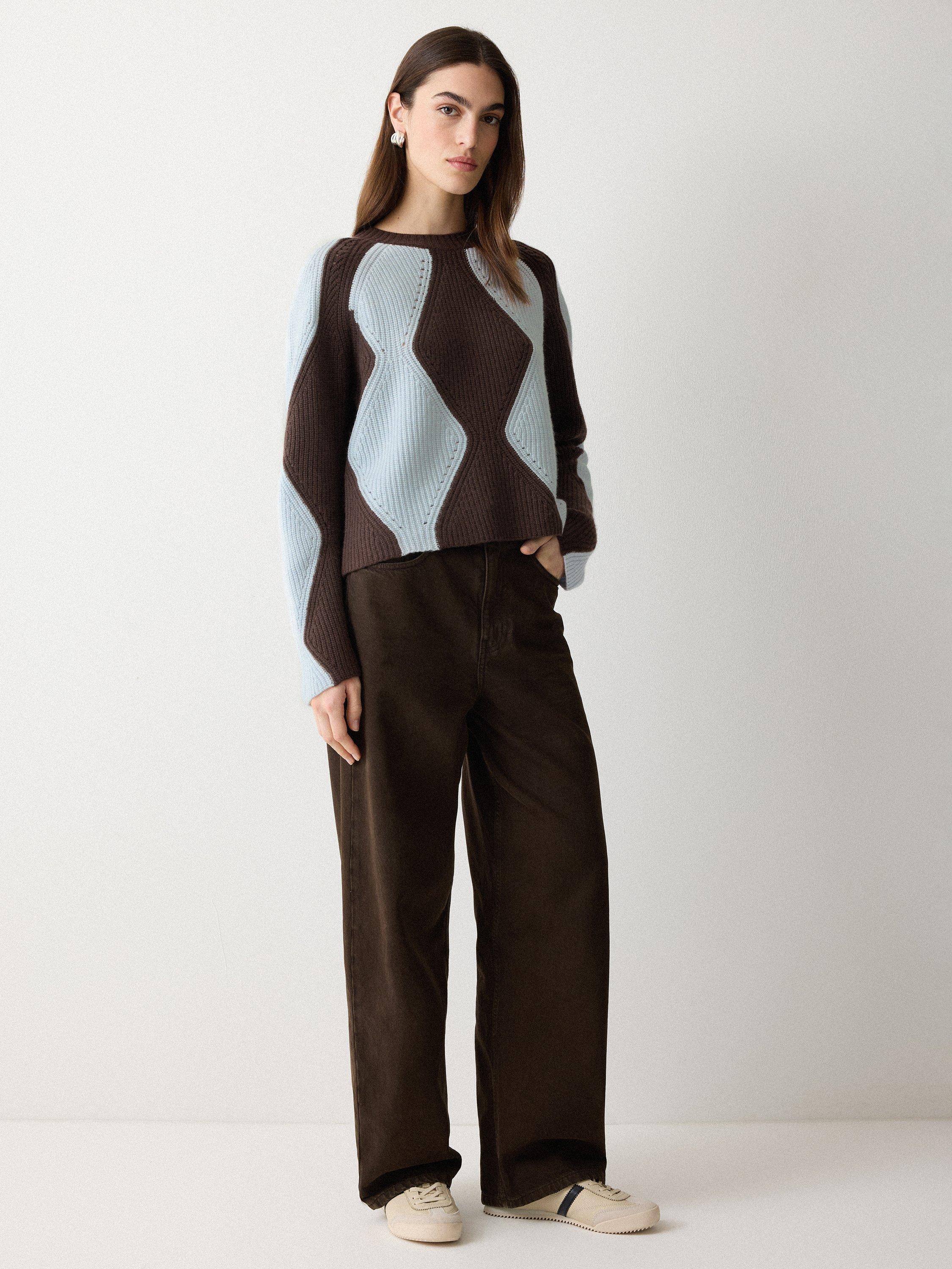 A modern take on the classic Argyle pattern, this chunky knit jumper is the perfect layering staple. Pair with anything from denim to tonal trousers for a cohesive feel.