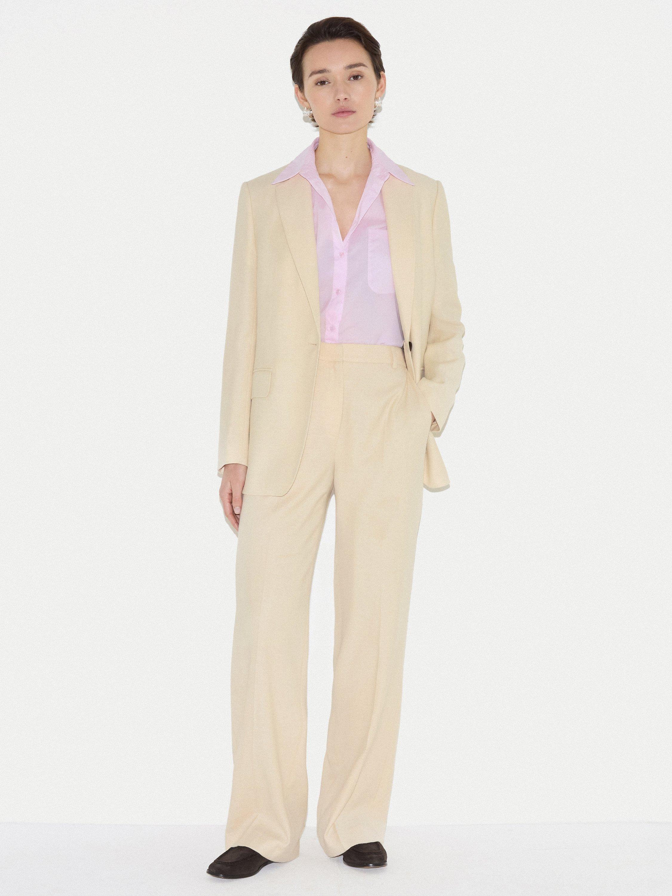 Meticulously tailored for a clean, straight-leg silhouette, the Barker Trouser is a masterclass in refined simplicity. Cut from a premium, structured fabric that holds its shape beautifully, these trousers offer both comfort and polish for all-day wear. An indispensable wardrobe foundation, they transition effortlessly from the office, paired with a blazer, to relaxed weekend brunches with a simple knit.