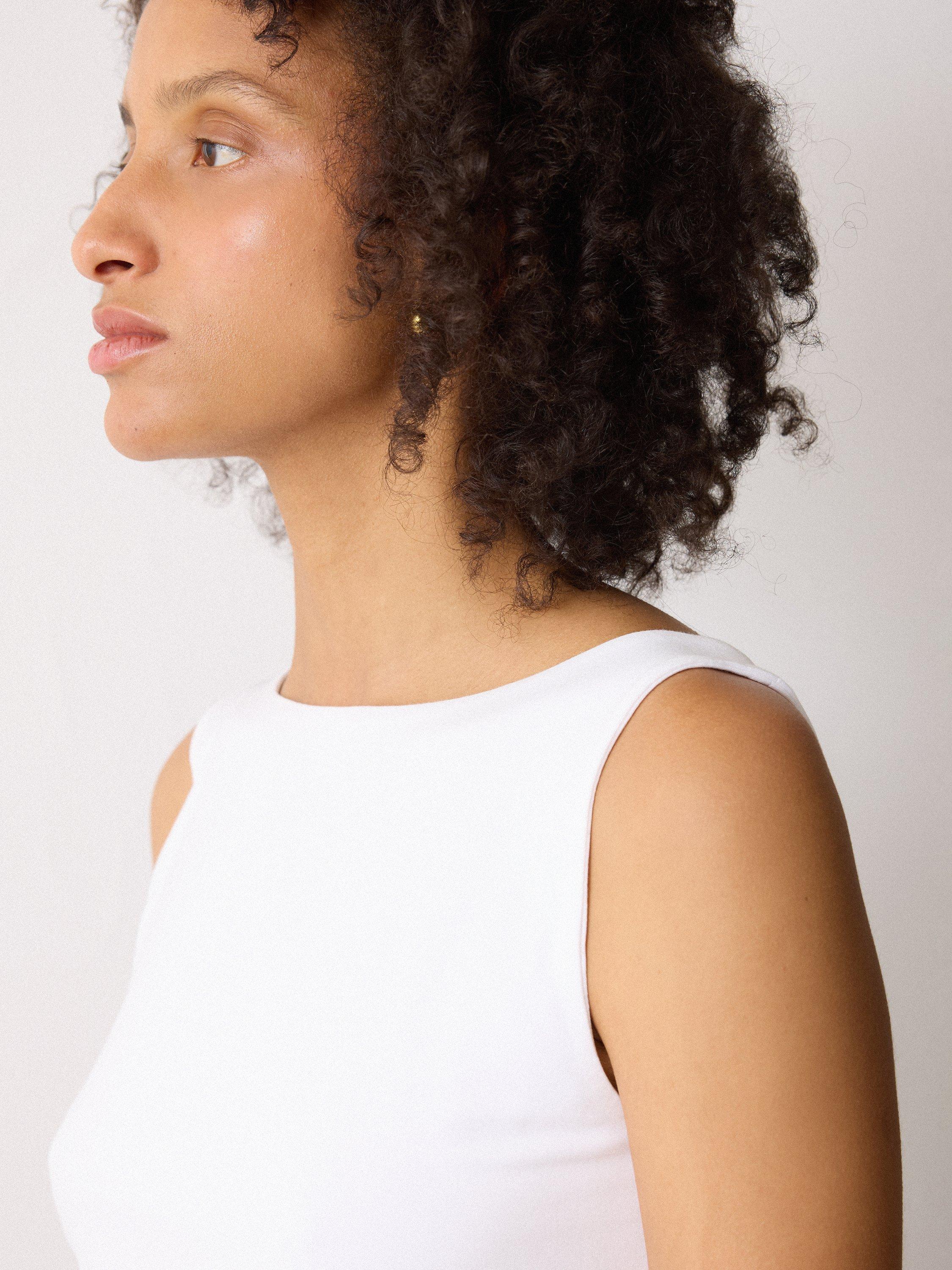This vest's clean, boat neckline lends itself to simplistic daytime looks with a hint of elegance. Crafted from super-soft jersey with a comfortable stretch and open square back. We love its endless versatility and layering options.