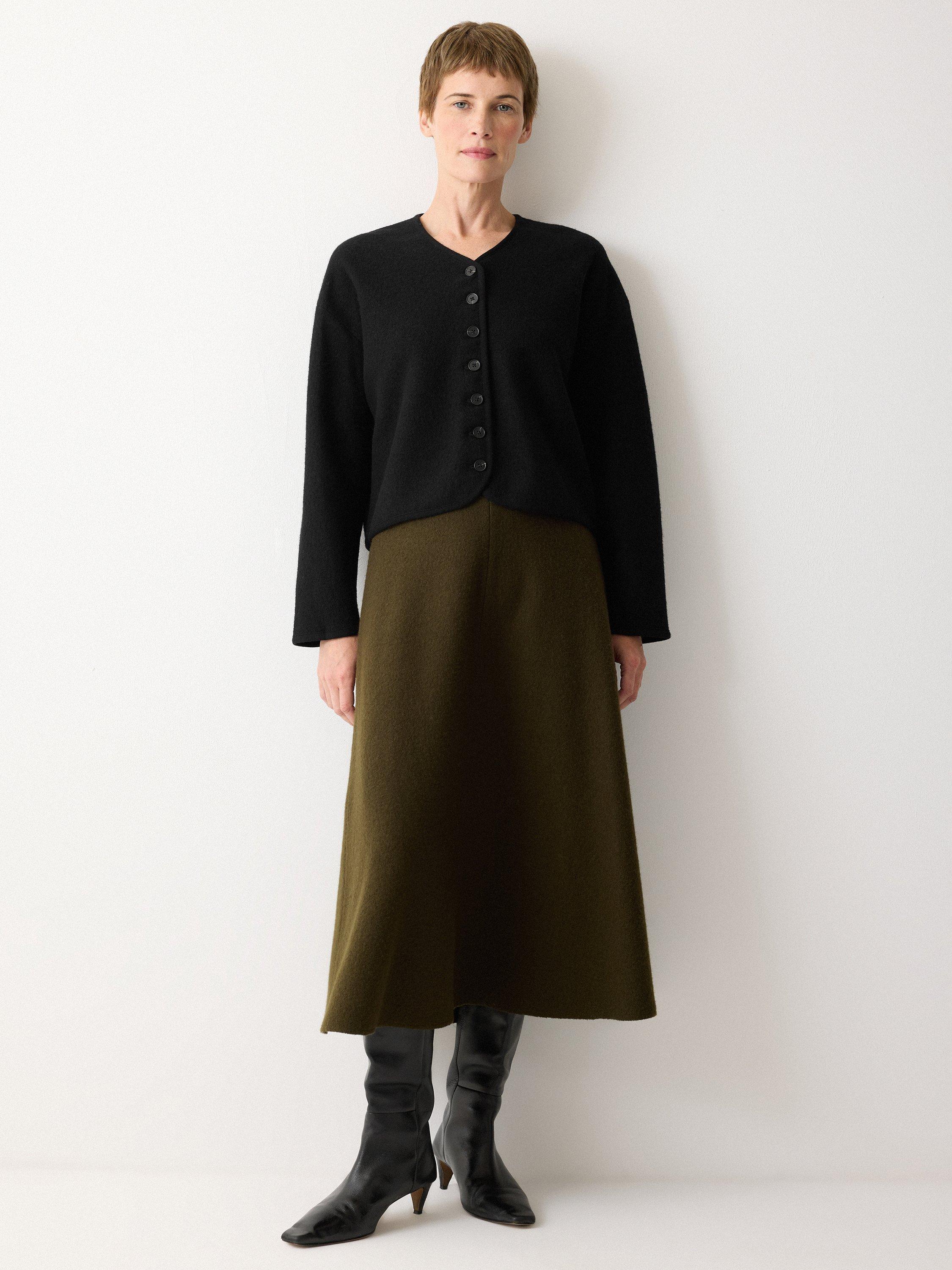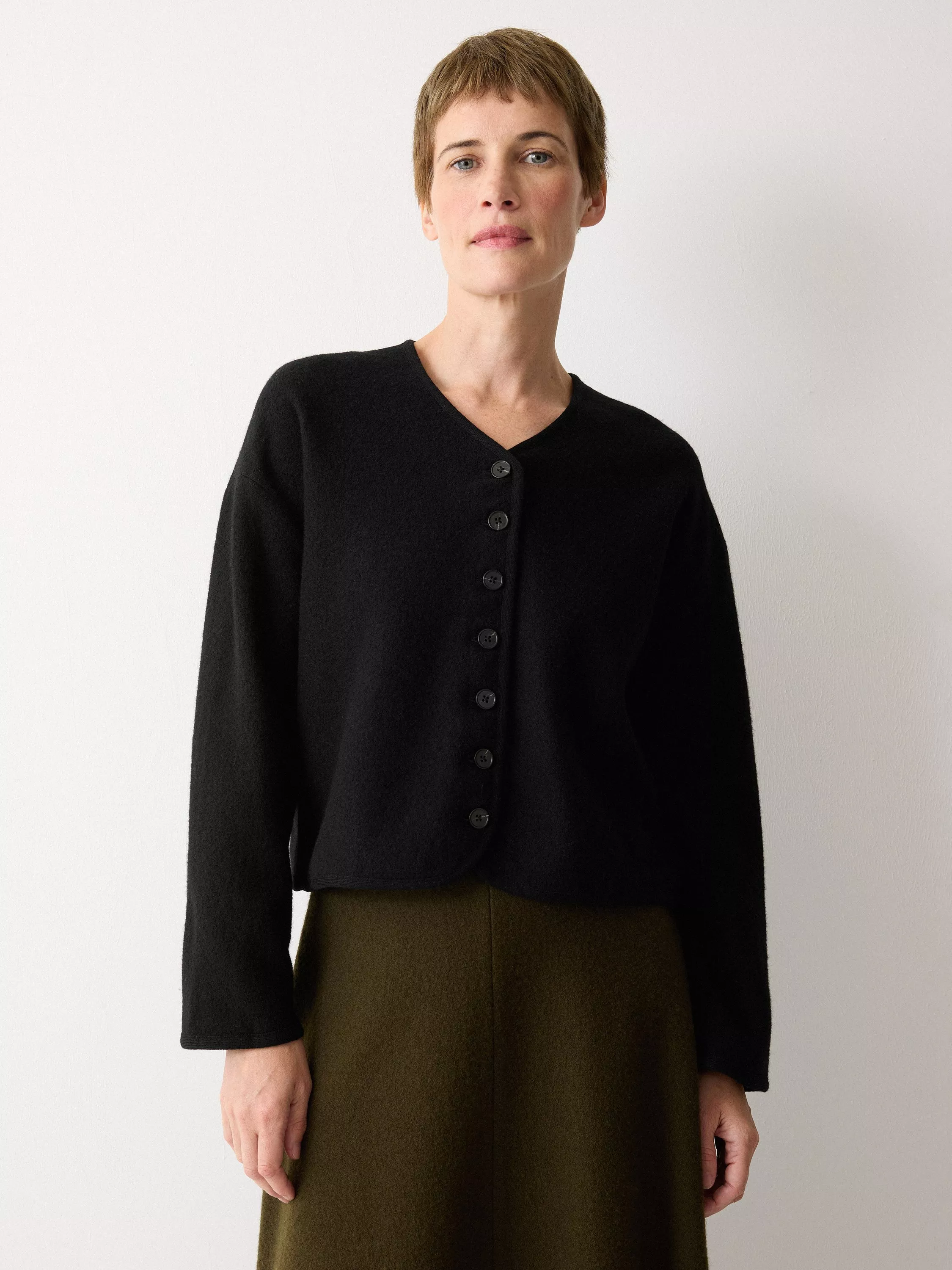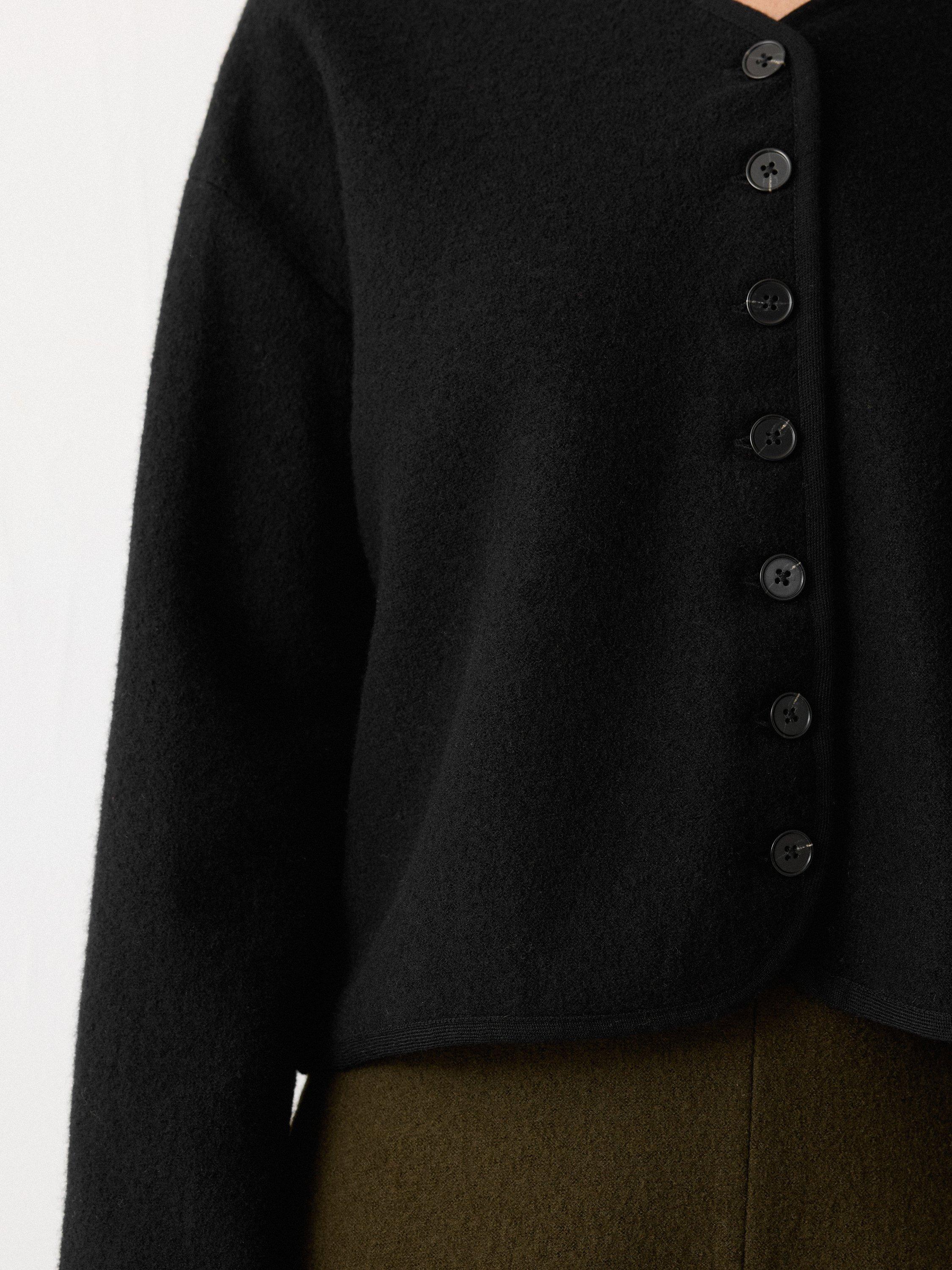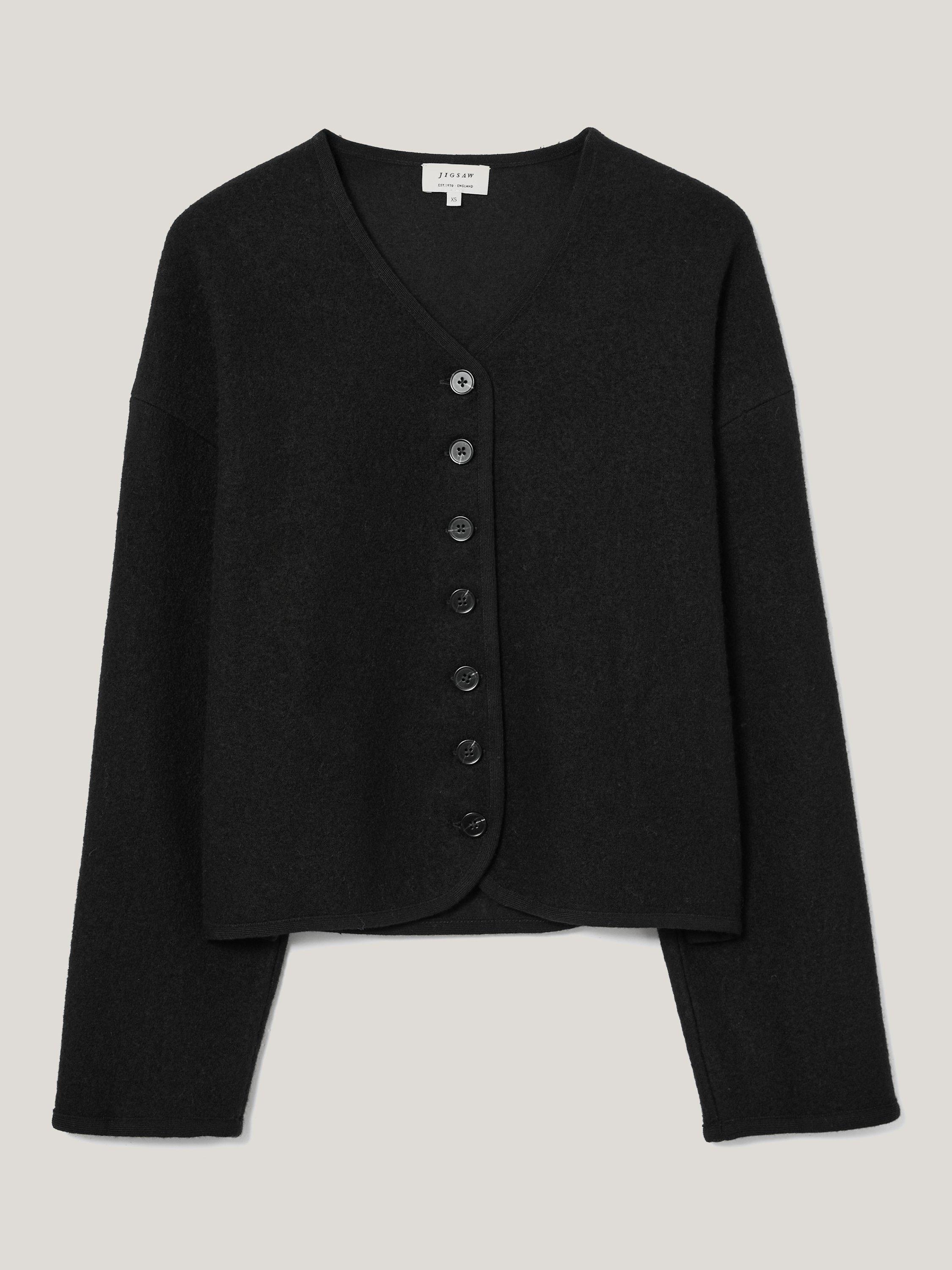 This elegant jacket blends a timeless silhouette with a luxury boiled wool-blend fabrication, which is used to bring structure to this piece. Classic cardigan details mean it works both inside and out over all your ensembles, while the lining adds an extra layer of comfort.