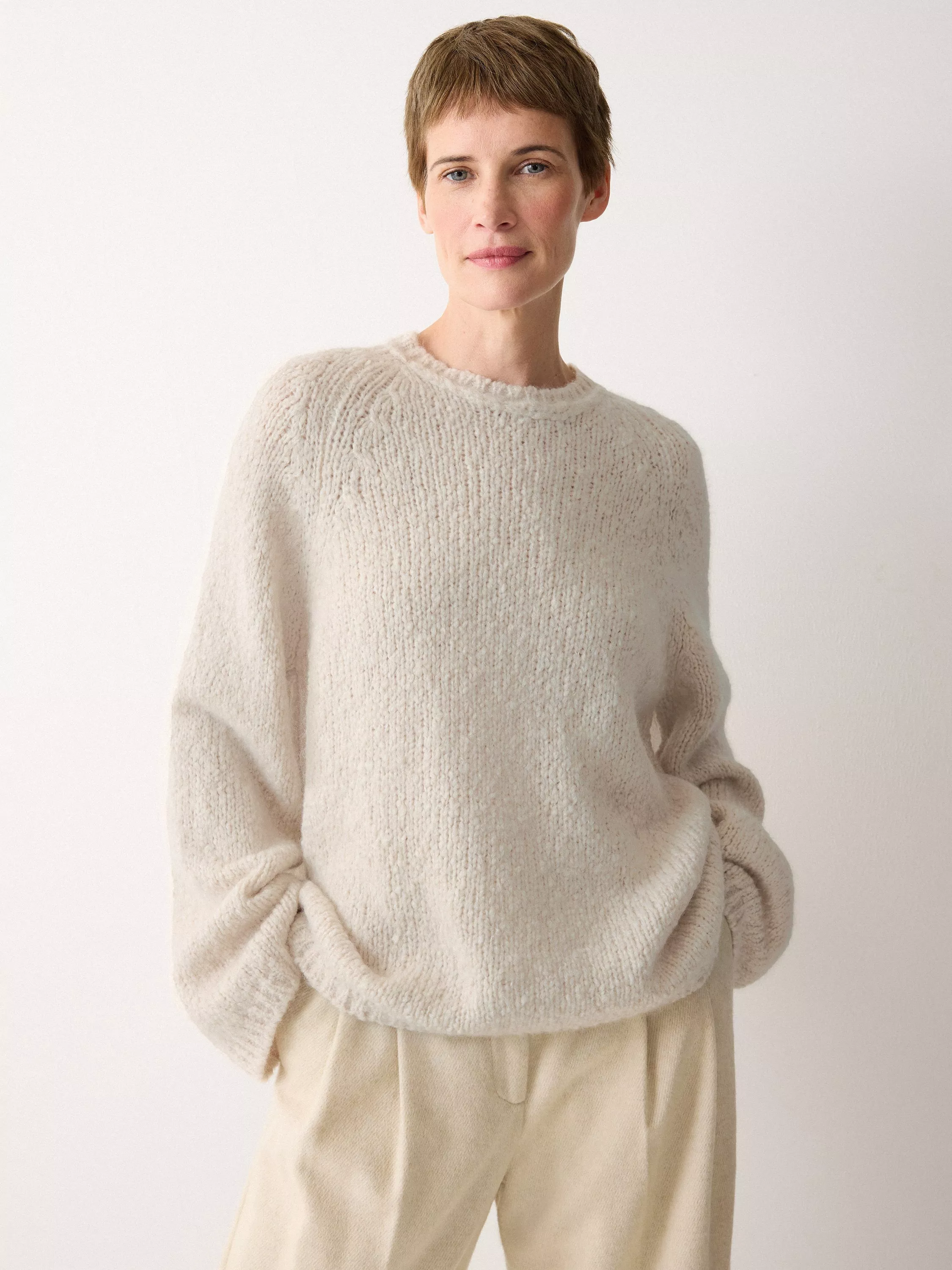 Soft and fuzzy boucle yarn makes this jumper a warm, cosy knit to sink into during the colder months. Crafted for tactility, it features textural detail at the collar alongside oversized cuffs for a contemporary feel.
