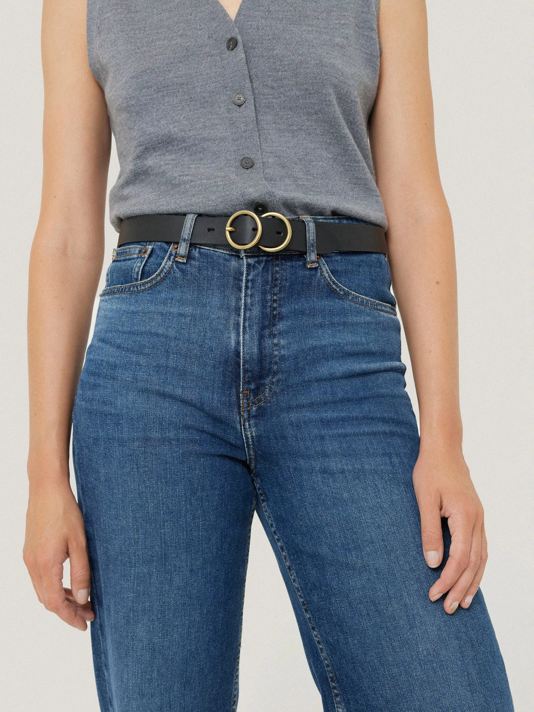 The Carlos leather belt has been crafted from 100% leather in Italy. The dual buckle detail is a modern take on classic shapes in metal hardware, for a sleek polish to a pair of jeans or a dress.