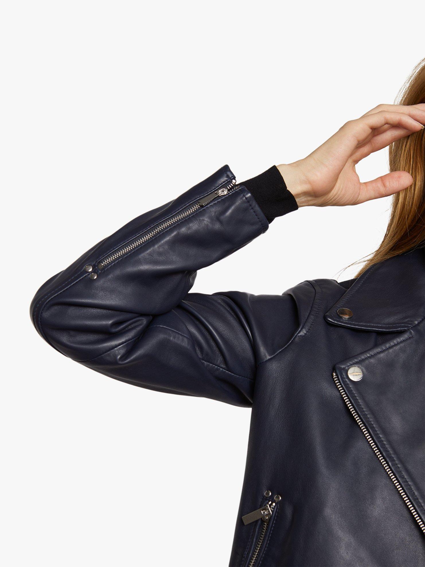 Made from butter-soft premium leather, the jacket presents statement and versatile urban aesthetic - a lapel collar with popper detailing, a sturdy metallic zip fastening and twin zip pockets. The must-have outerwear is fully lined for comfort.