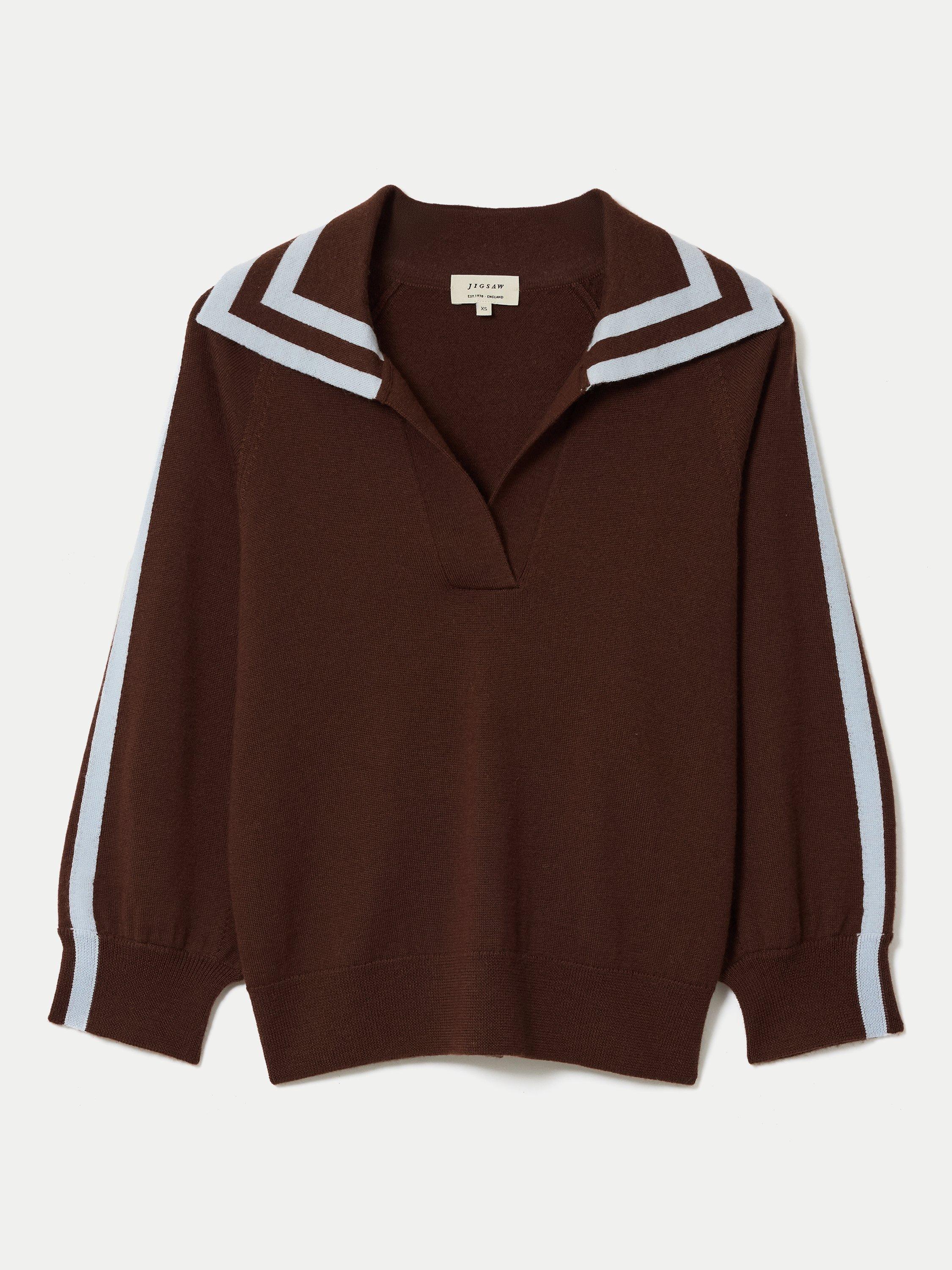 Crafted from 100% wool, this jumper features a chic marine-inspired collar for a modern twist on a classic knit. Perfect for layering, its relaxed slouchy fit makes ideal for off-duty style.