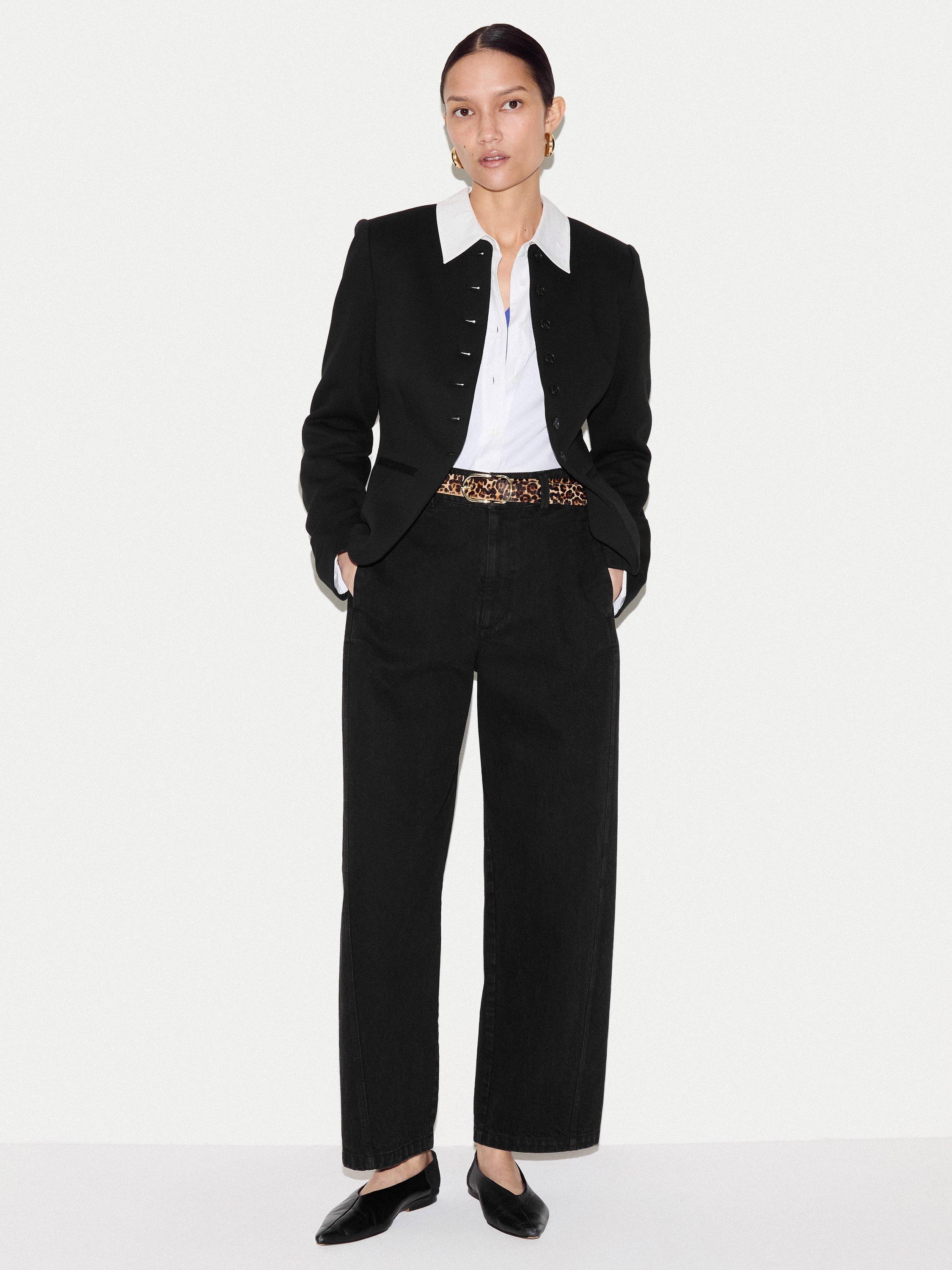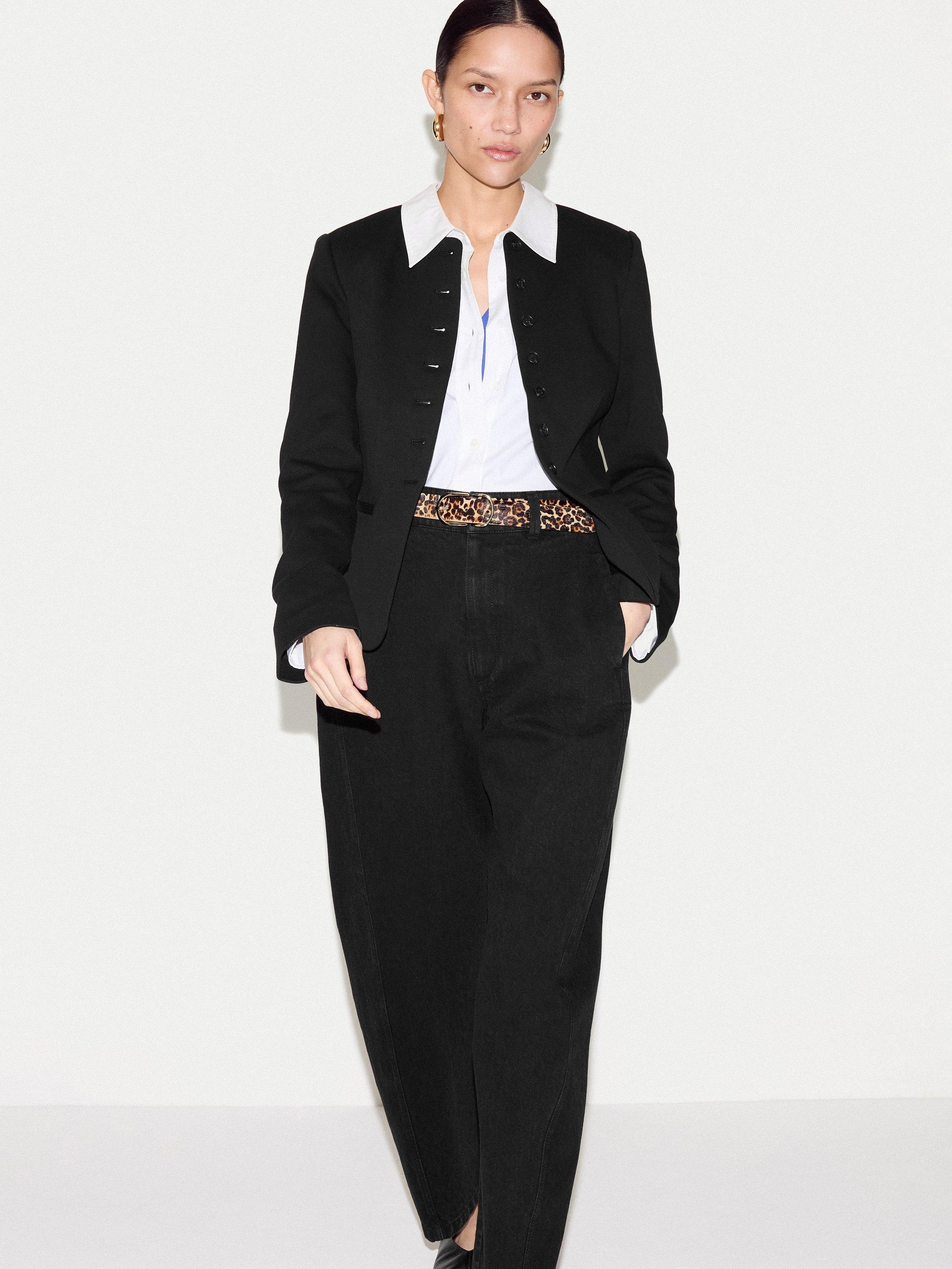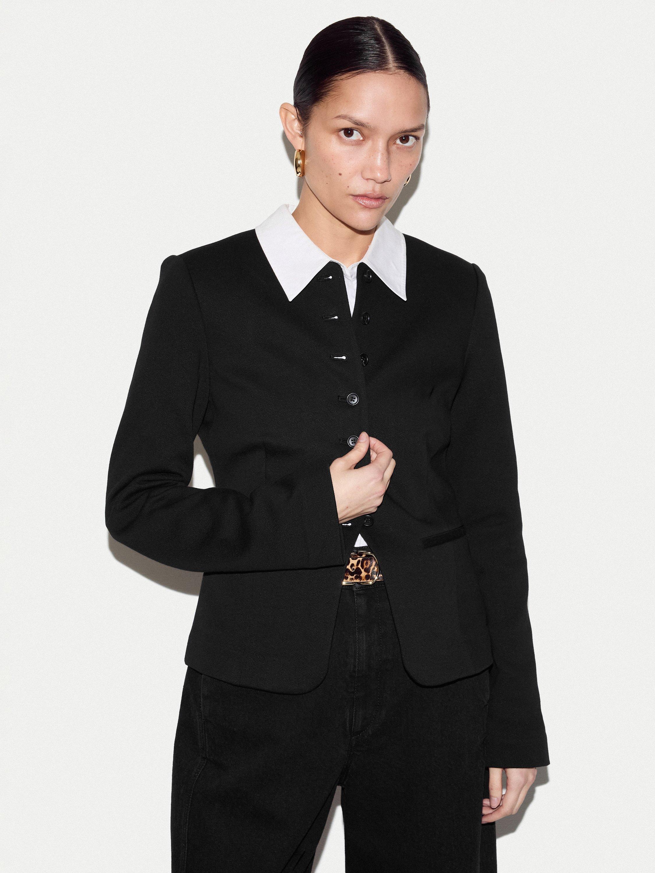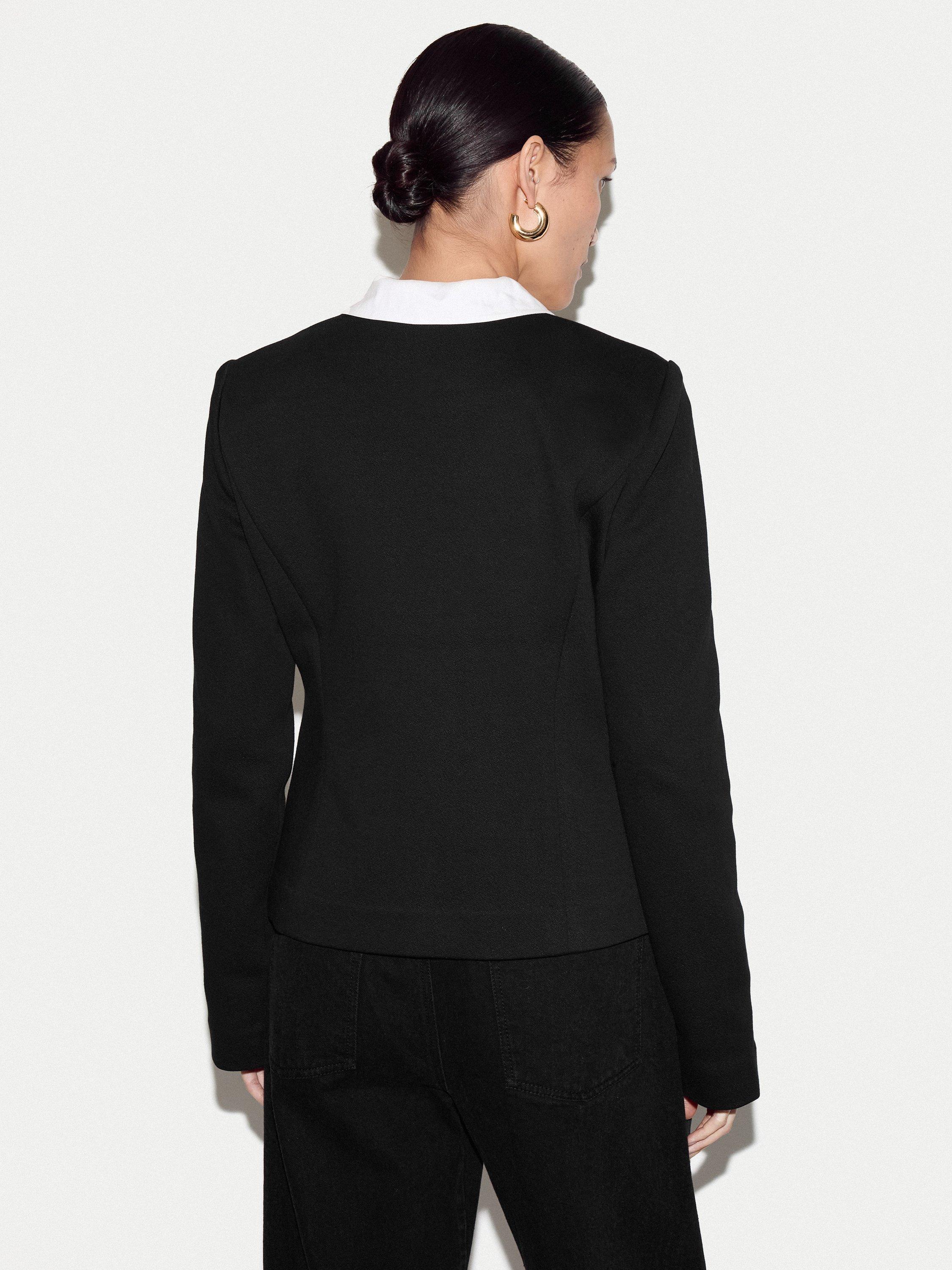 Crafted from a unique crepe jersey, this piece offers the tailored polish of a blazer with the soft, fluid feel of your favourite knit. Style it over a silk blouse and tailored trousers for a sophisticated office ensemble, or pair it with denim for an elevated weekend look.
