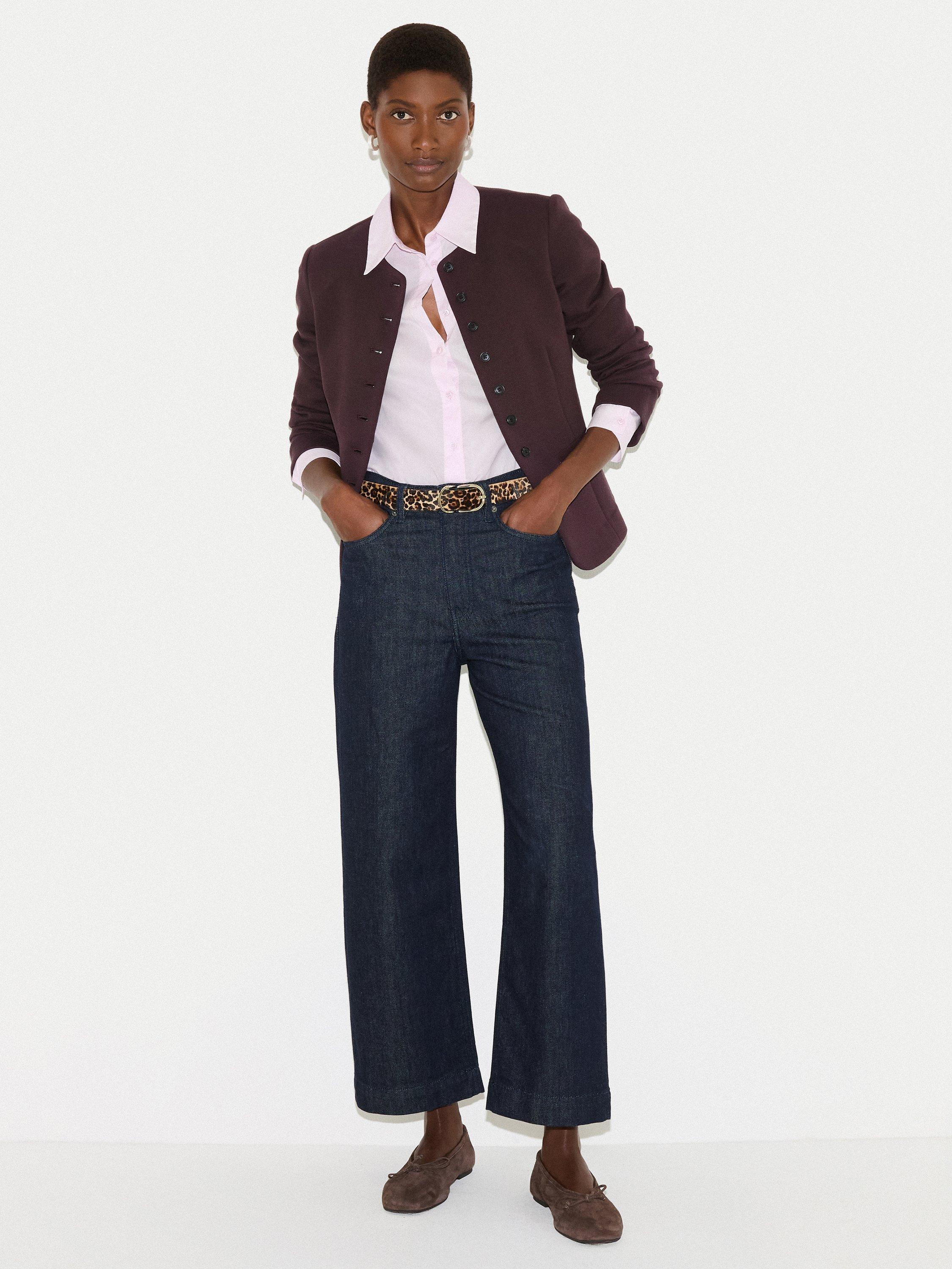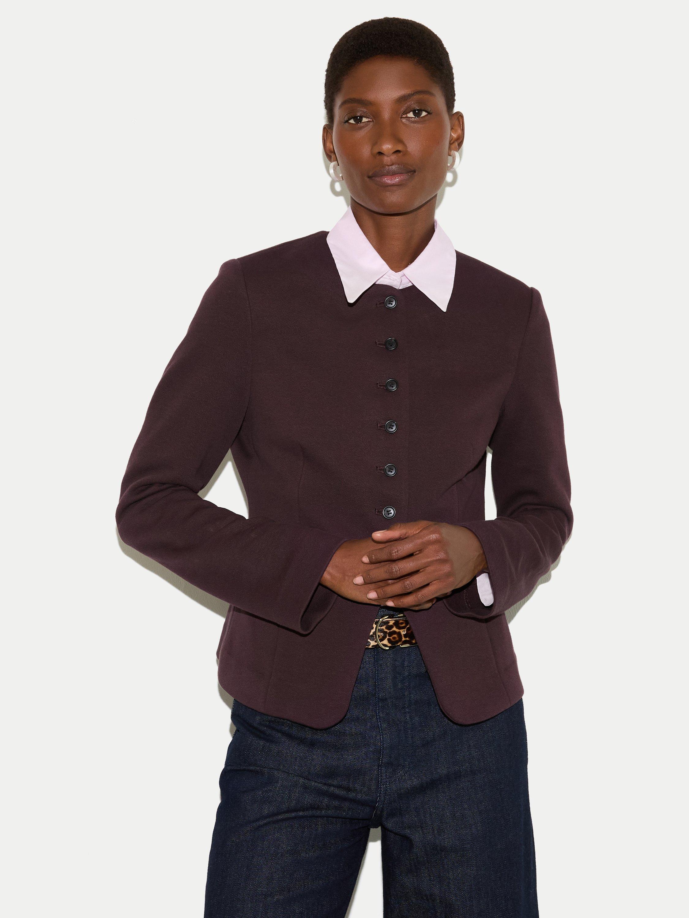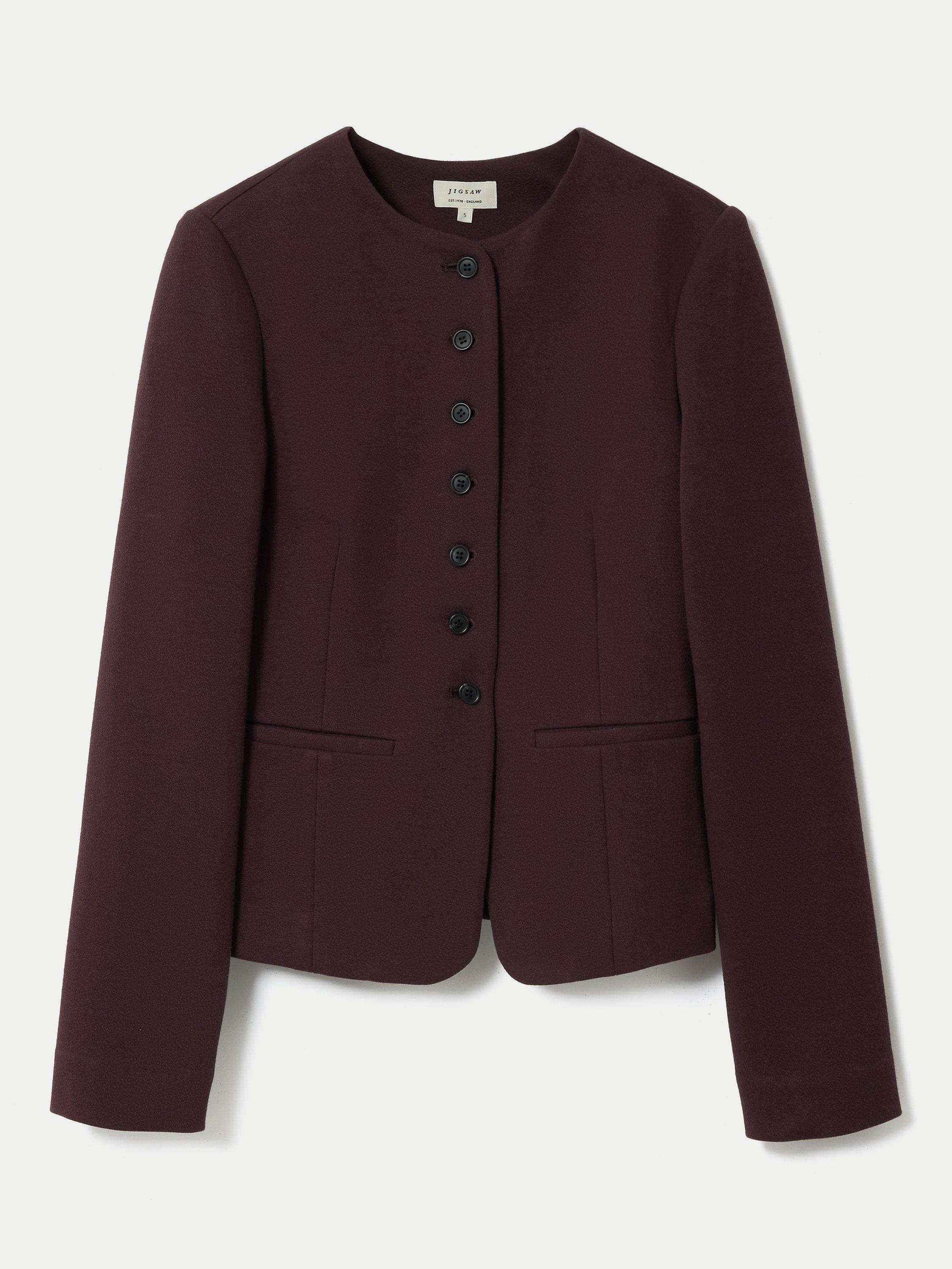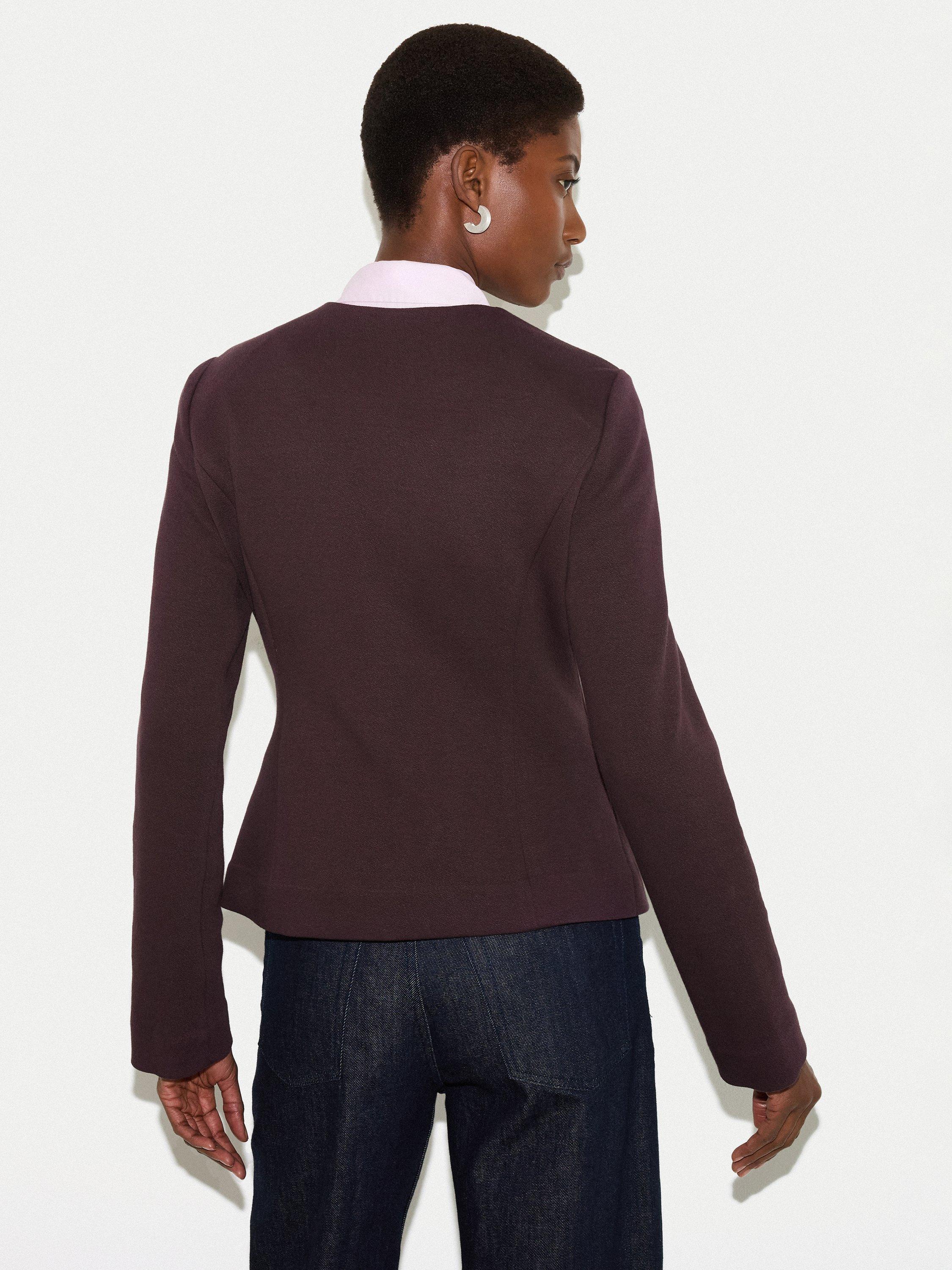 Crafted from a unique crepe jersey, this piece offers the tailored polish of a blazer with the soft, fluid feel of your favourite knit. Style it over a silk blouse and tailored trousers for a sophisticated office ensemble, or pair it with denim for an elevated weekend look.