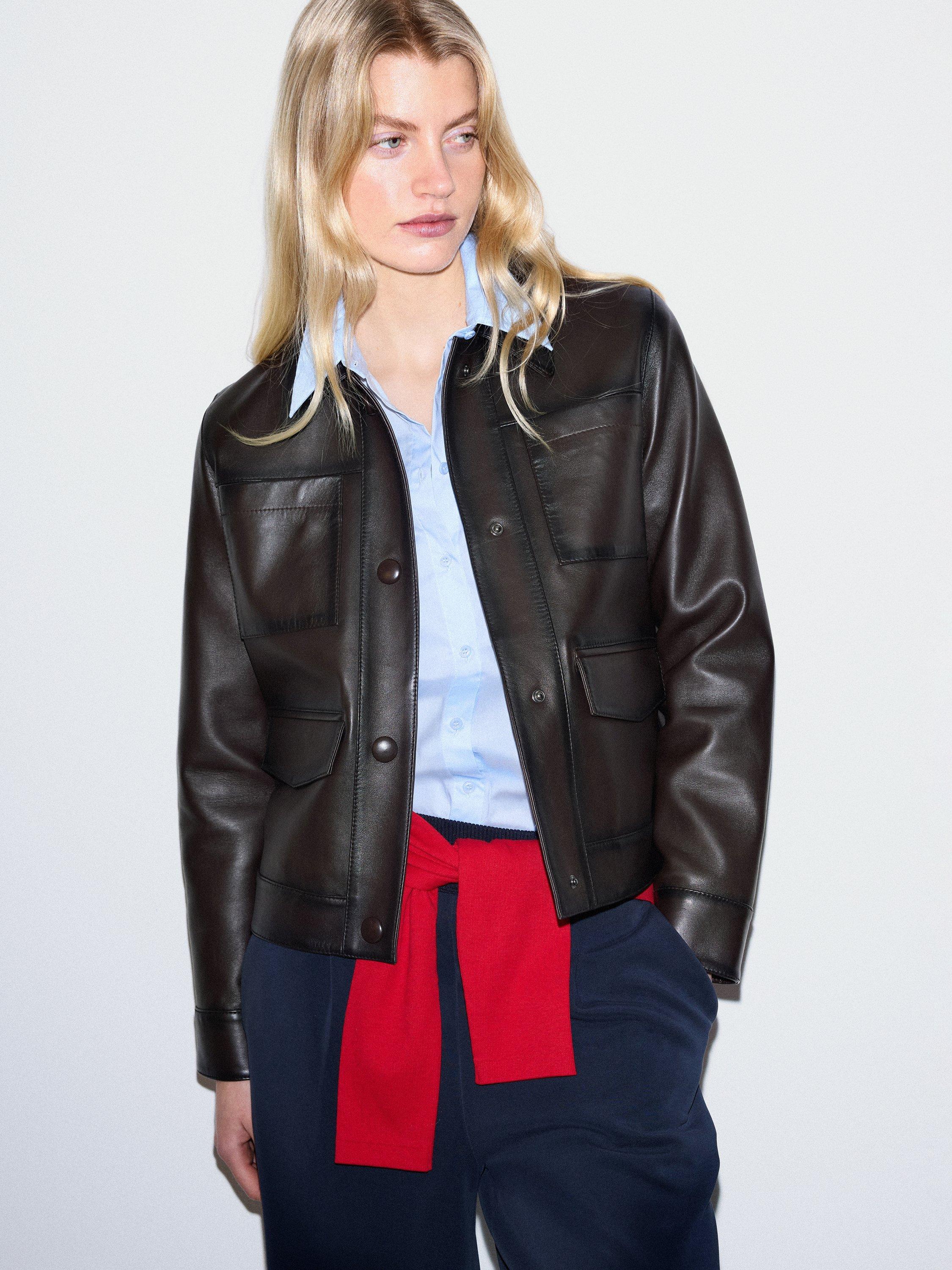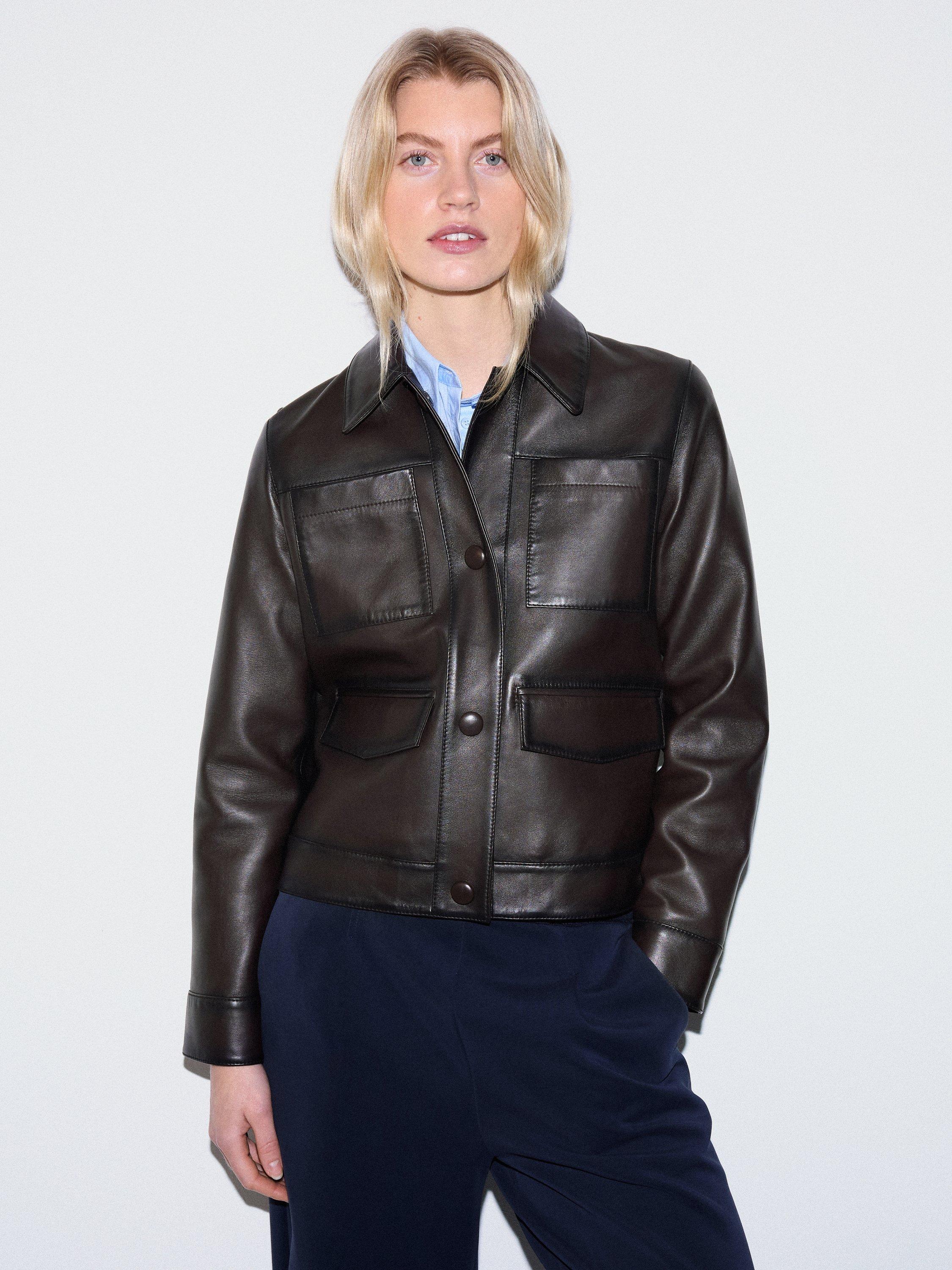 In a soft and supple nappa leather, this Cropped Jacket is crafted in a contemporary shape with a simple boxy fit and pocket detailing. Pair with simple denim and layering knits to add texture for a timeless feel.