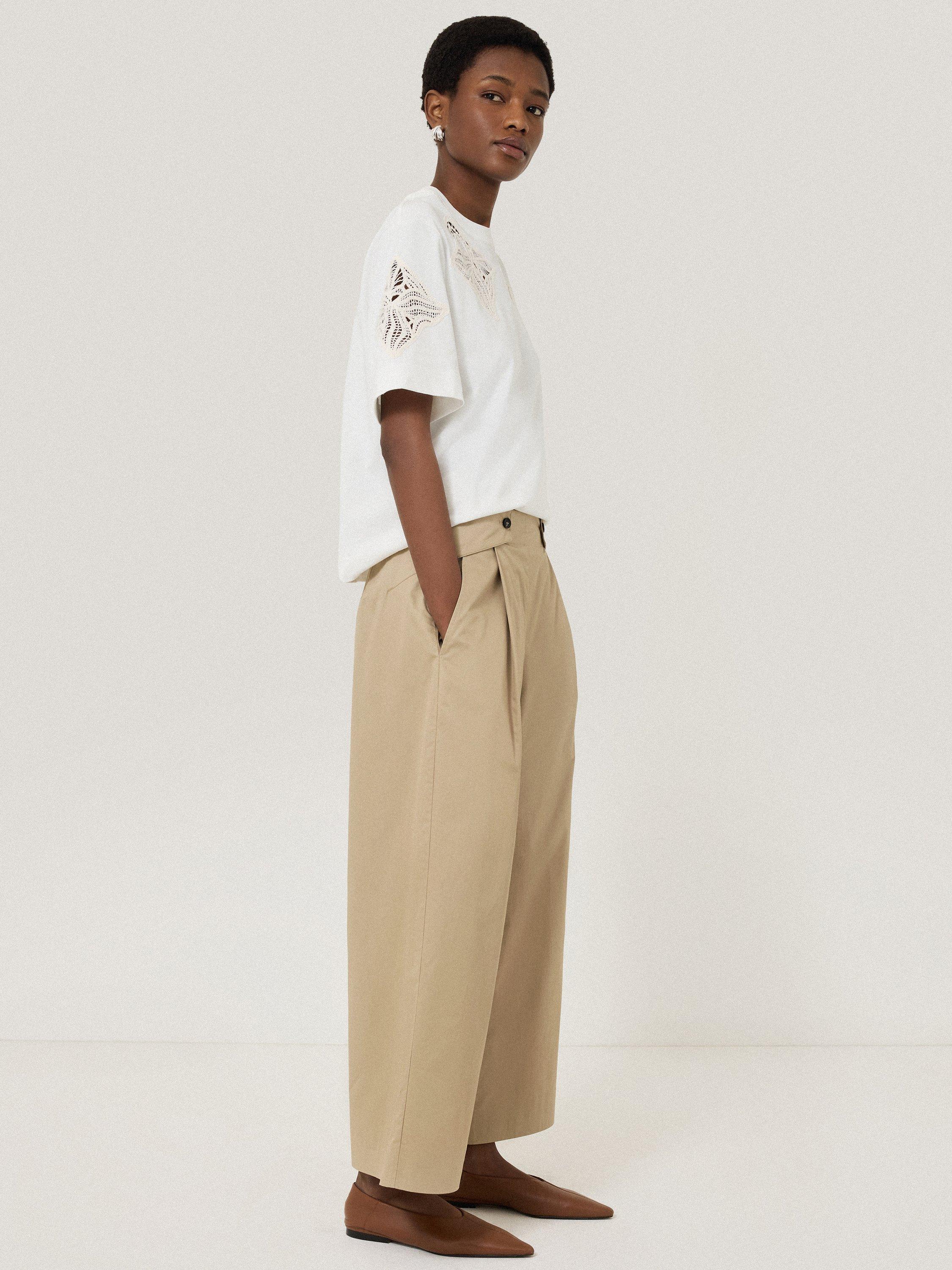 Perfectly tailored to a streamlined brief, this pair of trousers by Jigsaw sit naturally on the hips and have a wide-legged fit. Putting quality first in pure cotton, they couple up beautifully with printed tops thanks to their plain design.