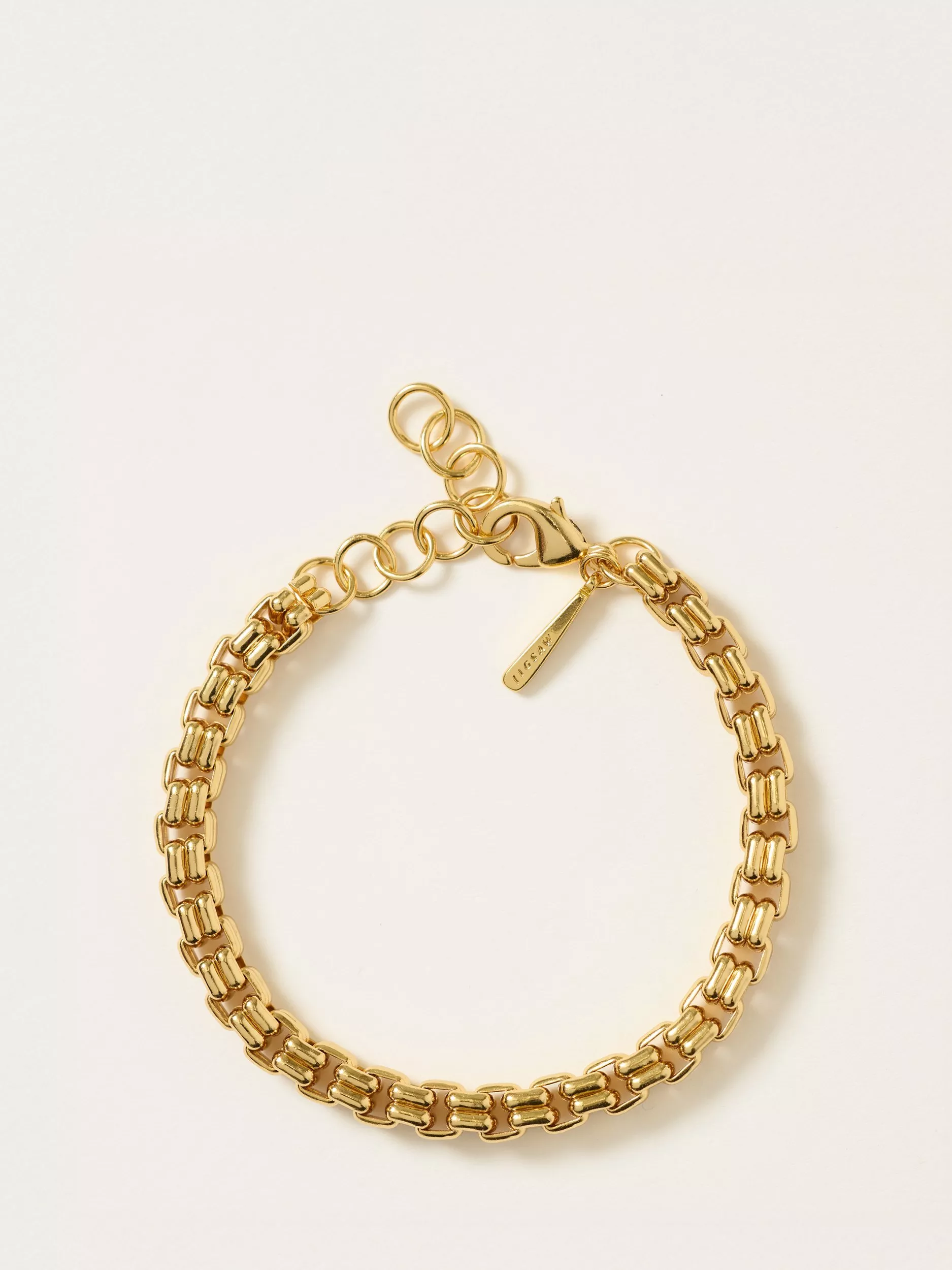 Jigsaw's cube chain bracelet in gold is a versatile accessory piece. Featuring an extender fastener, wear this with the matching chain necklace for a statement look.